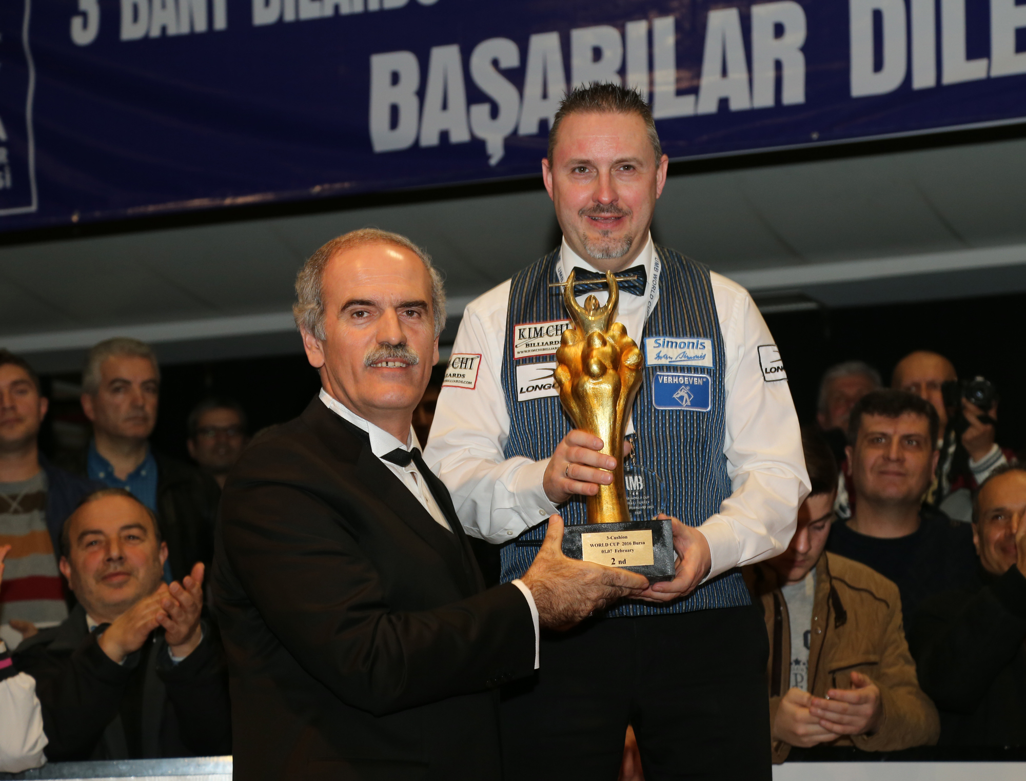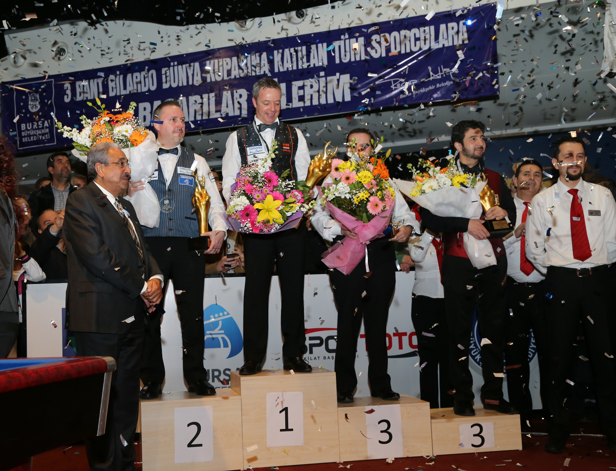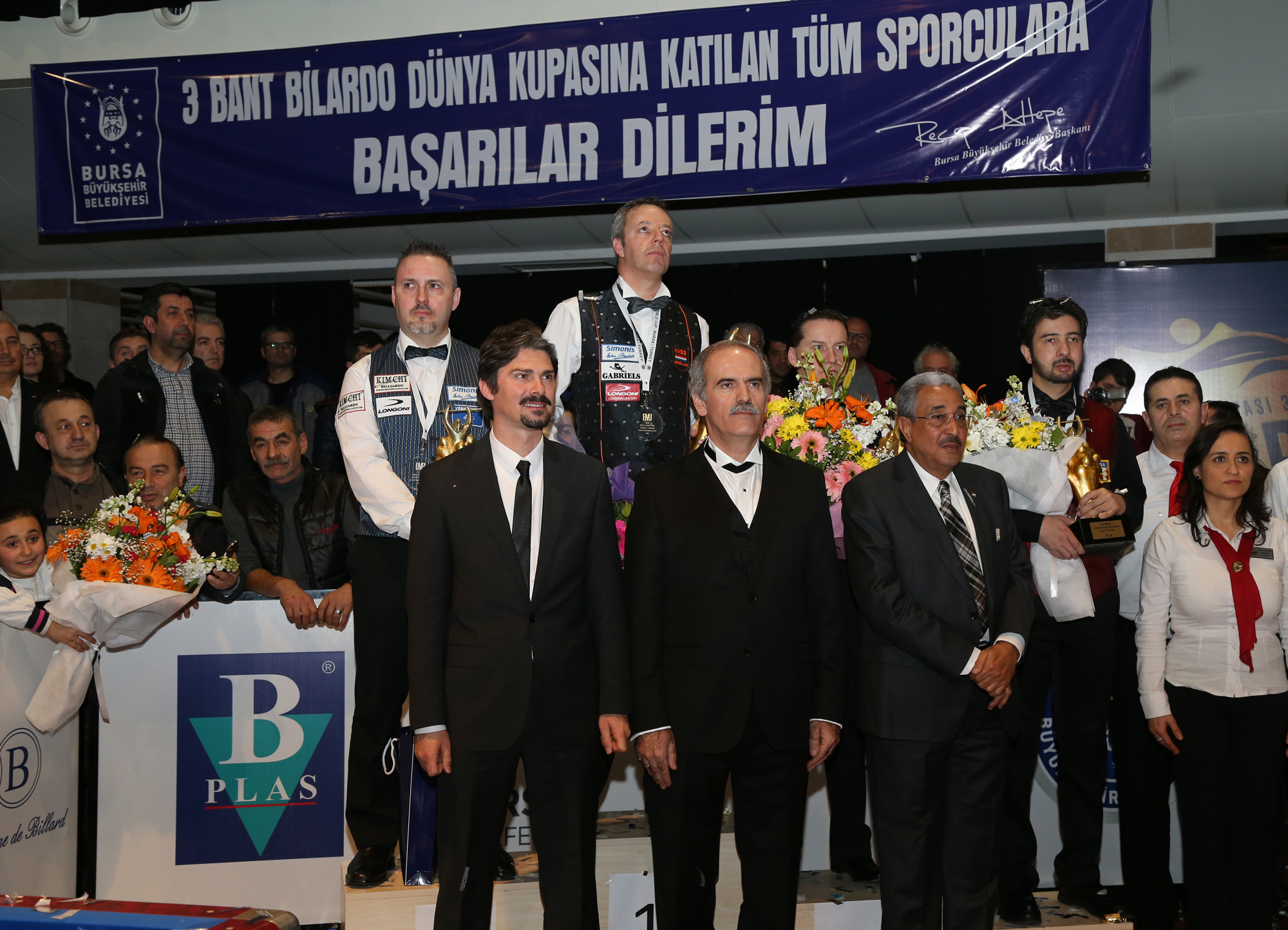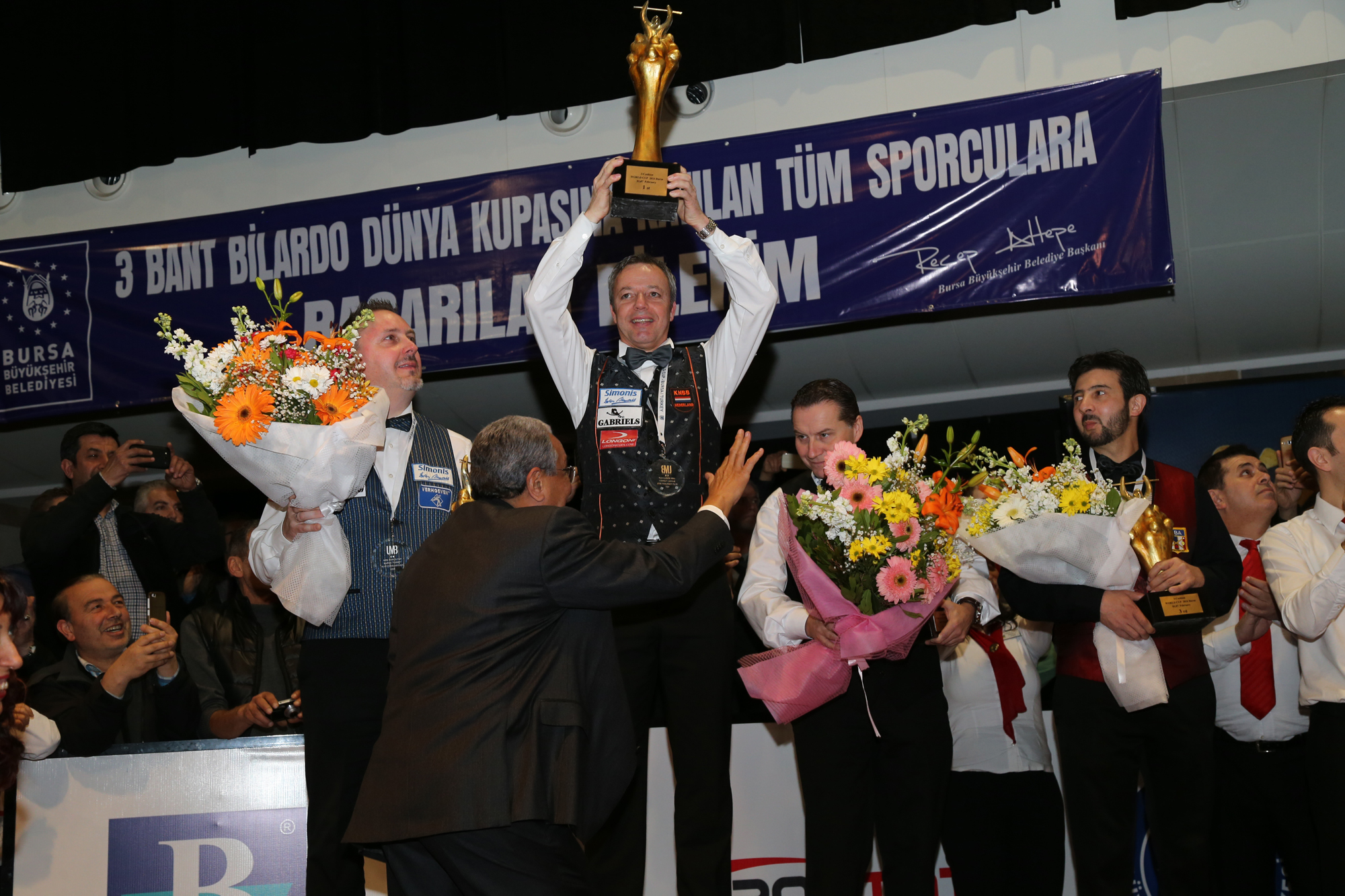 Bursa Büyükşehir Belediyesi’nin ev sahipliğinde, Türkiye Bilardo Federasyonu işbirliğiyle gerçekleştirilen ‘3 Bant Bilardo Dünya Kupası’, Atatürk Kongre Kültür Merkezi’nde (Merinos AKKM) 1 – 7 Şubat tarihleri arasında heyecanlı anlara sahne oldu. Dünya Bilardo Birliği’nin (UMB) 2016 faaliyet takviminde yer alan turnuvaya 18 ülkeden 149 dünyaca ünlü sporcu katıldı. Bilardo severlerin yoğun ilgisine sahne olan şampiyonada final maçında ise Hollandalı Dick Jaspers ile Belçikalı Frederic Caudron karşı karşıya geldi. Karşılaşmanın sonunda maçı 40 – 34 skorla kazanan Dick Jaspers şampiyonada 1. Olarak dünya kupasını kazandı. ‘3 Bant Bilardo Dünya Kupası’nda Belçikalı Frederic Caudron ikinci olurken; ABD’li Pedro Piedribuena ile Belçika’dan Eddy Merckx de 3.’lüğü paylaştı.