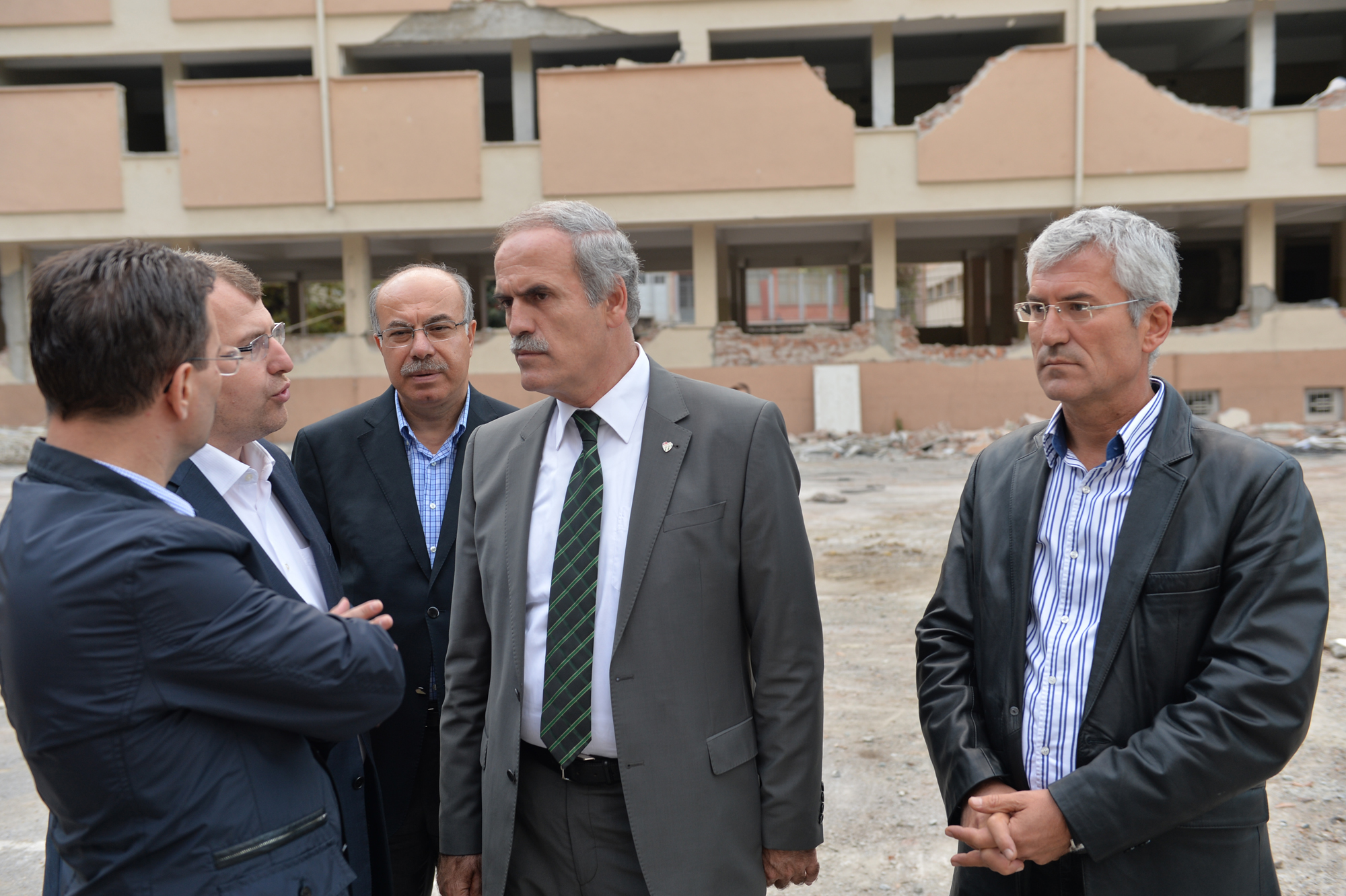 Büyükşehir Belediye Başkanı Recep Altepe, beraberindeki Genel Sekreter Seyfettin Avşar, Genel Sekreter Yardımcıları Bayram Vardar ve Mustafa Altın ile birlikte binaların yıkım çalışmalarını yerinde inceledi. Bursa İmam Hatip Liseleri Mezunları ve Mensupları Derneği (BİHMED) Başkanı Halil Eldemir’in de katıldığı inceleme gezisini değerlendiren Başkan Altepe, yıkımda ortaya çıkan manzaranın binaların ne kadar dayanıksız olduğunu sözler önüne serdiğini vurguladı. Bütünşehir uygulamasıyla il genelinde bütün eğitim kurumlarının eksiklerinin giderilmesi noktasında önemli bir çalışma başlattıklarını ifade eden Başkan Altepe, “Merkez İmam Hatip Lisemiz 52 yıldır hizmet veriyordu. Ancak dayanıklılık açısından riskli yapılar arında yer alıyordu. Kolonlarda çatlaklar var, beton ve demir kalitesi düşük. Tamamen yorulmuş bir bina. Eski yapıların tamamını yıkıyoruz. Kısa zamanda derslikler, yatakhaneler, spor salonu, konferans salonu ile modern, pırıl pırıl bir eğitim kompleksini buraya kazandıracağız” dedi.