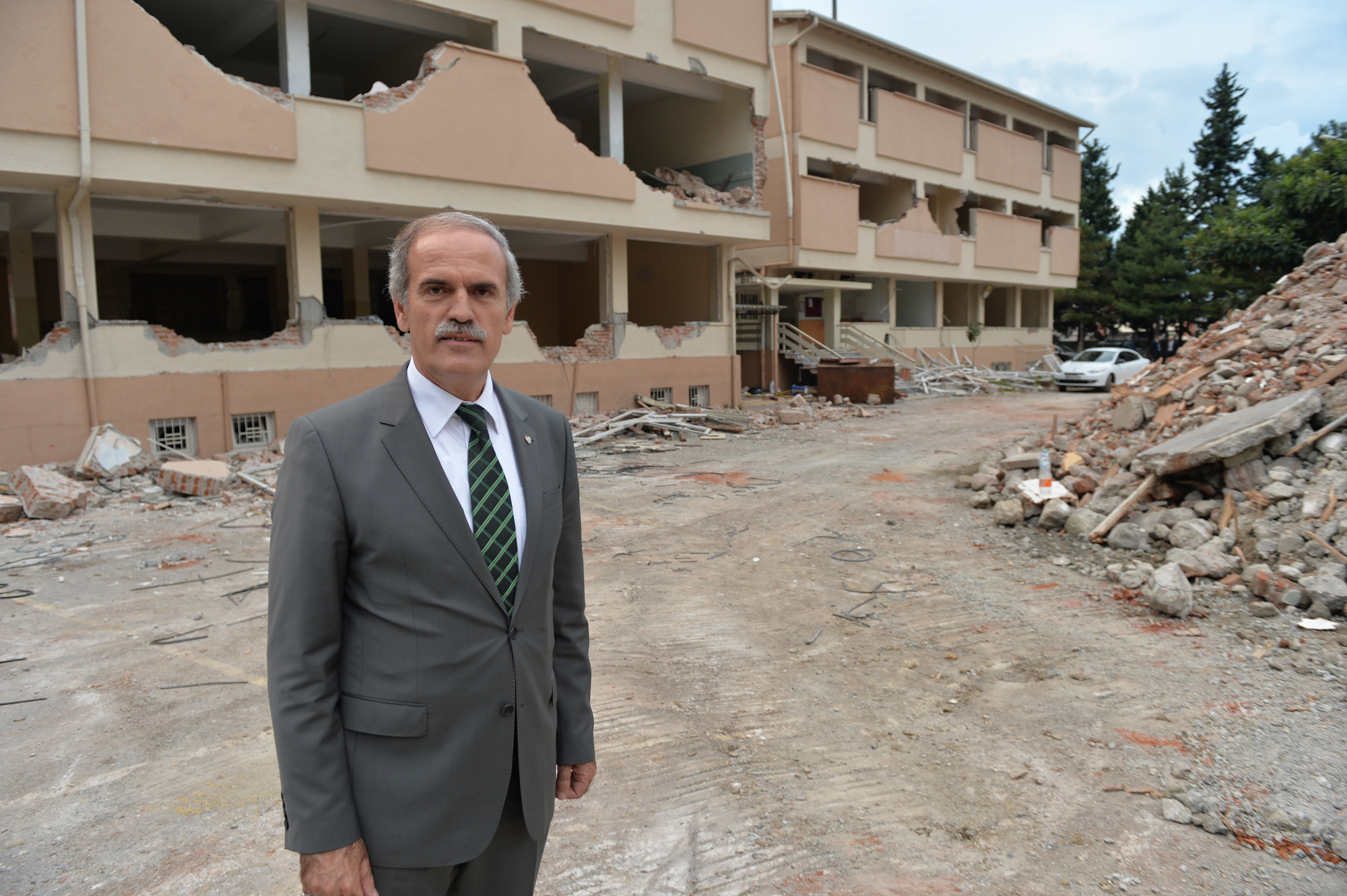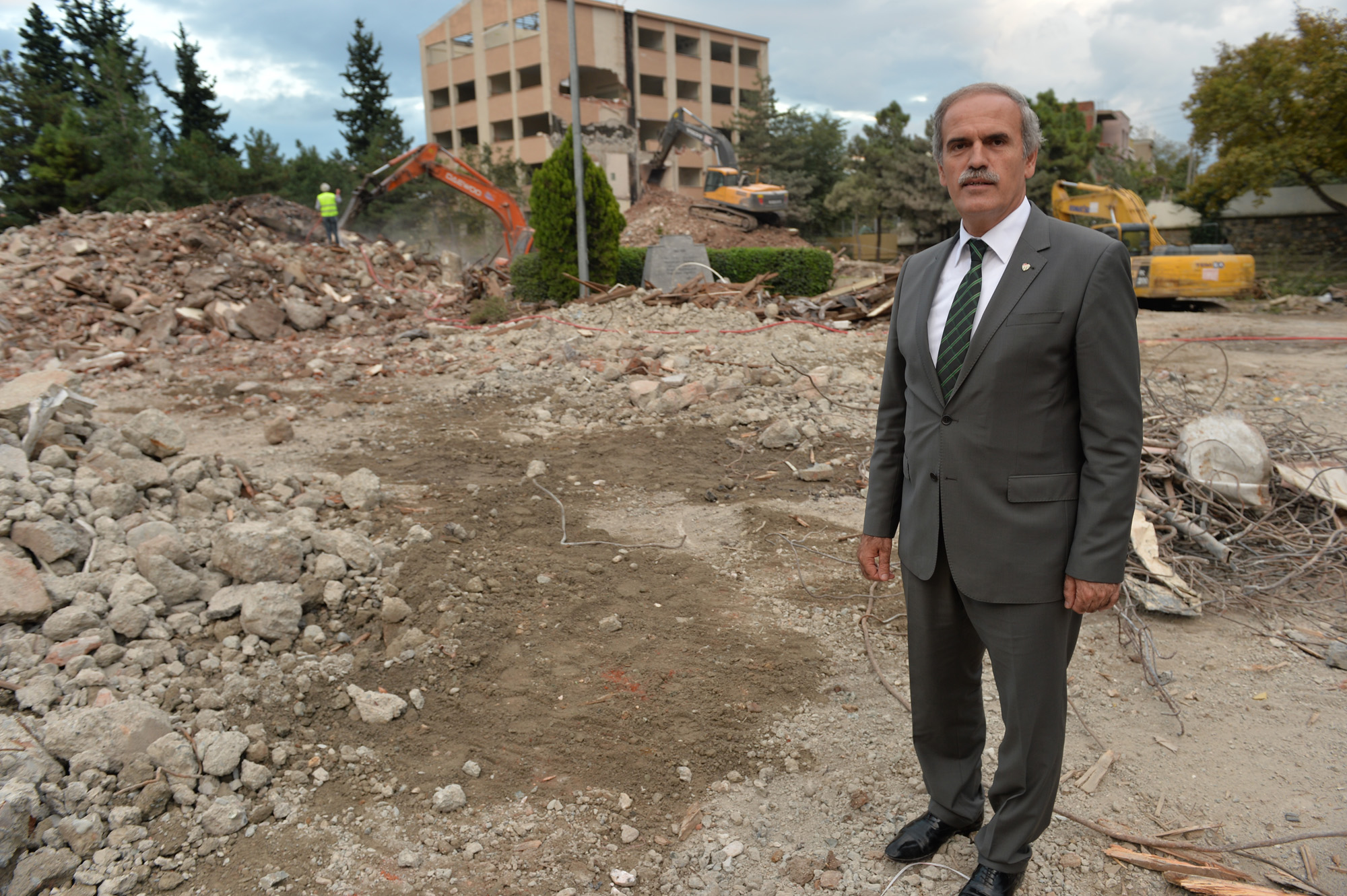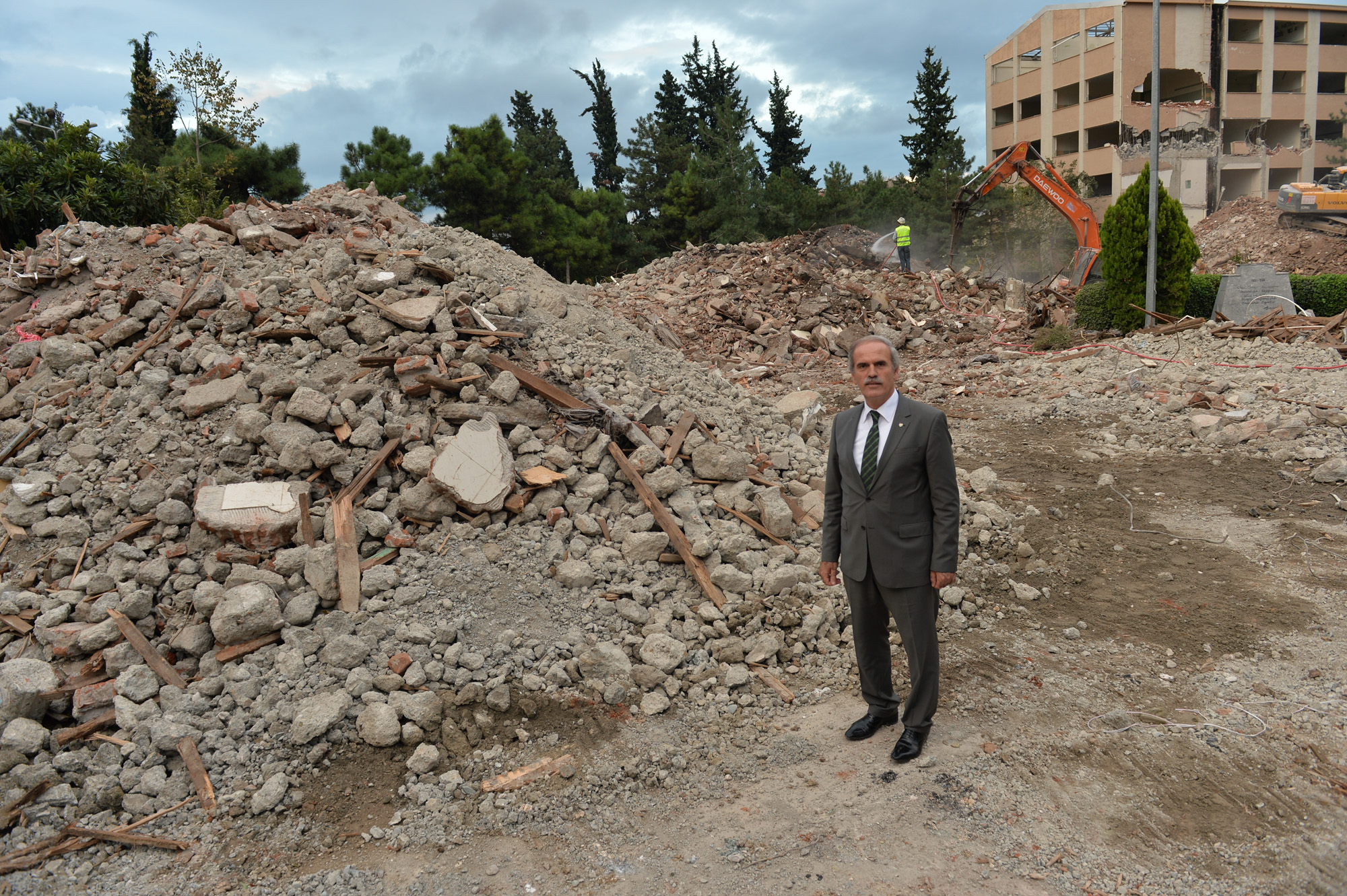 - YIKIM ÇALIŞMALARINI YERİNDE İNCELEYEN BÜYÜKŞEHİR BELEDİYE BAŞKANI RECEP ALTEPE, YARIM ASRIN YORGUNLUĞUNU TAŞIYAN BİNANIN KOLANLARINDA ÇATLAKLAR OLDUĞUNU, KULLANILAN DEMİR MİKTARI VE BETON KALİTESİNİN GÜNÜMÜZ STANTLARININ ÇOK ALTINDA KALDIĞINI BELİRTEREK, KISA ZAMANDA BURSA’YA ÇAĞDAŞ BİR EĞİTİM KOMPLEKSİ KAZANDIRACAKLARINI KAYDETTİ.
