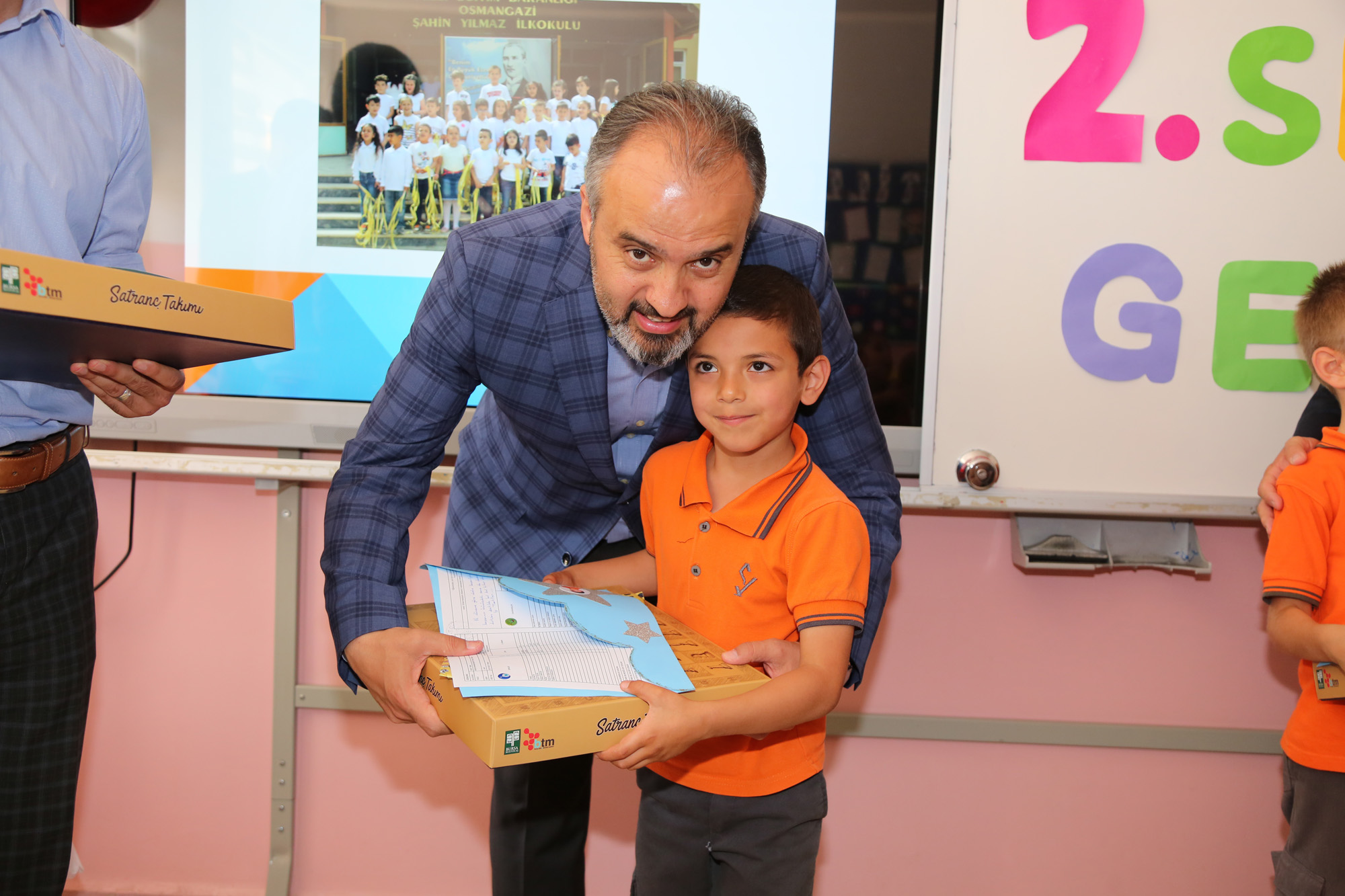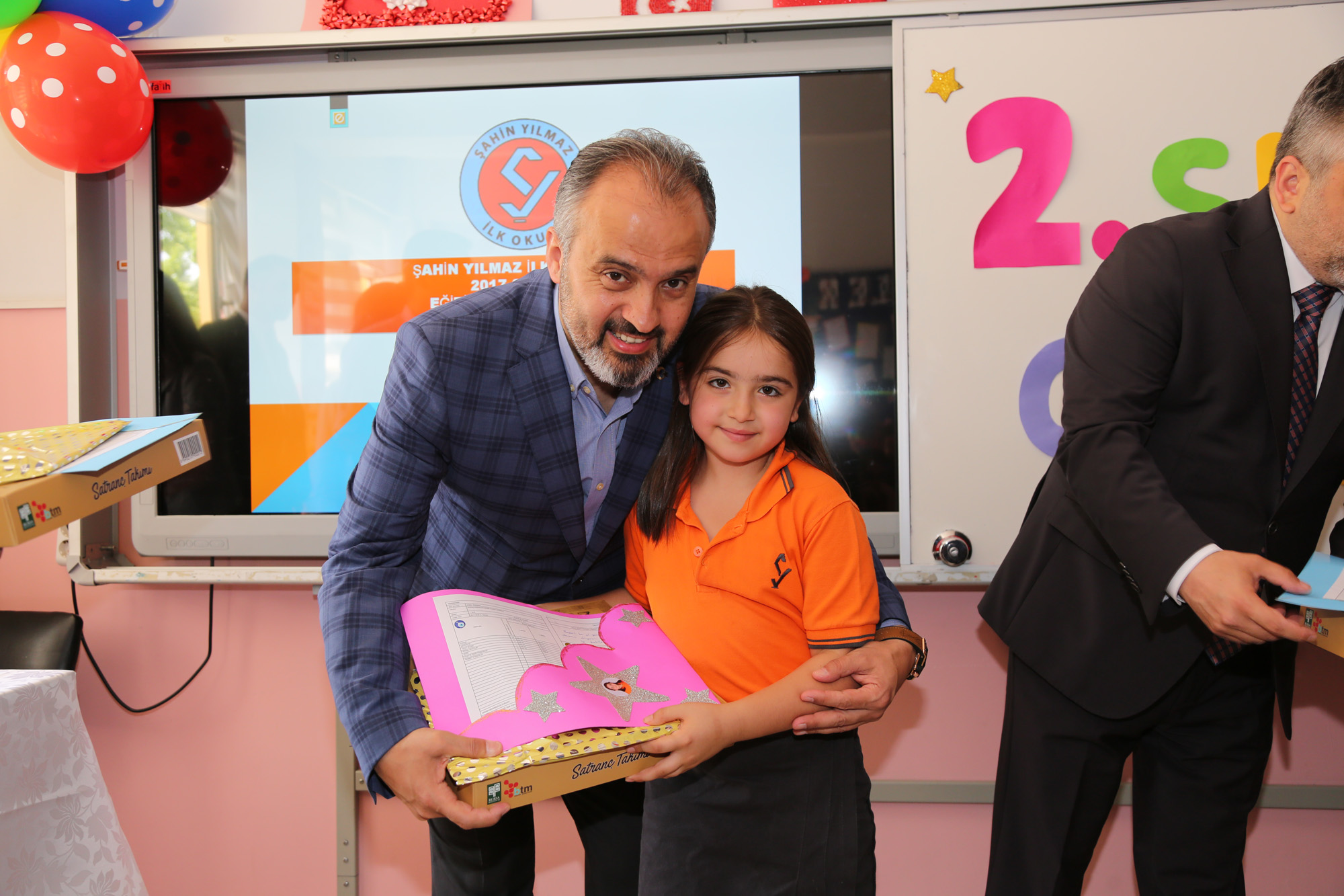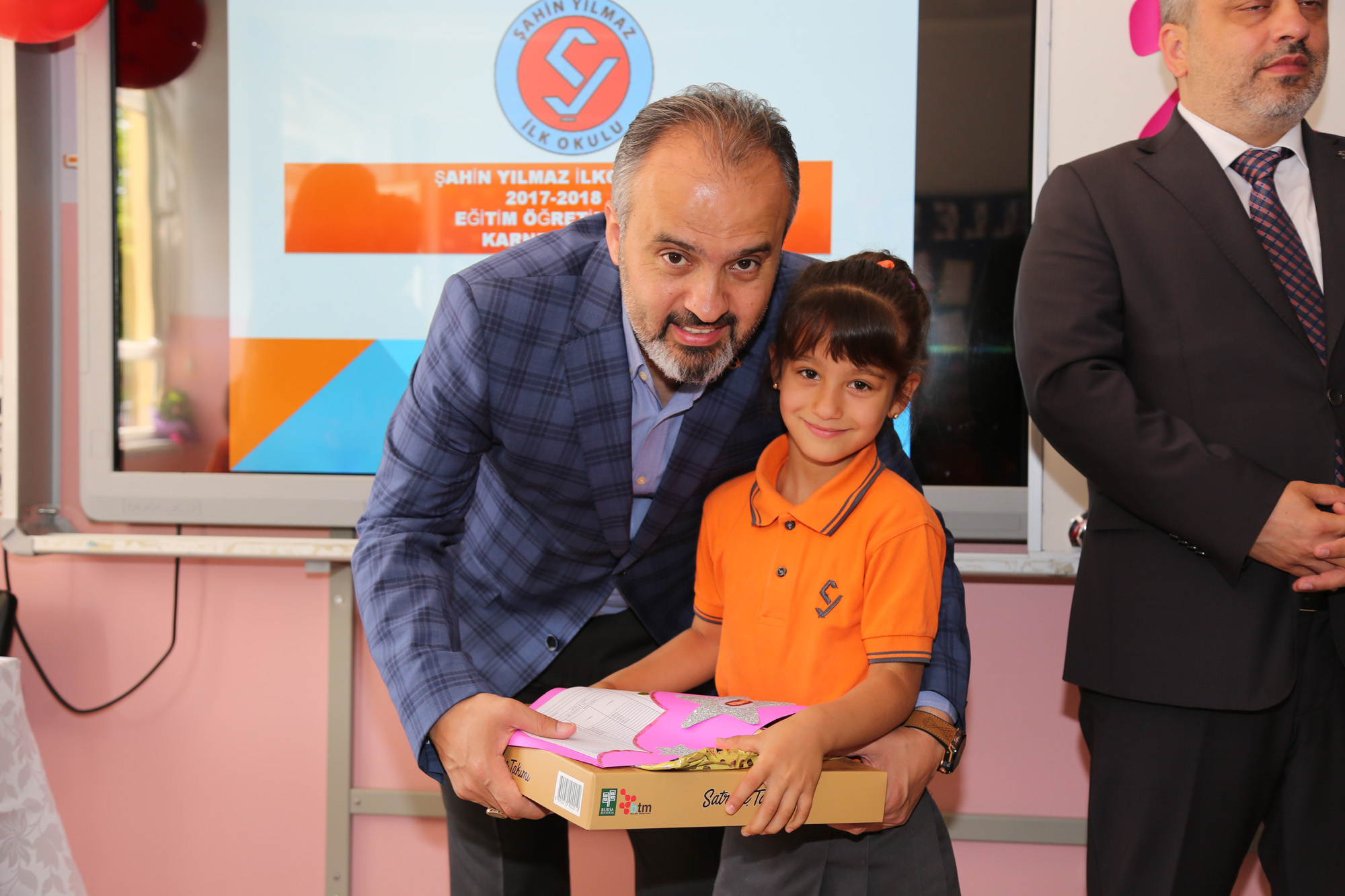 Bursa’yı sağlıklı geleceğe emin adımlarla taşımak hedefiyle eğitim kurumlarına desteğini hiçbir zaman esirgemeyen Büyükşehir Belediyesi, karne heyecanı duyan öğrencileri yine yalnız bırakmadı. Osmangazi İlçesi Yunuseli Mahallesi'ndeki Şahin Yılmaz İlkokulu'nda çocukların sevincine ortak olan Başbakan Yardımcısı Hakan Çavuşoğlu, Vali İzzettin Küçük, Büyükşehir Belediye Başkanı Alinur Aktaş, İl Milli Eğitim Müdürü Sabahattin Dülger, Kaymakam Mehmet Aydın ve AK Parti Bursa İl Başkanı Ayhan Salman, karneleriyle birlikte öğrencilere çeşitli hediyeler verdi.