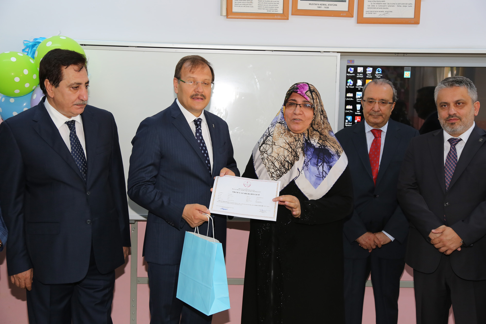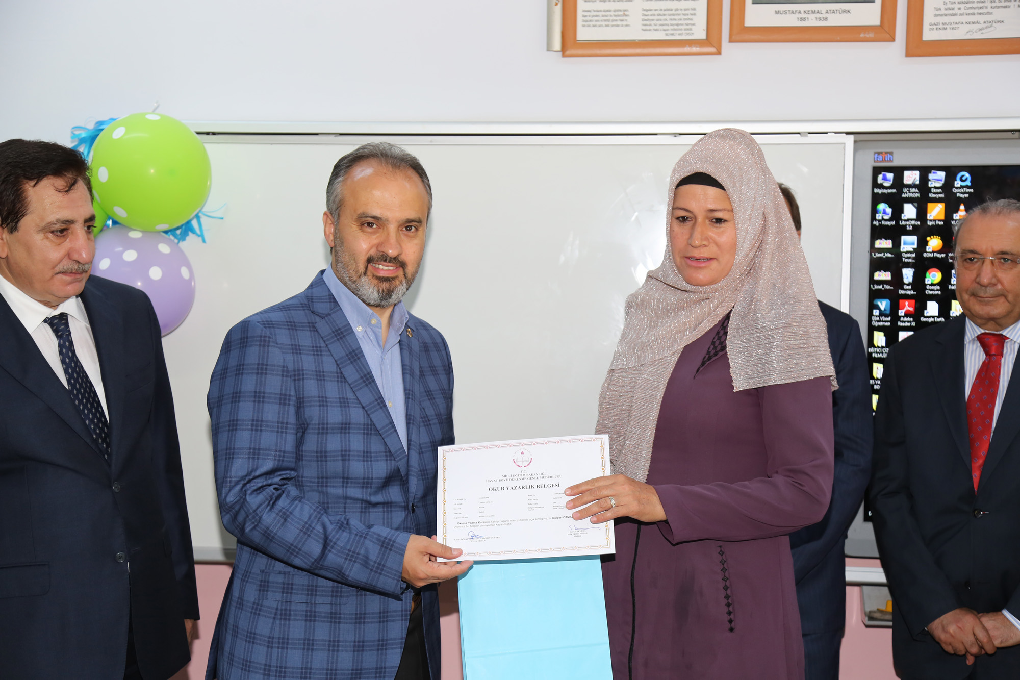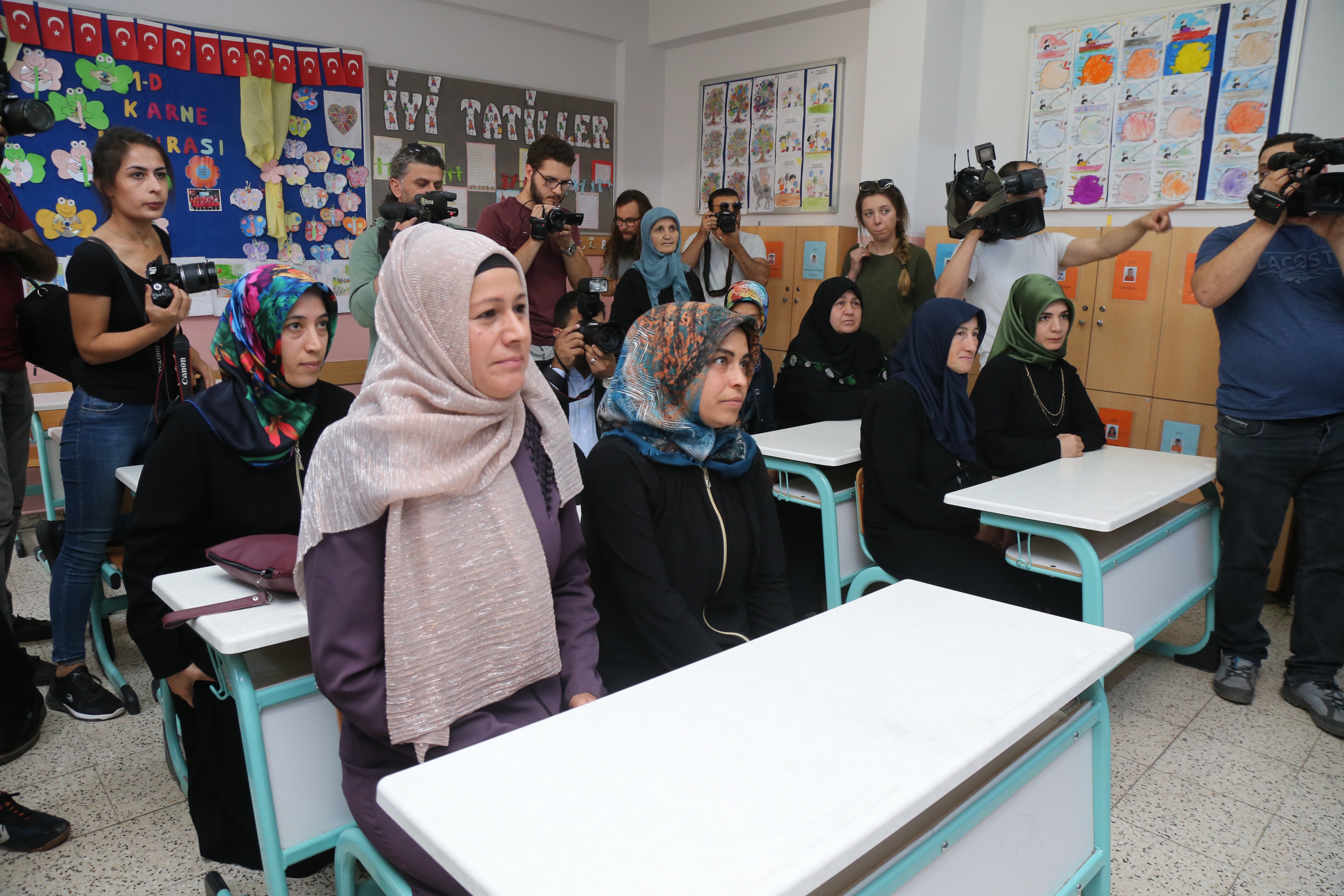 Başbakan Çavuşoğlu ve beraberindekiler, Cumhurbaşkanı Erdoğan ve eşinin başlattığı okuma-yazma seferberliği kapsamında eğitim gören kadınları da sınıflarında ziyaret ederek tebrik etti.