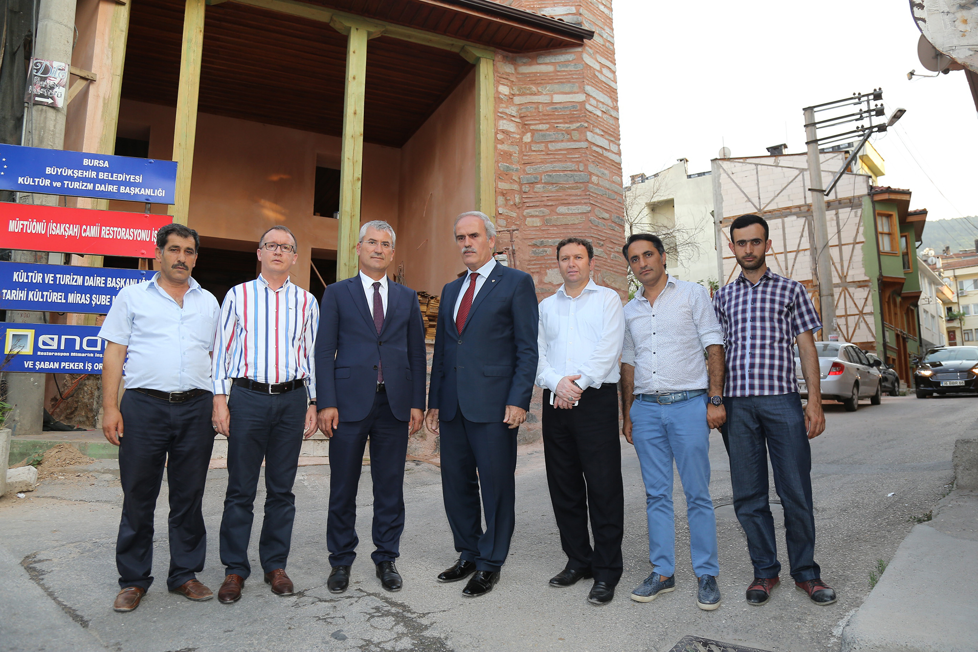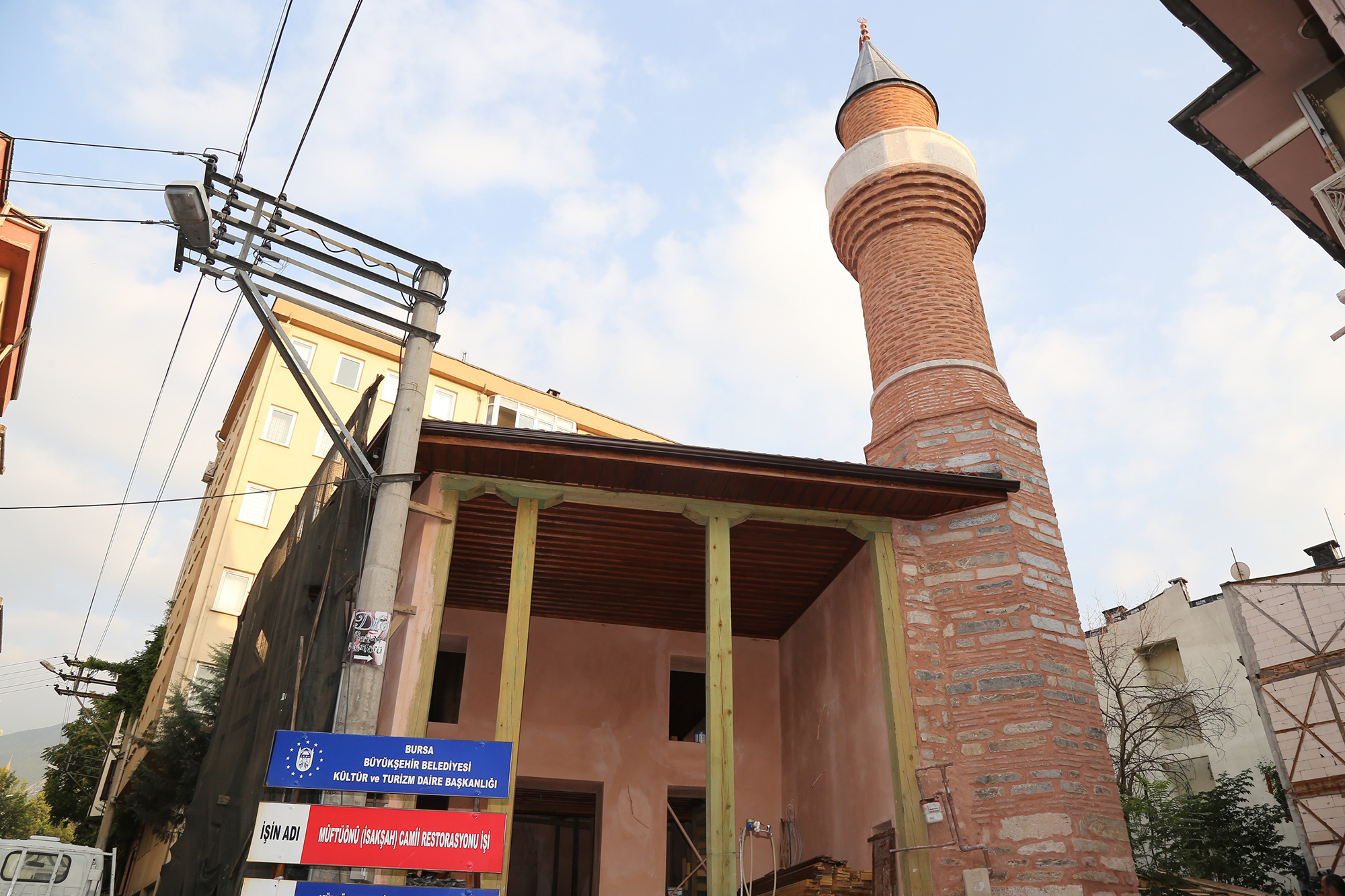 Tarihi ve kültürel mirası ayağa kaldırma çalışmaları kapsamında Bursa´nın değerlerini UNESCO ile evrensel değer haline getiren Büyükşehir Belediyesi, ecdat emanetlerini ayağa kaldırma çalışmalarını hıs kesmeden sürdürüyor. Bu kapsamda Namazgah Caddesi üzerinde bulunan 600 yıllık İsak Şah Camiindeki restorasyon çalışmaları da tamamlanma aşamasına geldi.Büyükşehir Belediye Başkanı Recep Altepe, beraberindeki Genel Sekreter Yardımcısı Mustafa Altın ve Kültür ve Turizm Daire Başkanı Aziz Elbas’la birlikte tarihi camide incelemelerde bulundu.