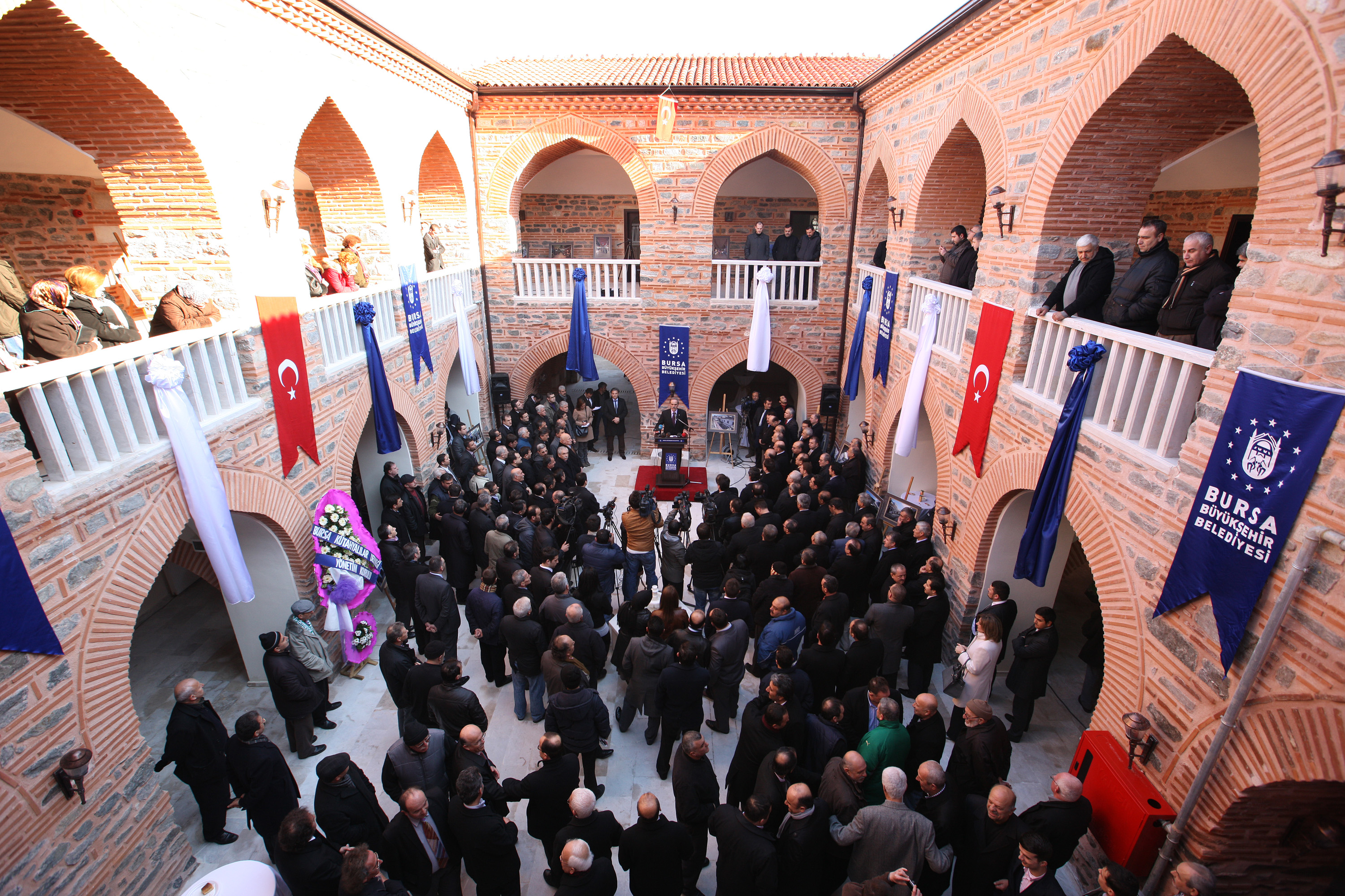 Tarihi Çarşı ve Hanlar Birliği Yönetim Kurulu Üyesi ve Okçular Çarşısı Dernek Başkanı Muhsin Özyıldırım ise, düne kadar yıkılmaya yüz tutan tarihi hanın ayağa kalktığını görmenin büyük bir mutluluk olduğunu söyledi. “Bugün hayallerimizin gerçek olduğu bir gün” diyerek söze başlayan Özyıldırım, “Özellikle 2000 yılından sonra perakende sektöründe yaşanan hızlı değişim sonrası kentimizde de açılan dev alışveriş merkezleri bizler gibi küçük esnafın işlerinin azalmasına yol açtı. Büyükşehir Belediye Başkanımızın, Osmangazi Belediye Başkanlığından geliyor olması, çarşının her köşesinde yaşanan sorunları bire bir biliyor olması bizler için büyük avantaj. Gerek Büyükşehir Belediyesi’nin gerekse Osmangazi Belediyesi’nin çalışmalarıyla çarşımız her geçen gün daha da güzelleşiyor, daha da değer kazanıyor. Çarşımıza böyle önemli bir değeri kazandırdıkları için Başkanımız Recep Altepe, çarşı esnafı adına teşekkür ediyorum” diye konuştu.