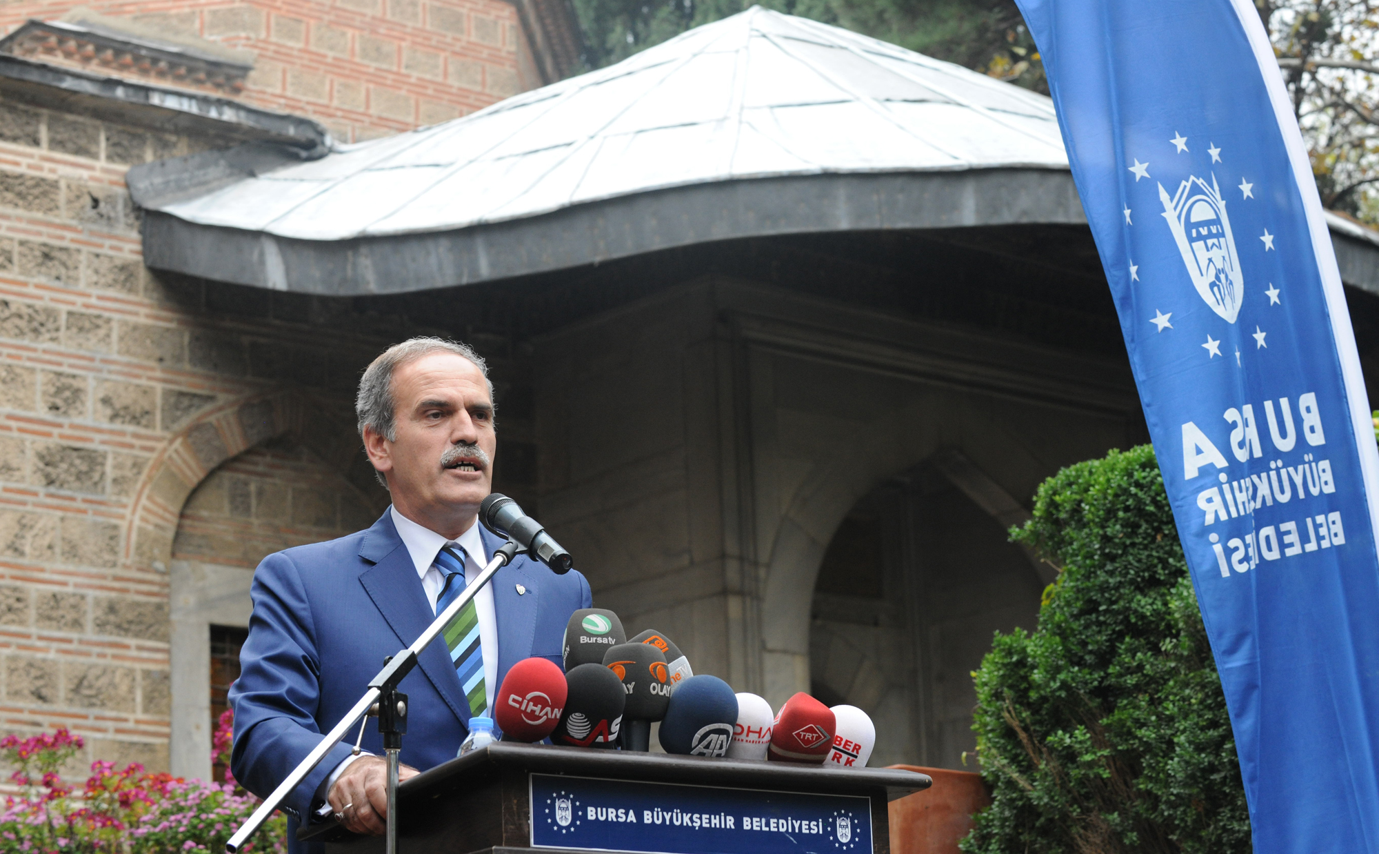 Büyükşehir Belediye Başkanı Recep Altepe, Osmanlı’nın ilk 130 yılı ve 6 padişaha ev sahipliği yapan Bursa’nın ruhaniyeti olan ve her türlü nimeti bünyesinde barındıran bir kent olduğunu söyledi. Osmanlı’nın ilk kent hayatına geçtiğini şehrin de Bursa olduğuna dikkat çeken Başkan Altepe, kentin Sultanlar tarafından kurulan mahallelerden oluştuğunu hatırlattı. Çarşı ve Hanlar Bölgesi’nin Orhan Gazi, Çekirge’nin 1. Murat, Yıldırım’ın Yıldırım Beyazıt, Yeşil’in Çelebi Mehmet, Muradiye’nin 2. Murat tarafından oluşturulan semtler olduğunu kaydeden Başkan Altepe, “Bu nedenle Bursa’nın her köşesi ecdadımız ilk eserleriyle dolu. Büyükşehir Belediyesi olarak bu dönem 60-70 yıllık Cumhuriyet Dönemi eserlerinden, 600 yıllık Osmanlı eserlerine, 2300 yıllık Bitinya surlarına ve 8500 yıllık arkeolojik bölgelere kadar her alanda yoğun bir çalışma içine girdik. İçinde 12 adet türbe bulunan Muradiye Külliyesi de şehrimizin en çok ziyaret edilen noktalarından biri. Tüm türbelerin restorasyonu, çevre düzenlemesi ve ışıklandırılmasını kapsayan yaklaşık 4 milyon 800 bin TL’lik çalışmaları başlatıyoruz. Kentimize hayırlı olsun” dedi.
