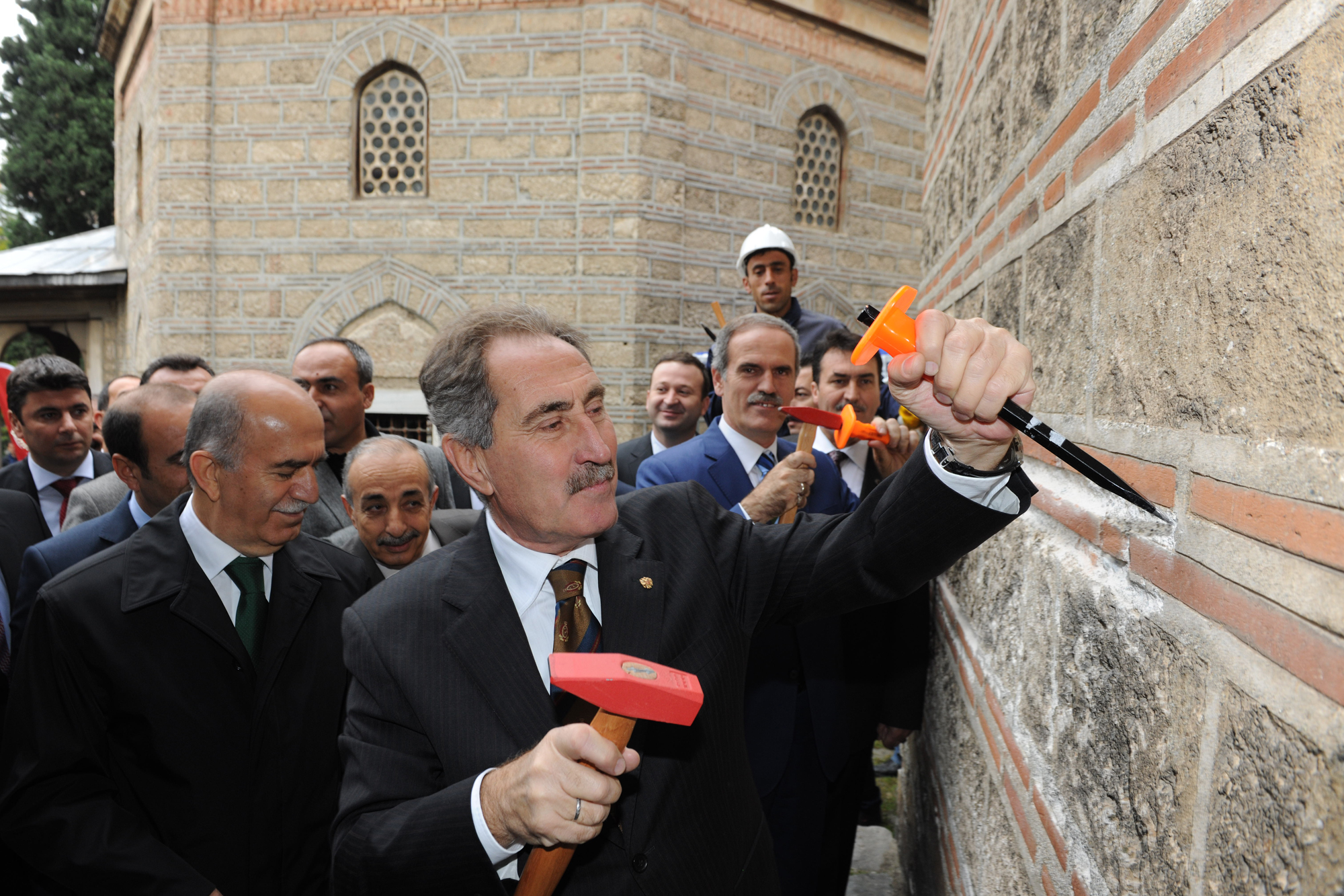 Konuşmaların ardından eline çekiç alan Bakan Günay, Başkan Altepe ve protokol üyeleri, restorasyon çalışmalarının startını verdi. Bakan Günay ve davetliler daha sonra Cem Sultan ve Şehzade Mustafa’nın türbelerini de gezdi. Bakan Günay ve beraberindekiler 1. Murat türbesini de ziyaret etti.