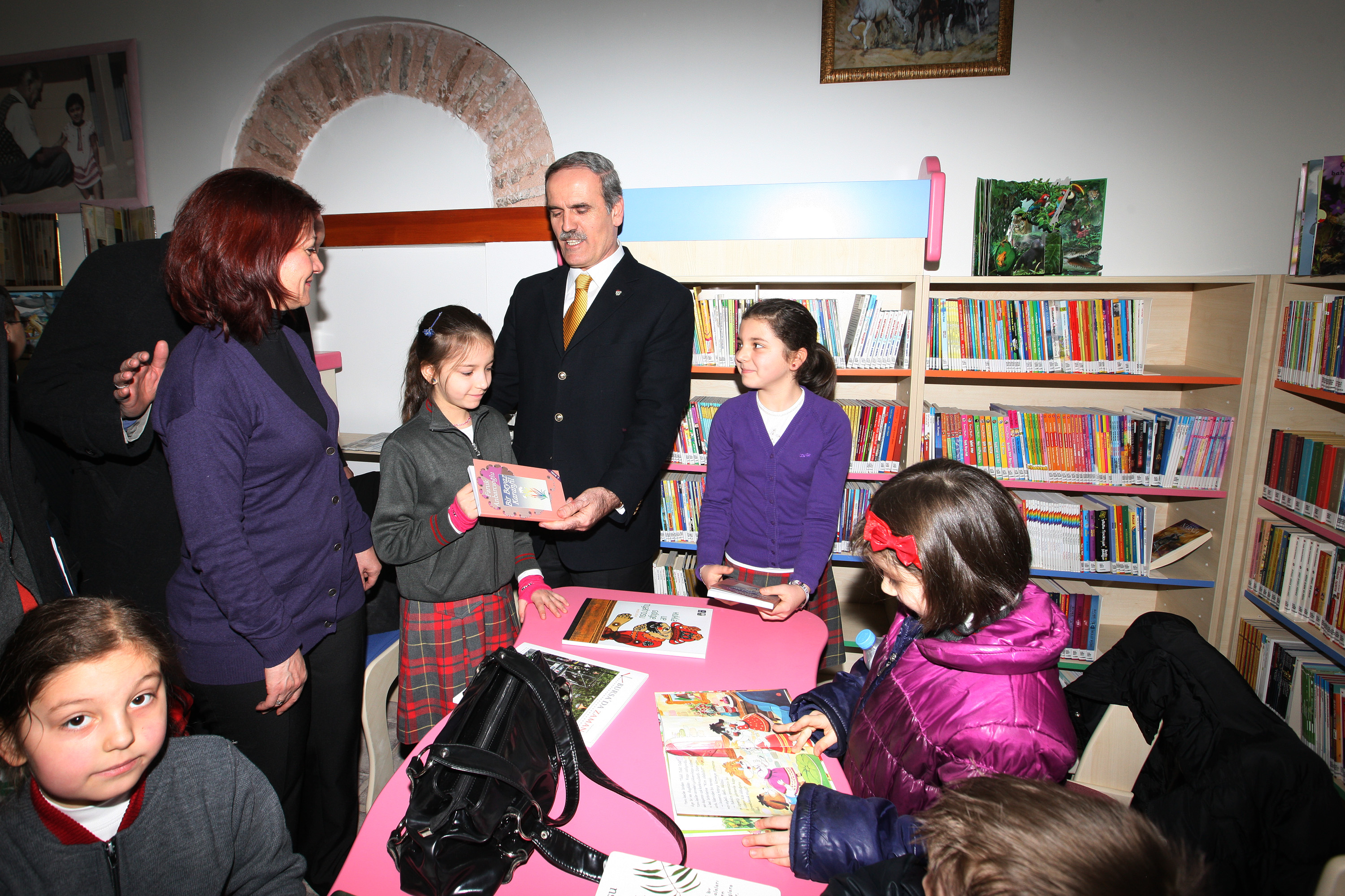Konuşmaların ardından açılış kurdelesini keserek, kütüphaneyi hizmete açan Başkan Altepe ve protokol üyeleri, içeride kitap okuyan çocuklarla sohbet etti.