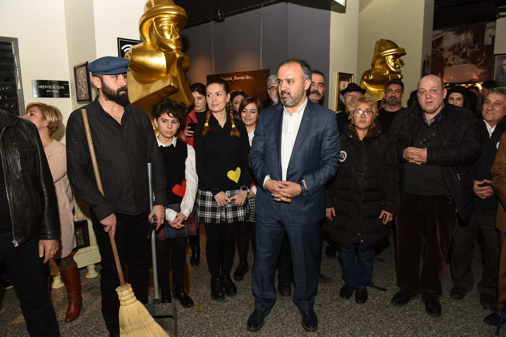 BURSA - Bursa Kent Müzesi’nde düzenlenen ve Bursa’nın 1970’li yıllarının sosyal, kültürel ve ekonomik yaşamının bir panoramasının sunulduğu ‘Bursa’da Arabesk Yıllar’ sergisi, canlı performanslar ve teatral gösterilerle davetlileri adeta o yıllara götürdü. Büyükşehir Belediye Başkanı Alinur Aktaş ve davetliler açılış öncesi drama gönüllülerinin performanslarını büyük bir beğeniyle izledi.