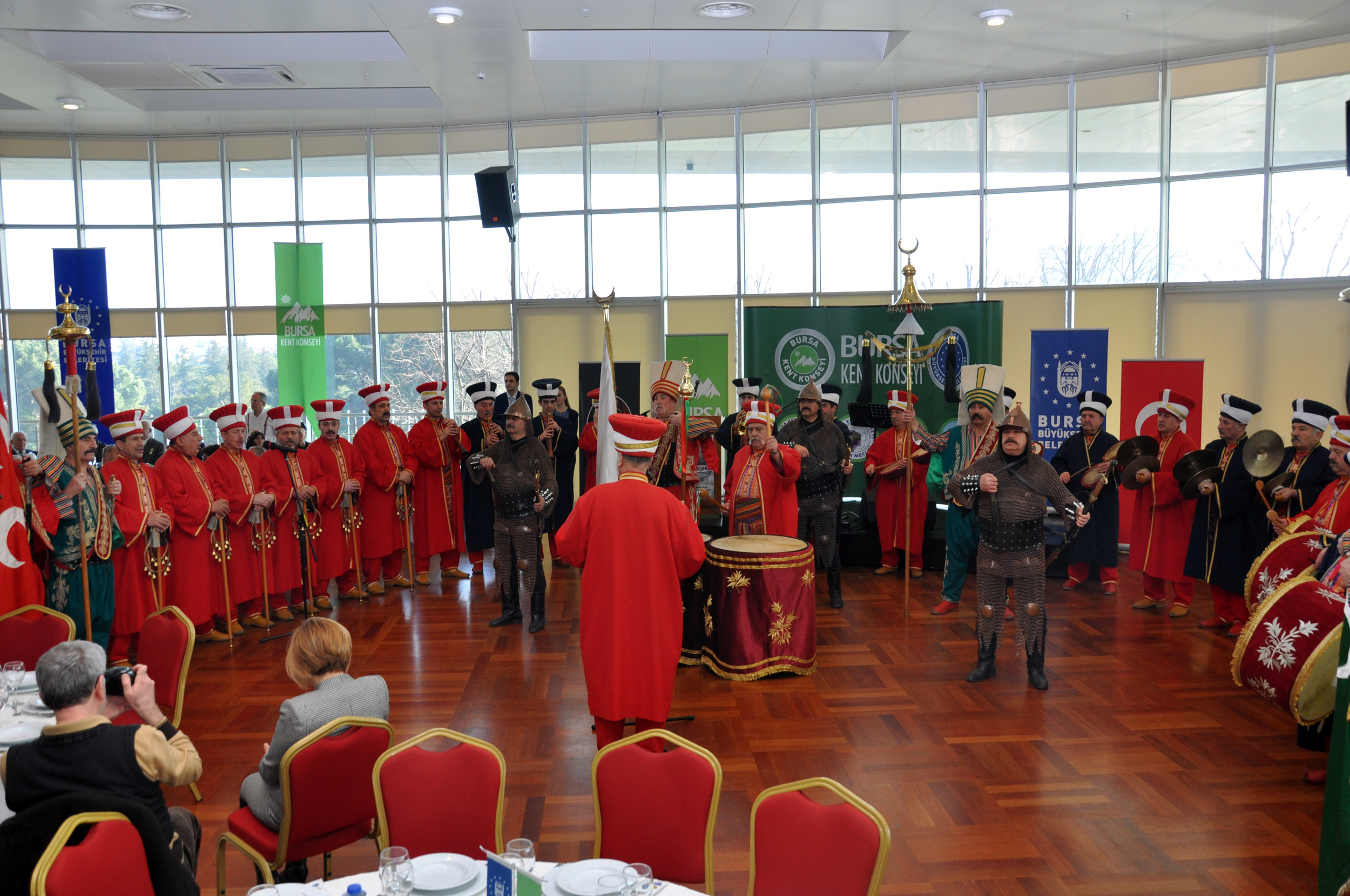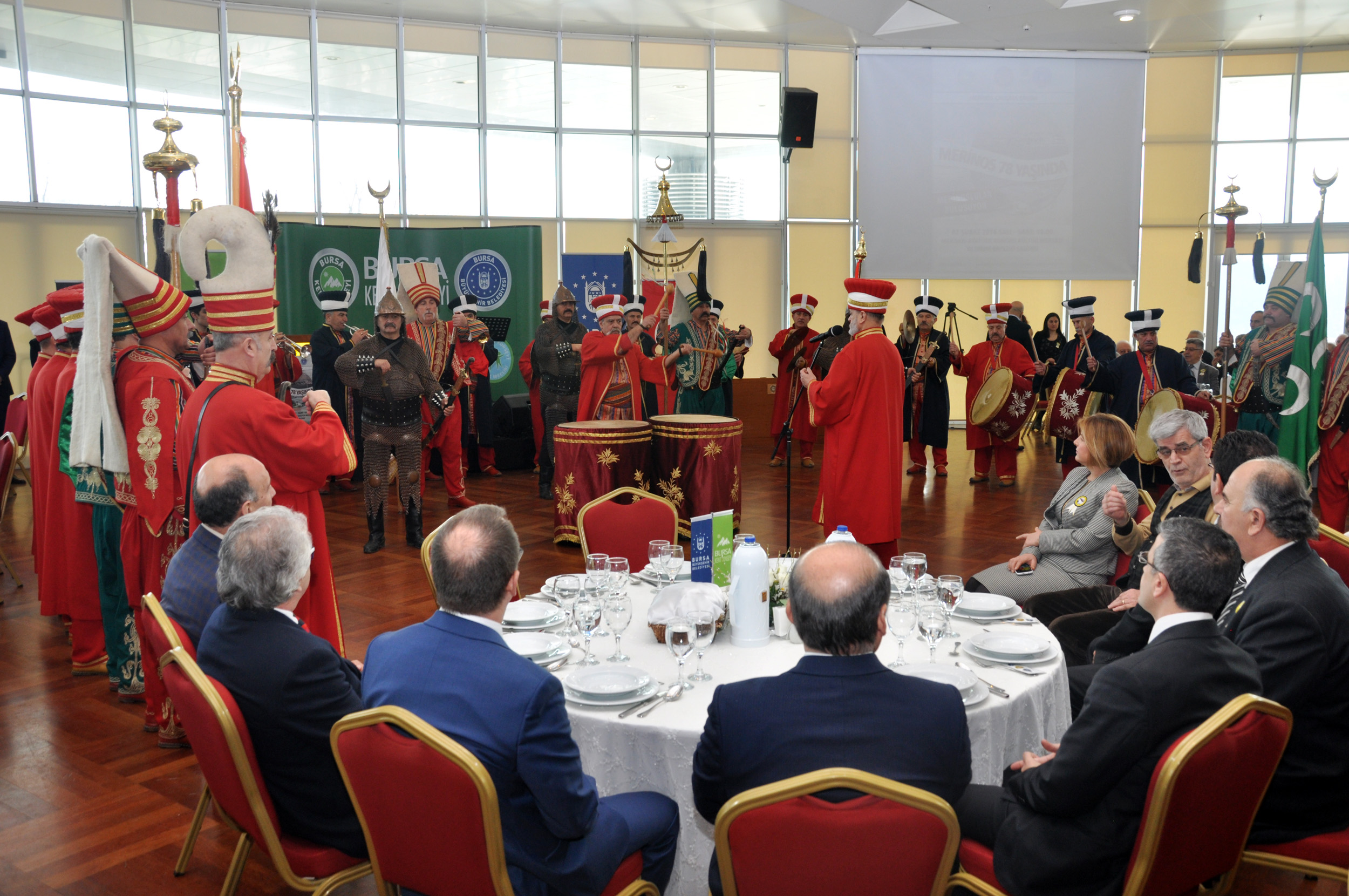 Bursa Mehter Takımı’nın gösterisiyle devam eden programda konuşan Büyükşehir Belediye Başkan Vekili Abdülkadir Karlık, Bursa’nın birçok ilklerin yaşandığı bir şehir olduğunu ifade etti. Osmanlı’nın ilk başkentinin Bursa olduğunu ifade eden Karlık, “Dünyadaki ilk çarşılı köprü Bursa’dadır. Dünyanın ilk standardı Bursa’da belirlenmiştir. İlk Türk Operası, ilk çevre koruma çalışması, ilk diplomatik zafer, ilk şehirler arası ulaşım, ilk organize sanayi bölgesi, ilk teleferik ve ilk kayak yarışı gibi gelişmeler hep Bursa imzasını taşımaktadır. Bursa, bir sanayi kenti olduğu kadar aynı zamanda bir kültür ve sanat kentidir. Festivallerden şenliklere, tiyatrodan gölge oyununa kadar bütün kültürel etkinliklerin nezih mekânlarda gerçekleştirildiği bir kenttir” dedi. Atatürk tarafından 1938 yılında işletmeye açılan Merinos Fabrikası’nın, Cumhuriyet tarihinin sembol işletmelerinden biri olduğunu anlatan Karlık, park içinde aslına uygunluğu gözetilerek restore edilen fabrika binasıyla bütünleşen kongre merkezi ile Merinos’un, bir kongre kültür merkezine dönüştüğü ve her türlü organizasyonun düzenlenebileceği bir tesis haline geldiğini vurguladı.