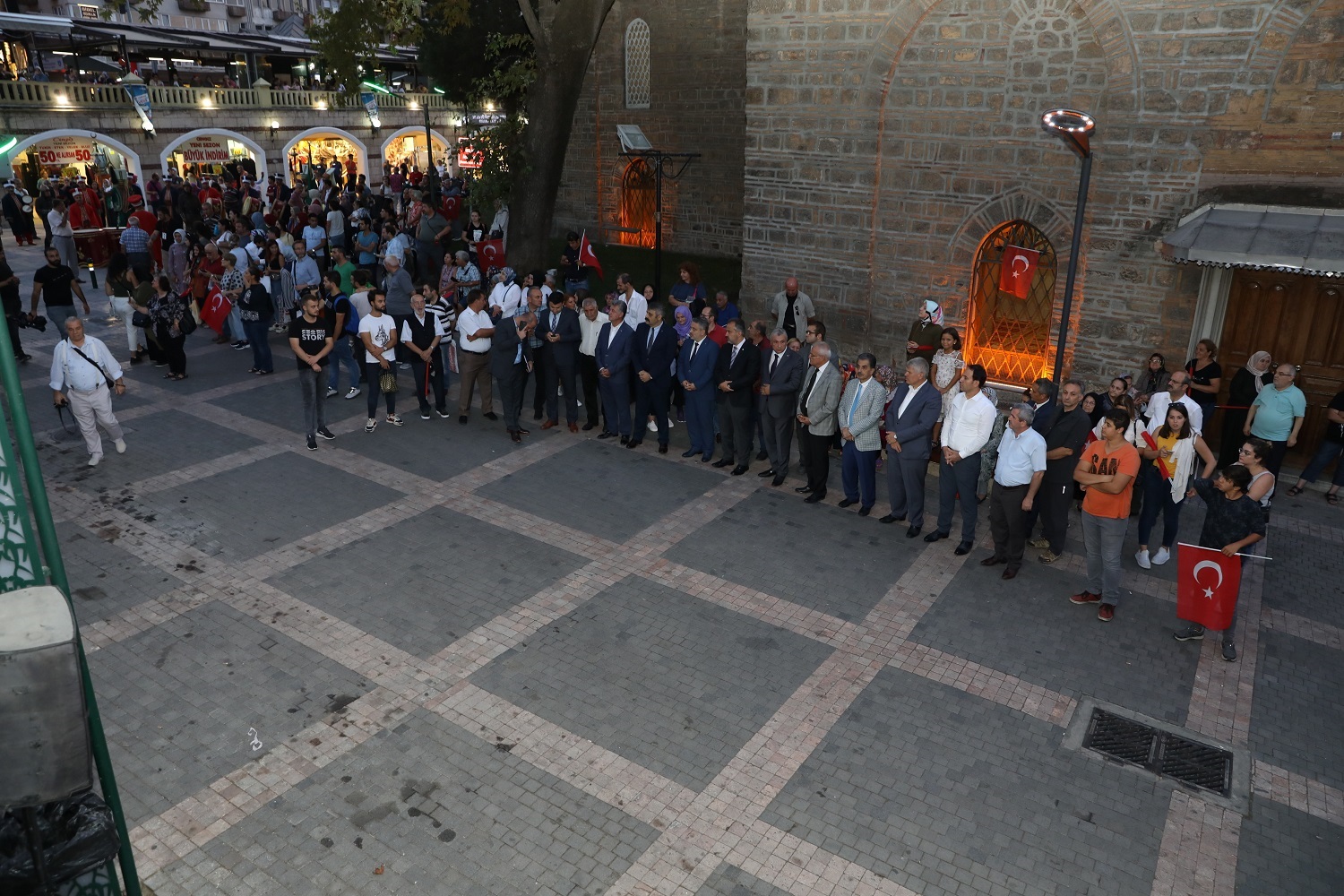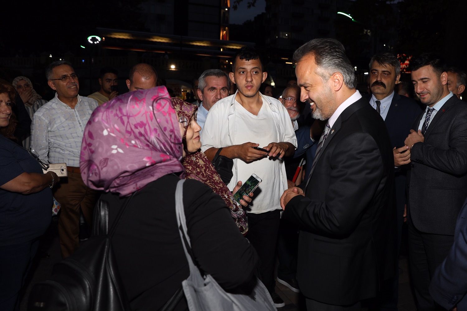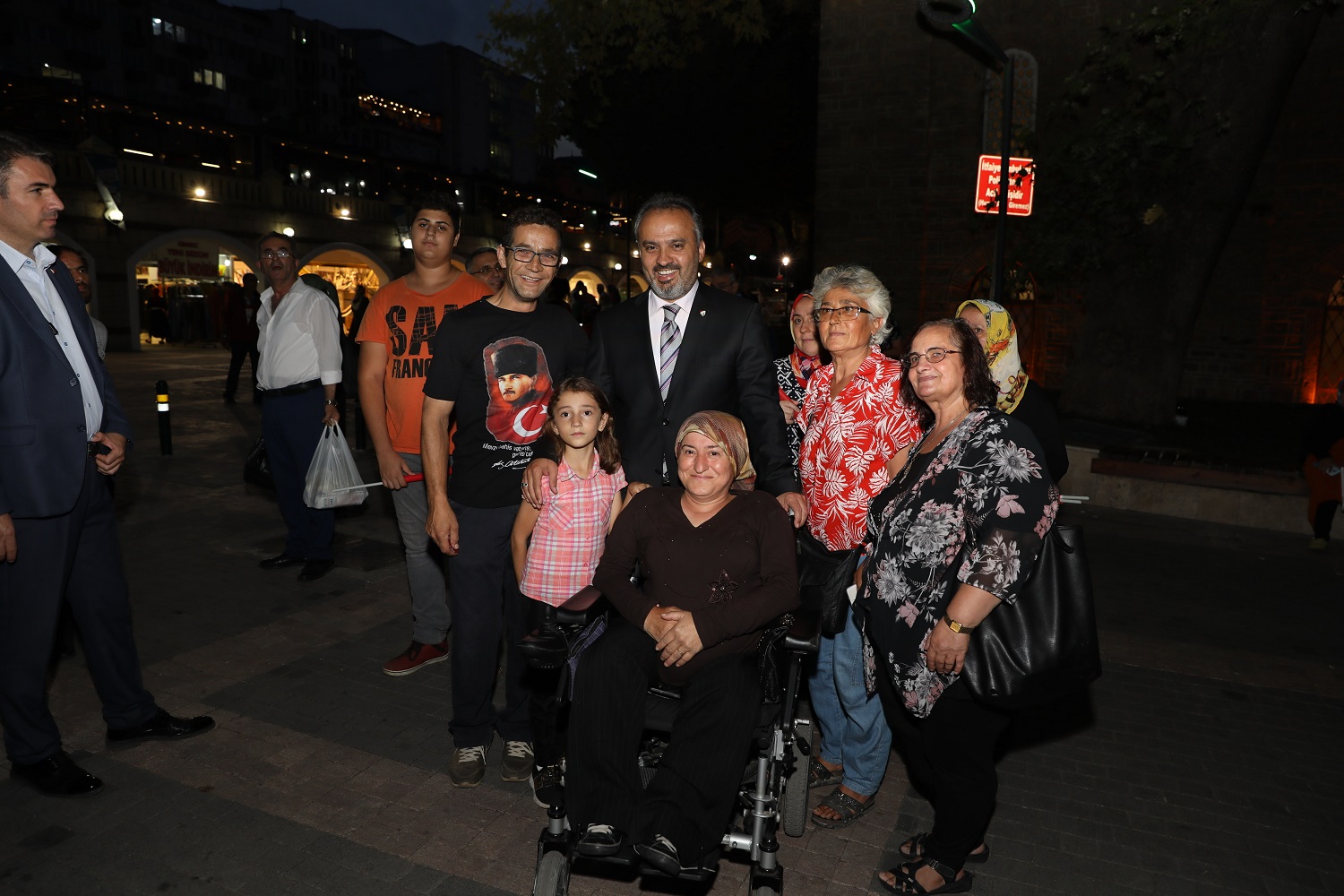7’den 70’e tüm Bursalılar, ellerindeki Türk bayraklarıyla coşkuya ortak oldu. Bursa Tahtakıran Kılıç Kalkan ekibi gösterisiyle büyük beğeni topladı. Gecede, Türkiye Muharip Gaziler Derneği Bursa Şubesi üyeleri, şehrin kurtuluşunu temsili olarak canlandırdı. Türk bayrakları ile koşarak tarihi belediye binasının önüne gelen milis kuvvetleri, vatandaşlardan uzun süre alkış aldı. İstiklal Marşı'nın okunması sırasında tarihi belediye binasındaki Türk bayrağı, gaziler tarafından göndere çekildi. Daha sonra Orhangazi Camii'nden kurtuluş salası okundu.
