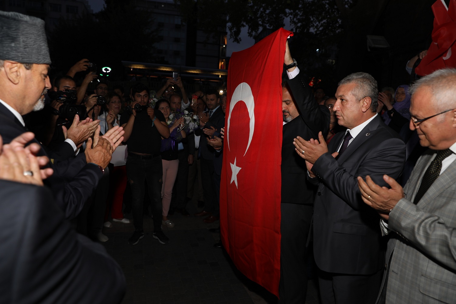Daha sonra milis kuvvetleri temsilcileri, Türk bayrağını öperek, Büyükşehir Belediye Başkanı Alinur Aktaş’a teslim etti. Başkan Aktaş da bayrağı öperek teslim aldı. Protokol üyeleri gazilere çiçek takdim etti. Törene, vali yardımcıları Abidin Ünsal ile Mustafa Özsoy, askeri erkan, sivil toplum kuruluşları ve parti temsilcileri katıldı.