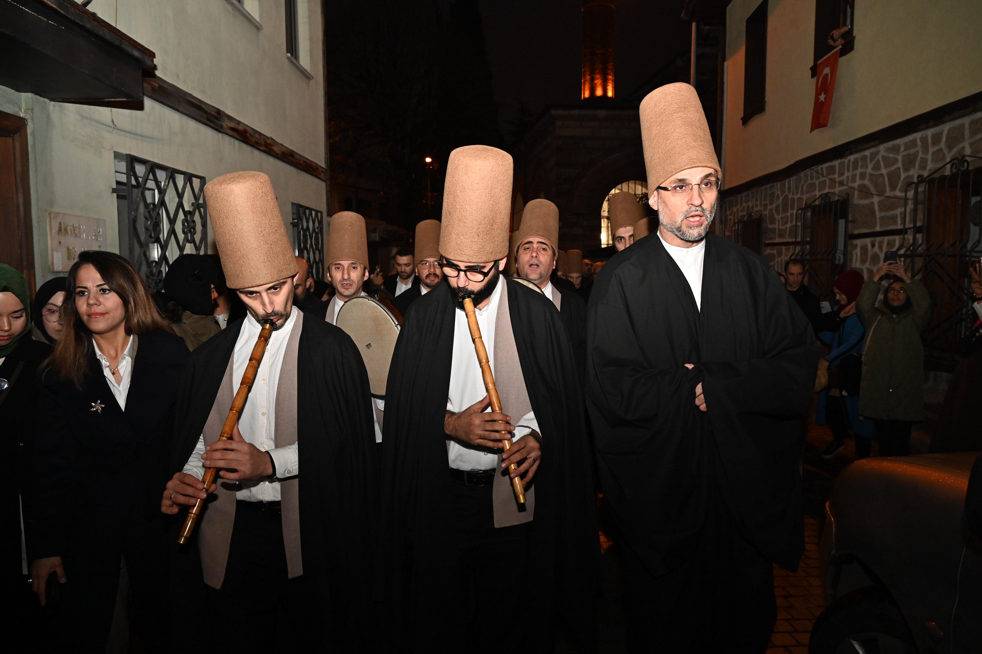 BURSA – Bursa Büyükşehir Belediyesi tarafından restorasyonu yapılarak hizmete açılan ve ilk günkü ihtişamına kavuşan 400 yıllık Bursa Mevlevihanesi, 98 yıl aradan sonra Mevlana Celaleddin-i Rumi'nin 750’inci vuslat yıldönümünde ‘Şeb-i Arus Töreni’ne ev sahipliği yaptı.