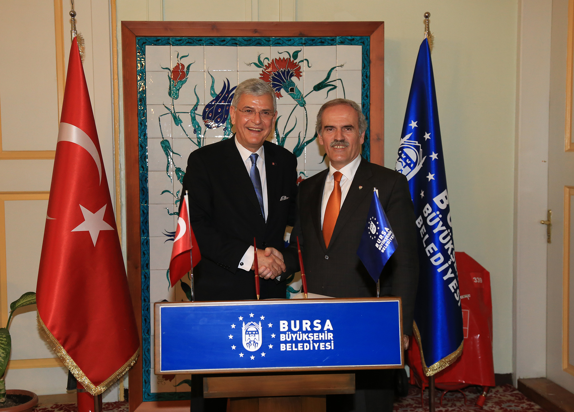 - BURSA BÜYÜKŞEHİR BELEDİYE BAŞKANI RECEP ALTEPE’Yİ ZİYARET EDEN AVRUPA BİRLİĞİ(AB) BAKANI VE BAŞMÜZAKERECİ VOLKAN BOZKIR, TARİH VE KÜLTÜR BAŞKENTİ BURSA’NIN BUNDAN SONRA AB FONLARINDAN DAHA AKTİF YARARLANMASI İÇİN LOBİ FAALİYETLERİNE BAŞLAYACAKLARINI AÇIKLADI.