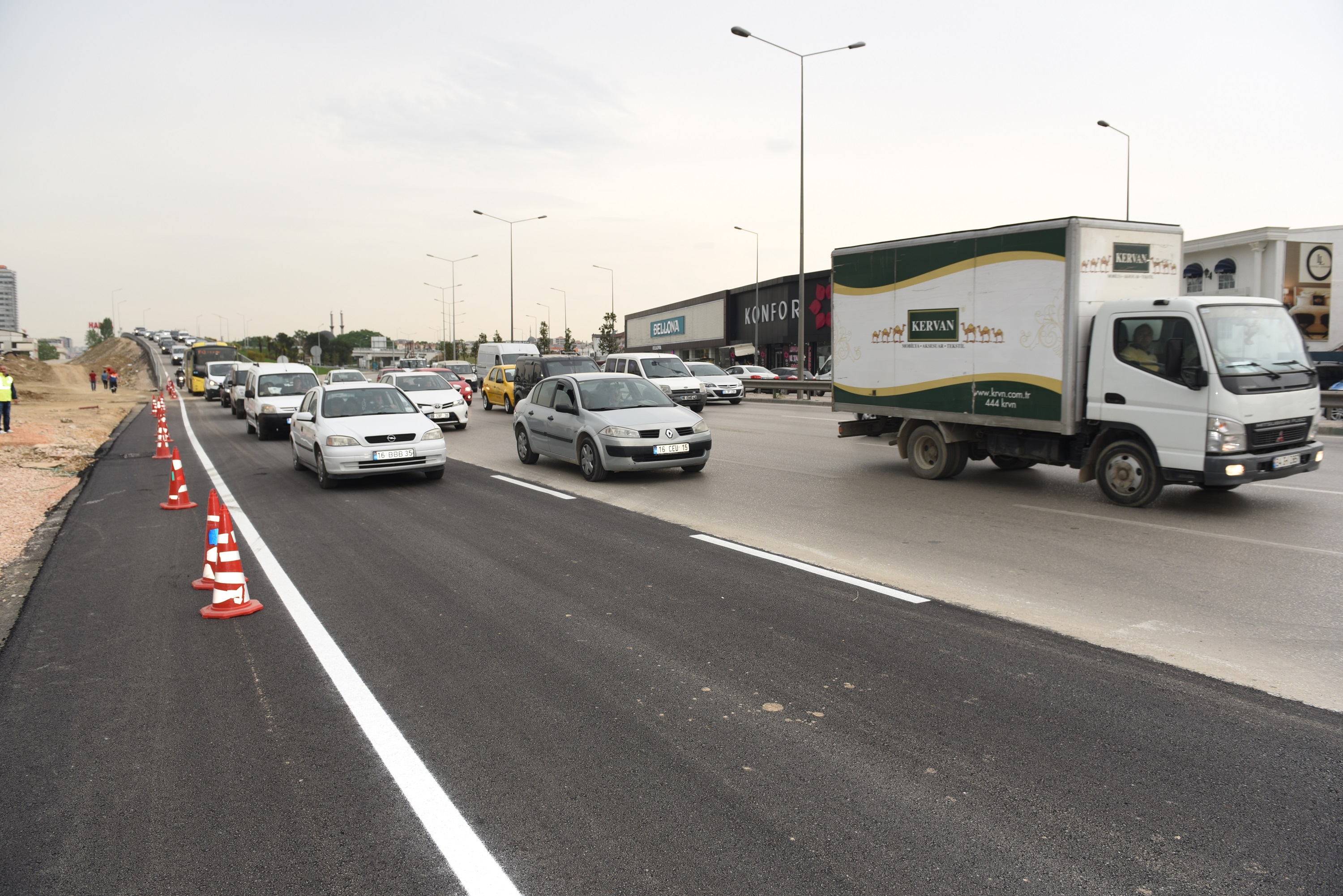 Mudanya’dan gelen araçların köprü üzerinden geçtikten sonra yolun tek şeride düşmesi nedeniyle yaşanan trafik sıkışıklığı, Büyükşehir Belediyesi tarafından yola kazandırılan ilave bir şerit ile ortadan kalktı. Mudanya köprülü kavşağıyla İzmir yolundan şehir merkezine gelen araç trafiği rahatlamış ancak Mudanya’dan şehir merkezine gelen yolun tek şeride düşmesi nedeniyle yolda metrelerce kuyruklar oluşmaya başlamıştı. Bu duruma çözüm bulmaya çalışan Büyükşehir Belediyesi tek şeride düşen yolu bir şerit daha genişleterek trafiğin büyük oranda rahatlamasını sağladı.