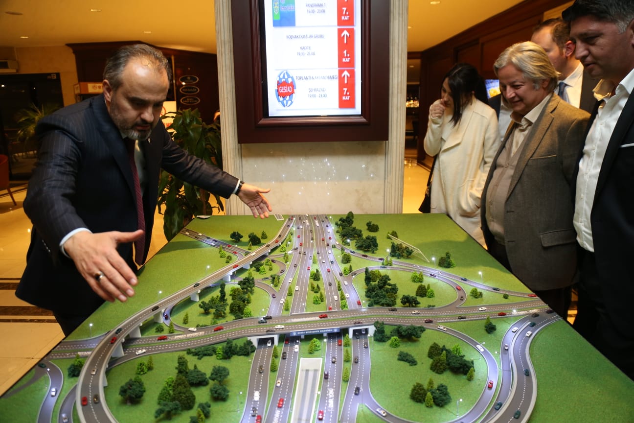 BURSA - Bursa Büyükşehir Belediye Başkanı Alinur Aktaş, Bursa Genç Sanayici İş İnsanları ve Yöneticileri Derneği (GESİAD) üyelerine, başta Acemler kavşağına yapılacak direksiyonel kavşak projesi olmak üzere, Bursa’yı geleceğe taşıyacak çalışmalarını anlattı. Acemler Kavşağı’nın yeni modellemesi üzerinden projenin detaylarını işadamlarıyla paylaşan Başkan Aktaş, “Bursa’ya güveniyorum. Bursa dinamik bir şehir. Bu dinamiği doğru kullanırsak Bursa, tarımdan sanayiye, turizmden ekonomiye kadar daha iyi standartlara ulaşacaktır” dedi.
