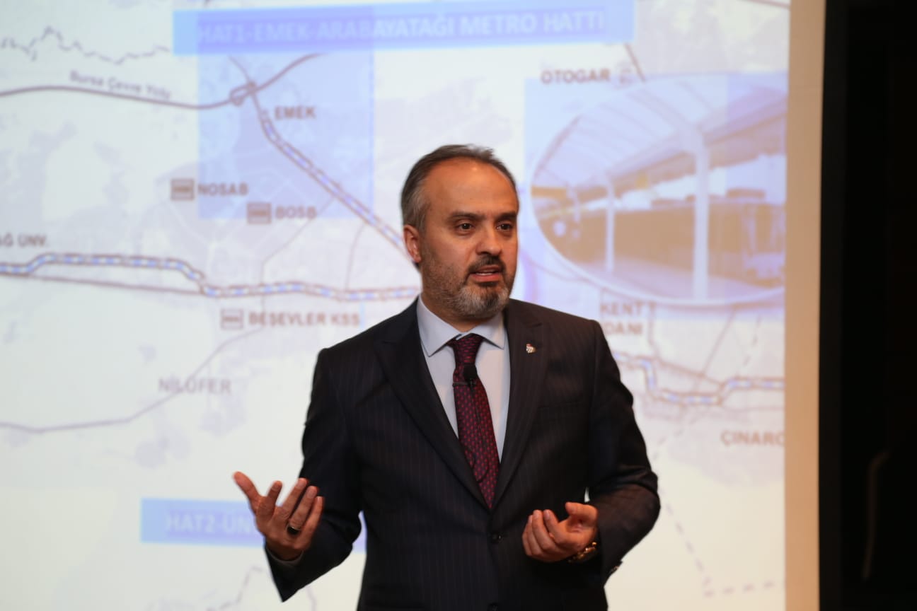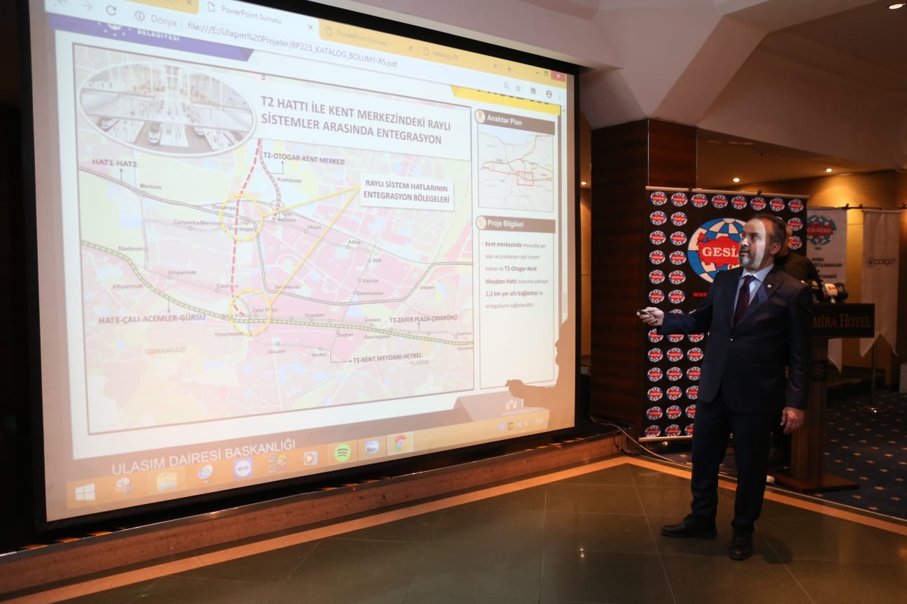 Dünyanın tüm gelişmiş ülkelerinde raylı sistemle taşıma çok daha yaygın olduğunu ifade eden Başkan Aktaş, Bursa olarak raylı sistem ağını genişletmek zorunda olduklarını kaydetti. Bu konuda kısa, orta ve uzun vadeli tüm planlarını hazırladıklarını dile getiren Başkan Aktaş, “Raylı sistemlerde mevcut hattımız Kestel’den başlıyor, Acemler’e geldiğinde ikiye ayrılıyor biri emekte diğeri üniversitede sonlanıyor. Bir de T2 ve T3 hattımız var. Bu hatlar üzerinde şu anda bir revizyona gidiyoruz, revizyon tamamlandığında yüzde 55-60 daha fazla yolcu taşıma imkanına sahip olacağız. Bursa'nın 1355 yataklı en büyük hastanesi yapılıyor. Şehir hastanesine raylı sistemi birleştirmek için 5,5 km'lik bir hat planladık. İkinci olarak Üniversite hattının Görükle ile birleştirilmesi lazım. orada 50 bin kişilik bir hayat var. T2’nin de sisteme entegre edilmesi gerekli. Bundan sonraki planlar ise Gürsu'dan başlayıp, Acemlere oradan Çalı'ya giden hat, diğeri de Demirtas'tan başlayıp, kuzey doğu - güney batı aksında yeni gelişim bölgesinde 20.7 km'lik bir hat. Bunlarla beraber 2018'de mevcut taşıma günlük 286 bin iken, 2035 yılında bu rakam 1 milyon 352 bin olacak. Bütün enerjimizi buralarda yeni güzergahlar açmak ve kamulaştırmalar yapmak için harcamak durumundayız” diye konuştu.