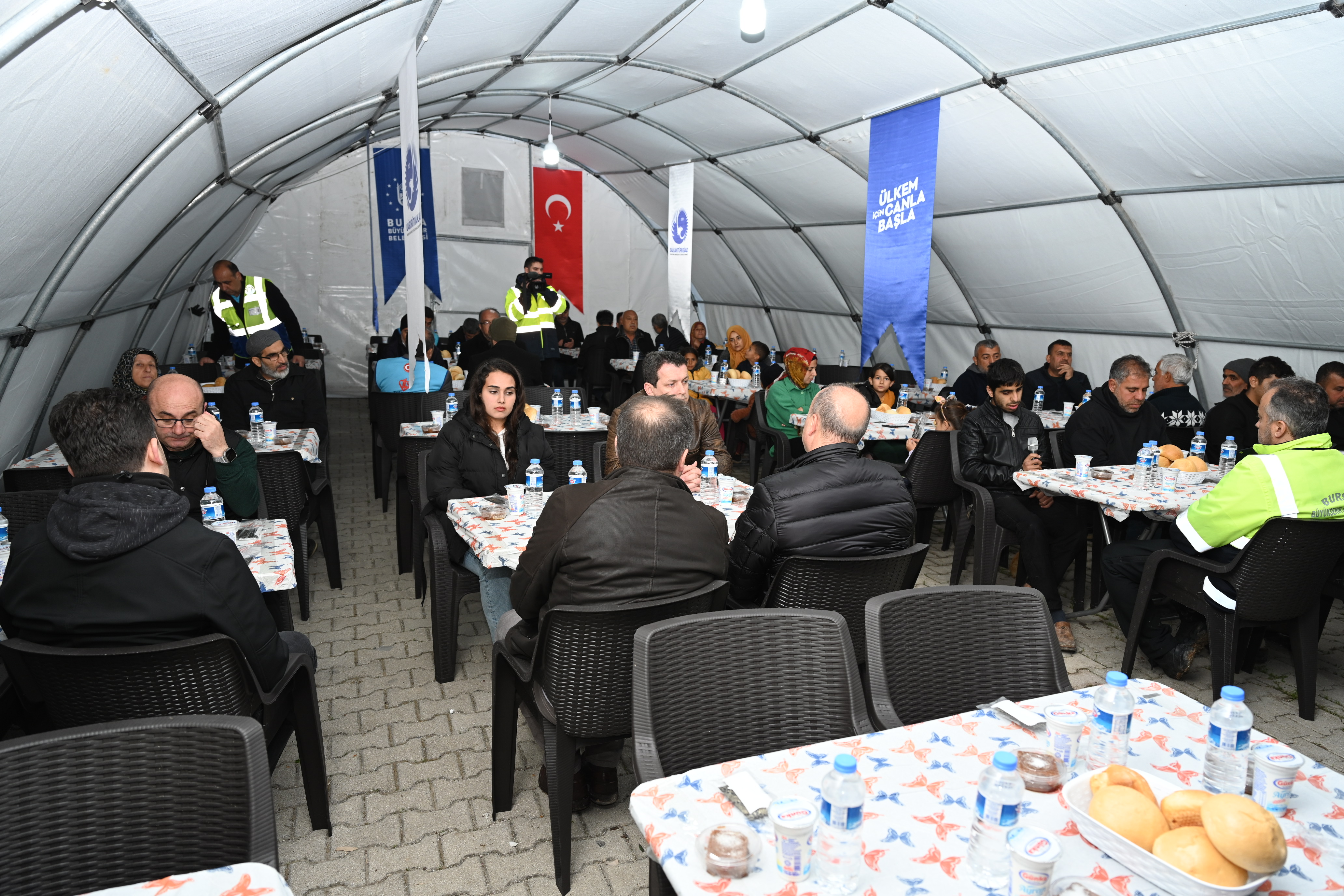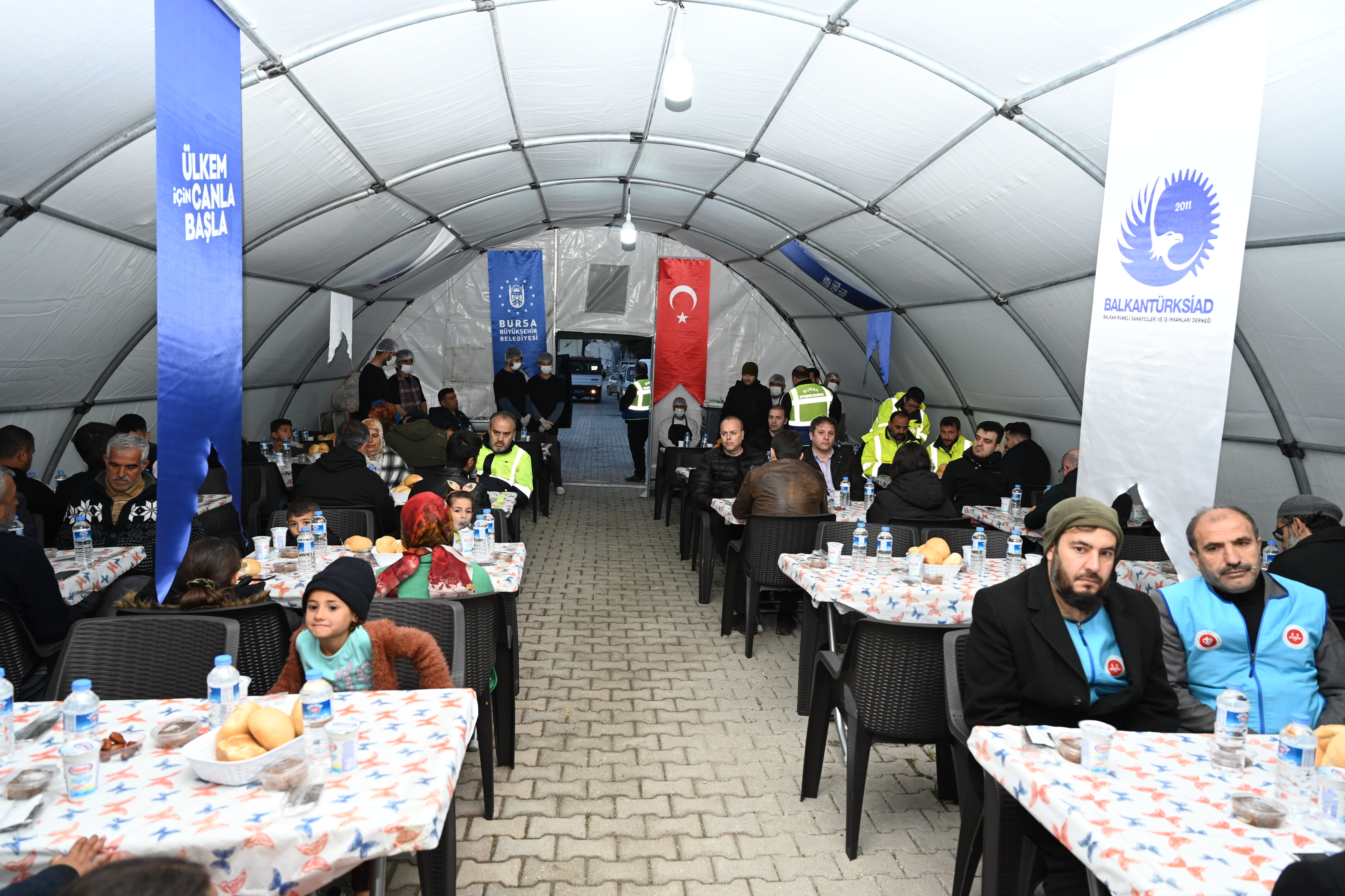 Asrın felaketinde Hataylıların yaralarını sarmak için yoğun mesai harcayan Bursa Büyükşehir Belediyesi, Ramazan’ın manevi iklimini Hatay’da da yaşatıyor. Bursa’da Fevzi Çakmak Caddesi Otoparkı ve Emirsultan Meydanı’nda geleneksel iftar programlarına devam eden Büyükşehir Belediyesi, Hatay’ın Narlıca Mahallesi’nde 3 ayrı noktaya iftar çadırları kurdu. Balkantürksiad ve Türkiye Sağlıklı Kentler Birliği başta olmak üzere hayırseverlerin sponsorluğunda düzenlenen iftarlarda depremzede vatandaşlar da Ramazan manevi hazzını yaşama imkanı buluyor.