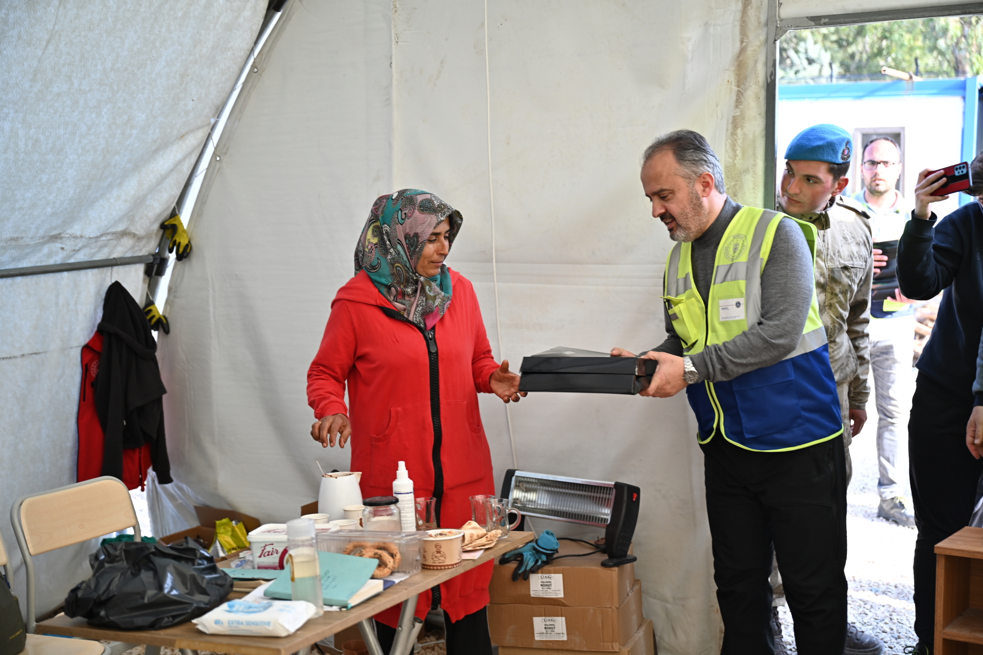 BURSA – Bursa Büyükşehir Belediyesi, deprem felaketiyle omuzlarındaki yük katlanarak artan, çadır ve konteyner kentlerde yeni bir düzen kurmaya çalışan kadınları, 8 Dünya Kadınlar Günü’nde de unutmadı. Çadır kentleri gezen Bursa Büyükşehir Belediye Başkanı Alinur Aktaş, afetin yükünü omuzlayan kadınları çadırlarında ziyaret ederek, çeşitli hediyelerle onlara moral verdi.