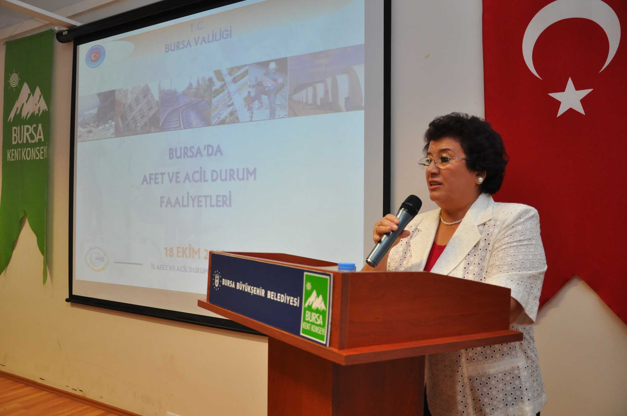 BURSA – Bursa Kent Konseyi Kadın Meclisi, birinci derece deprem bölgesinde yer alan Bursa’da tüm vatandaşları doğal afetler hakkında bilinçlendirmek amacıyla ‘Afetle Mücadele’ konulu bir eğitim semineri düzenledi.
