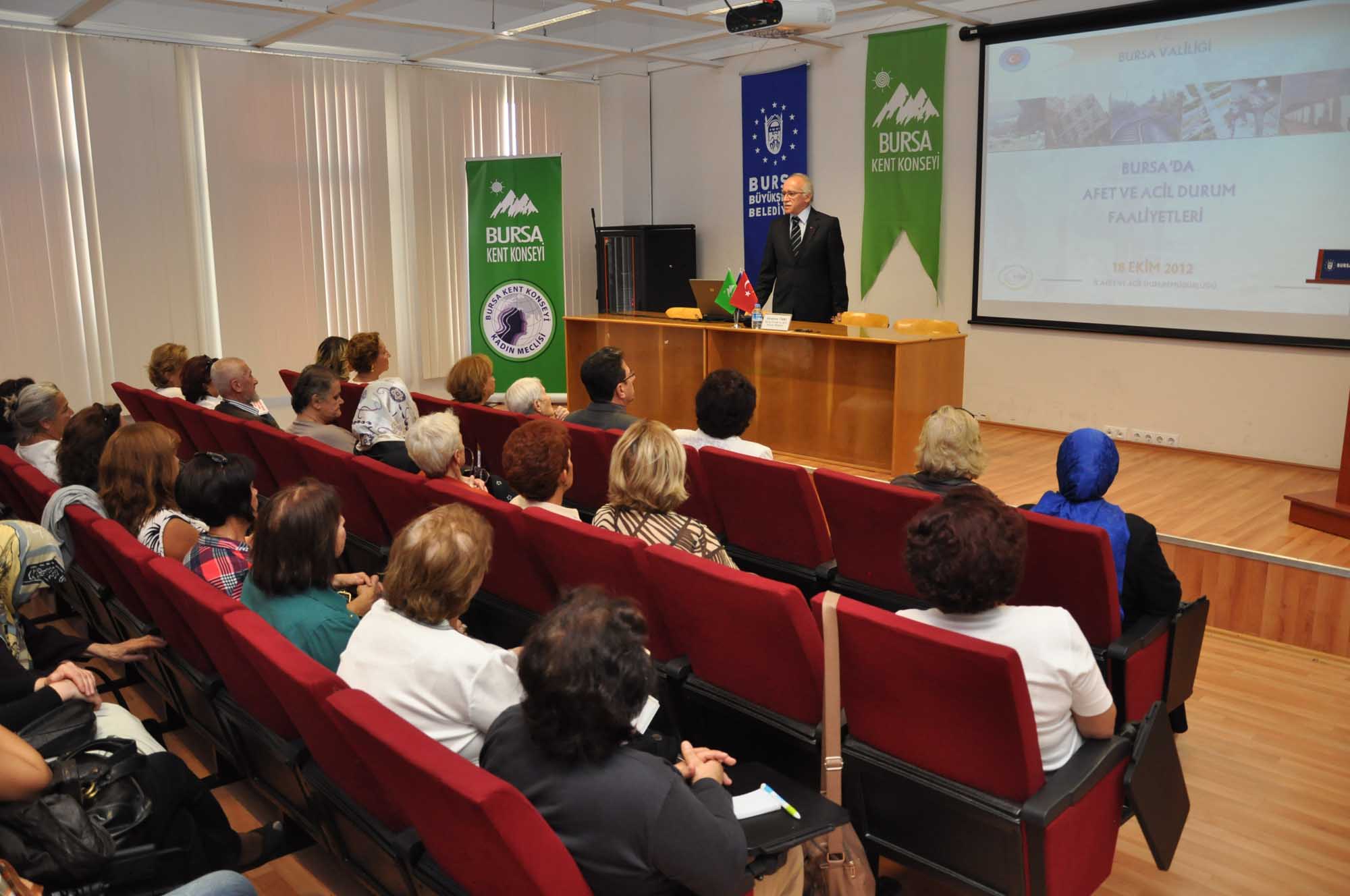 - BURSA KENT KONSEYİ KADIN MECLİSİ, HALKIN DOĞAL AFETLER HAKKINDA BİLİNÇLENDİRİLMESİ AMACIYLA ‘AFETLE MÜCADELE’ KONULU EĞİTİM SEMİNERİNİ DÜZENLEDİ.