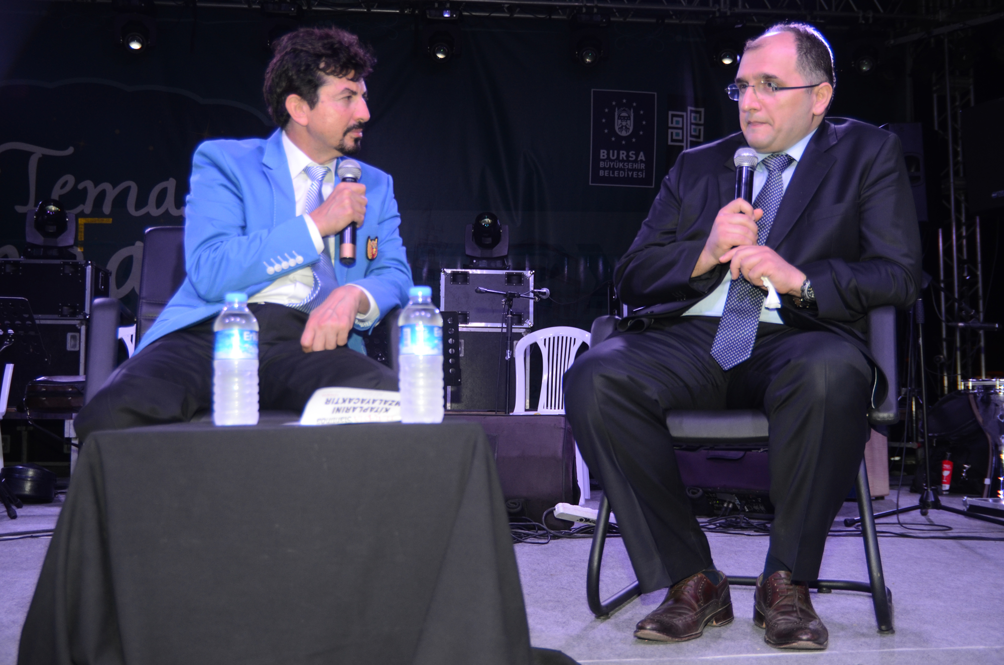 Büyükşehir Belediyesi iştiraklerinden Kültür A.Ş. tarafından organize edilen Temaşa-i Ramazan programı kapsamında Merinos Parkı’nda bir araya gelen vatandaşlar, usta sanatçı Ahmet Özhan’ın konseriyle huzurlu anlar yaşadı. Özhan, en sevilen tasavvuf eserlerine yer verdiği konserinde dinleyicilerine duygusal anlar yaşattı. Usta sanatçı, yaklaşık 2 saat süren konserde Bursa’da sevenleriyle bir arada olmanın heyecanını yaşadığını söyledi. Programında ilahilere de yer veren Özhan’a konserin sonunda teşekkür plaketini, Büyükşehir Belediyesi Başkanvekili Atilla Ödünç takdim etti. Gecede ayrıca ‘Ramazan’da Sağlık’ bölümü gerçekleştirildi. Fatih Mühürdar’ın sunduğu programa konuk olan Genel Cerrahi Uzmanı Op. Dr. Selim Mısırlıoğlu, Ramazan ayına özel beslenme önerileriyle vatandaşları bilgilendirdi.