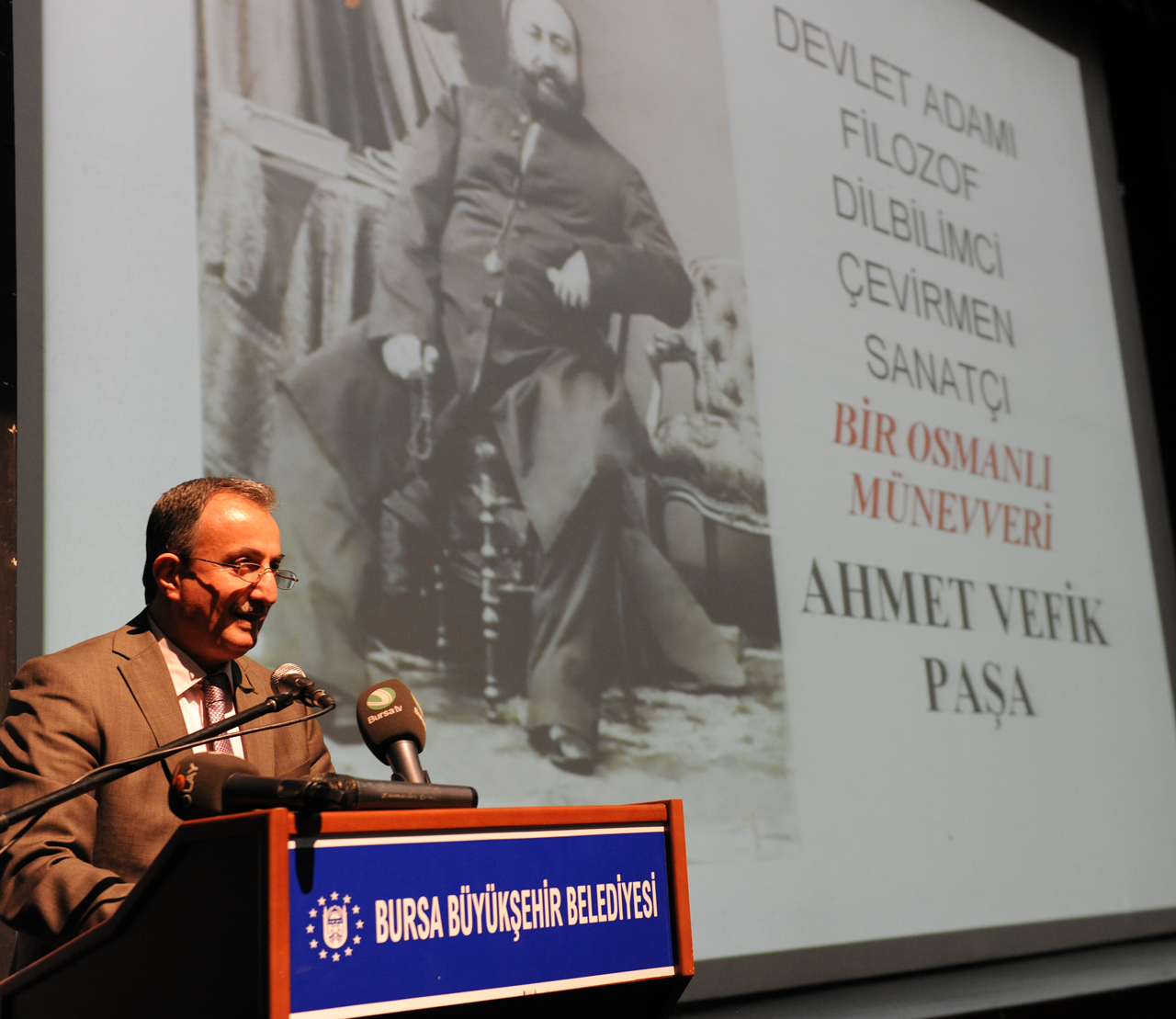 Bursa’da 1879 – 1882 yılları arasında Vali olarak görev yapan, Ahmet Vefik Paşa Tiyatrosu, Hükümet Konağı, Memleket Hastanesi ve Belediye Binası gibi anıtsal eserleri kente kazandıran Ahmet Vefik Paşa, ölümünün 121’inci yıldönümünde Tayyare Kültür Merkezi’nde düzenlenen törenle anıldı. İl Kültür Turizm Müdürü Ahmet Gedik ve Büyükşehir Belediyesi Kültür ve Sosyal İşler Daire Başkanı Enver Karakoç’un da katıldığı törende konuşan Büyükşehir Belediyesi Başkanvekili Abdullah Karadağ, Ahmet Vefik Paşa’nın örnek alınacak bir şahsiyet olduğunu vurguladı. Ahmet Vefik Paşa’nın kendini çok iyi yetiştiren bir devlet adamı olduğunu ifade eden Karadağ, “Günümüzde en az bir yabancı dilin ne kadar önemli olduğunu anlatmaya çalışıyoruz. O ise tam 16 yabancı dil biliyordu. Bursa’daki görevi sırasında kentimize önemli anıtsal eserler kazandırdı. Kendisini rahmetle anıyoruz” dedi.