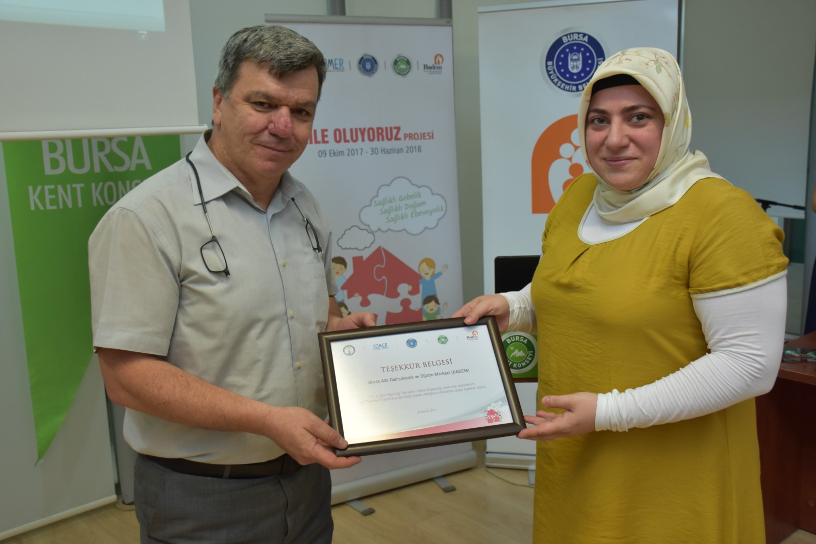 Bursa Kent Konseyi’nin destek verdiği SOMER’in hayata geçirdiği ve İçişleri Bakanlığı Dernekler Genel Müdürlüğü’nün hibe verdiği ‘Aile Oluyoruz’ projesi düzenlenen "Yeni Nesil Ebeveyn- Çocuk İlişkisi" söyleşi ile sona erdi. Programa Bursa Kent Konseyi Genel Sekreteri Murat Başlar, İl Dernekler Müdürü Osman Dikmen, Büyükşehir Belediyesi Sosyal İşler Şube Müdürü İbrahim Karaman, SOMER Genel Sekreteri Başak Saygı Şahin, proje ortakları, eğitimciler ve vatandaşlar katıldı.