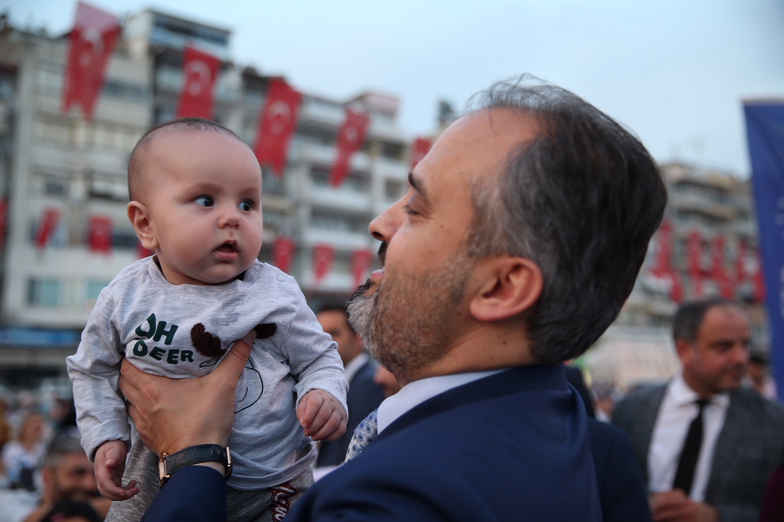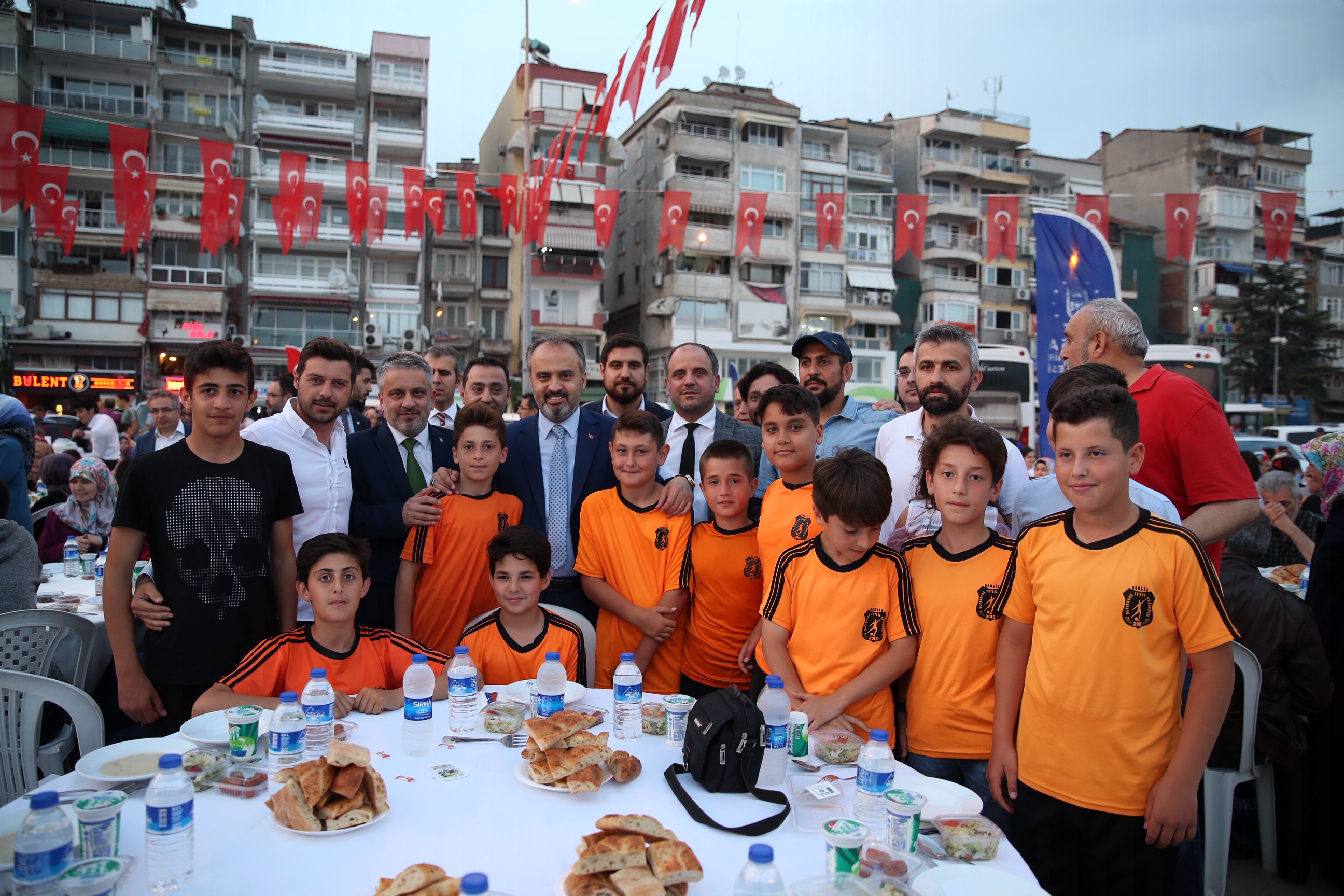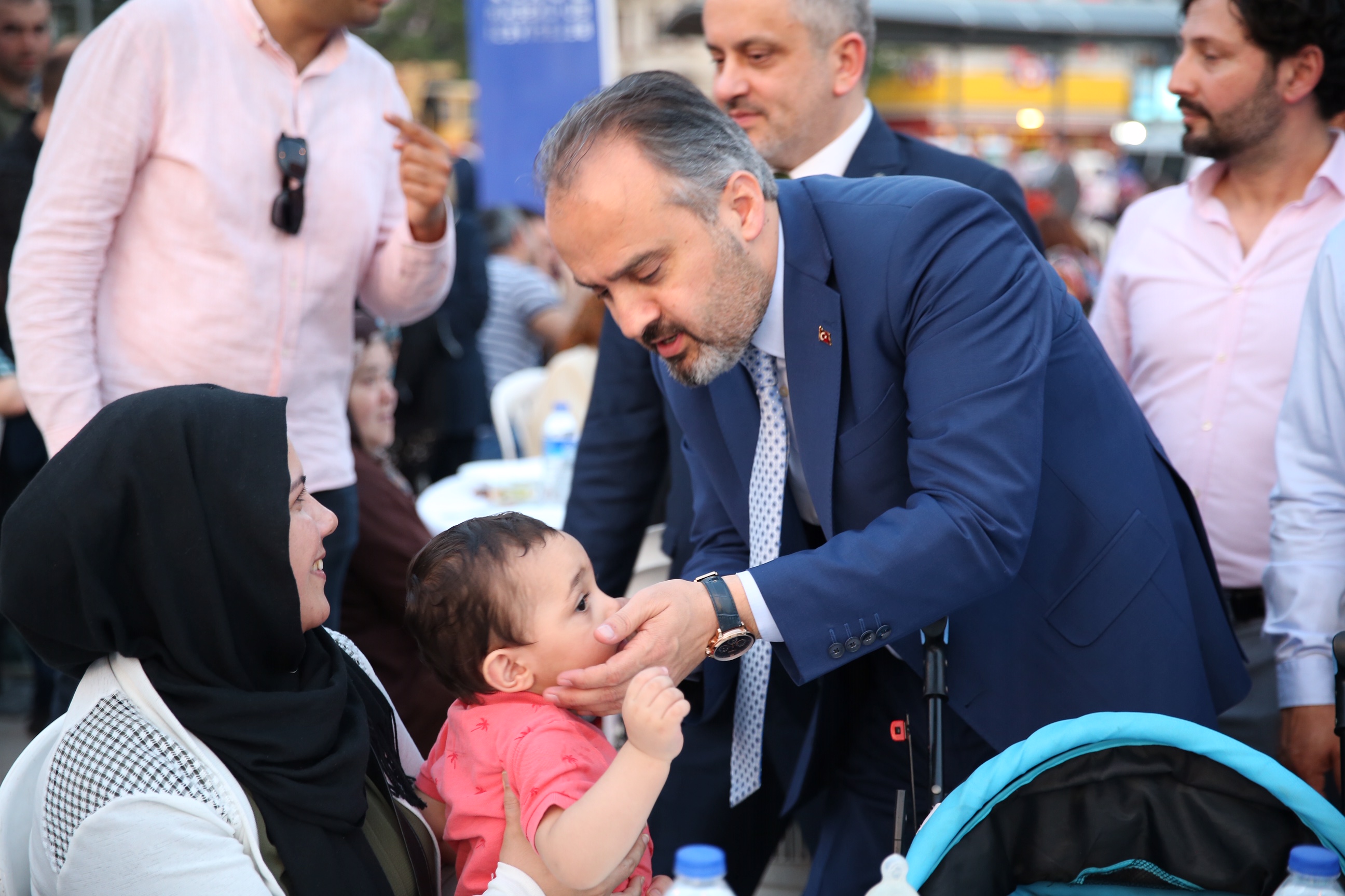 Bursa Büyükşehir Belediyesi, Ramazan ayının manevi iklimini kentin tüm ilçeleriyle buluşturan iftar programını bu kez Gemlik’te gerçekleştirdi. Gemlik 15 Temmuz Demokrasi Meydanı’nda düzenlenen iftara ilçede yaşayan vatandaşlar yoğun katılım sağladı. Gemlik’te sevgi seliyle karşılanan Bursa Büyükşehir Belediye Başkanı Alinur Aktaş da orucunu vatandaşlarla birlikte açtı. Başkan Aktaş, birlik ve beraberlik mesajları verdiği konuşmasında, “Her akşam başka bir ilçedeyiz. Bursa’mızın 17 ilçesine de ulaşmaya çalışıyor, hemşerilerimizle iftar yapıyoruz” dedi.