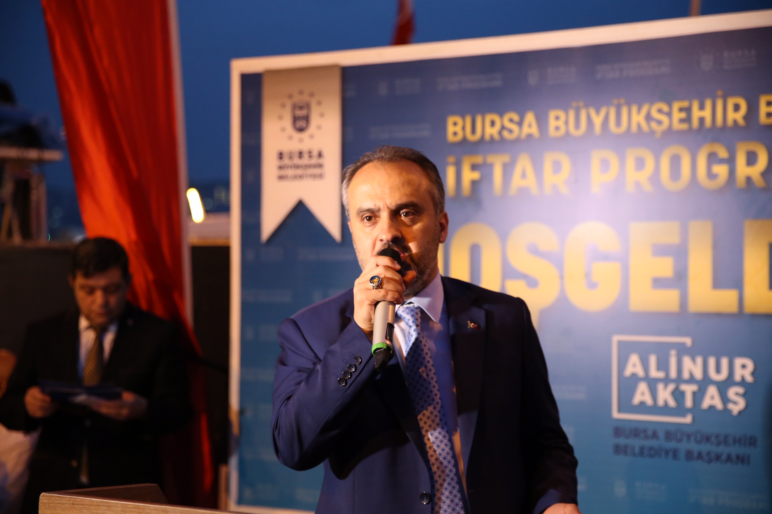 Başkan Aktaş, Bursa Büyükşehir Belediyesi olarak her akşam biri Görükle olmak üzere 9 ayrı noktada 16 bin 500 kişiye iftarlar verildiğini, Ramazan boyunca da 500 bin kişiye iftar verilmiş olacaklarını söyledi. Kosova, Bosna Hersek, Batı Trakya, Bulgaristan, Makedonya ve Gürcistan olmak üzere 6 ülkede de iftarlar verildiğini ve erzak dağıtıldığını anlatan Başkan Aktaş, “İnsanların yüzünü güldürmeye çalışıyoruz. Birliğimizi ve beraberliğimizi ortaya koymak adına bir araya geldiğimiz bu sofralar, çok değerlidir. En büyük zenginliğimiz birliğimiz ve beraberliğimizdir” diye konuştu.