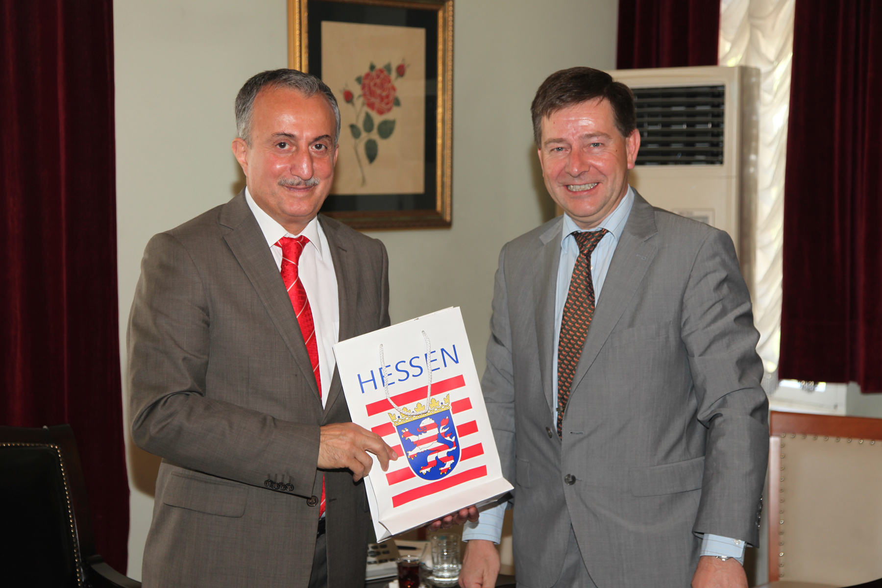 Milletvekili Frank Sürmann da Hessen’de daha çok ormancılık, gıda ve çevre alanlarında geliştirmek istedikleri çalışmalarla ilgili görüşmeler yapmak üzere Bursa’ya geldiklerini ifade etti. Sürmann, Bursa’da Büyükşehir Belediye Meclisi’nin çalışmaları hakkında da detaylı bilgiler aldı. Ziyaretin sonunda Başkanvekili Karadağ, konuklarına çini plaket ve Bursa’ya özgü hediyeler takdim etti.