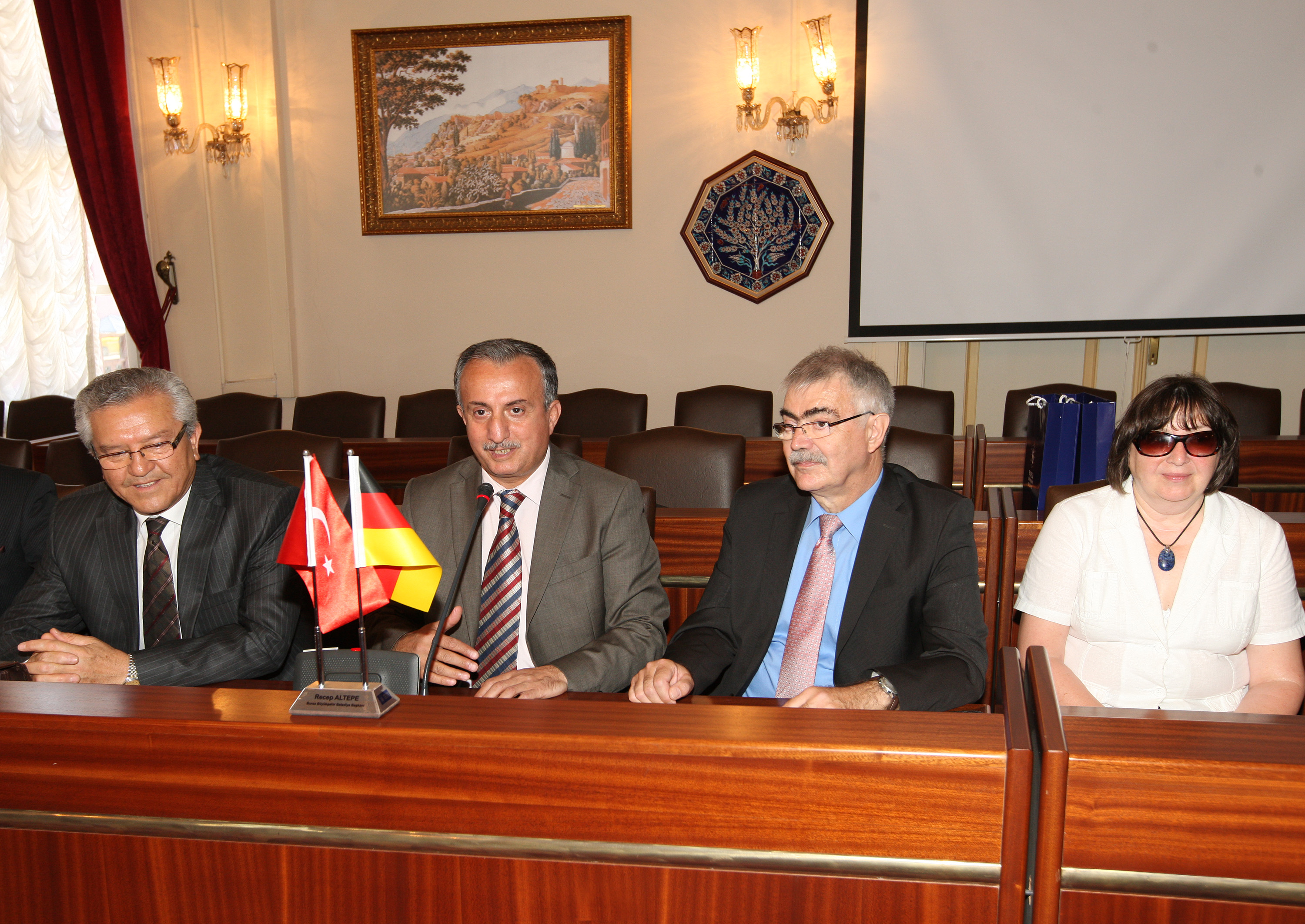Büyükşehir Belediyesi Başkanvekili Abdullah Karadağ, Tophane Endüstri Meslek Lisesi Müdürü İsmail Başaran’ın da hazır bulunduğu ziyarette, konuklarını tarihi meclis salonunda ağırladı. Konuklarına Bursa’nın ekonomik, sosyal, doğal ve kültürel yapısı hakkında bilgiler veren Başkanvekili Karadağ, Türkiye ile Almanya arasındaki ilişkilerin tarihten bu yana olumlu şekilde süre geldiğini söyledi. Osmanlı döneminde Almanya ile savaşta ve barışta kader birliği yapıldığını hatırlatan Karadağ, “Sağlam temeller üzerine atılan bu ilişkiler, günümüzde de gerek belediyeler gerekse okullar arasındaki kardeşlik ilişkileri ile devam ediyoruz. Karşılıklı bu tür ziyaretlerle ilişkilerin sağlam bir zeminde geleceğe taşınacağına inanıyorum. Türkiye’deki birçok vatandaşımızın Almanya’da ya akrabası ya bir komşusu var. Benim de kardeşlerim ve yeğenlerim Almanya’da yaşıyor. Biz sizleri daha çok Bursa’da görmek istiyoruz” diye konuştu.
