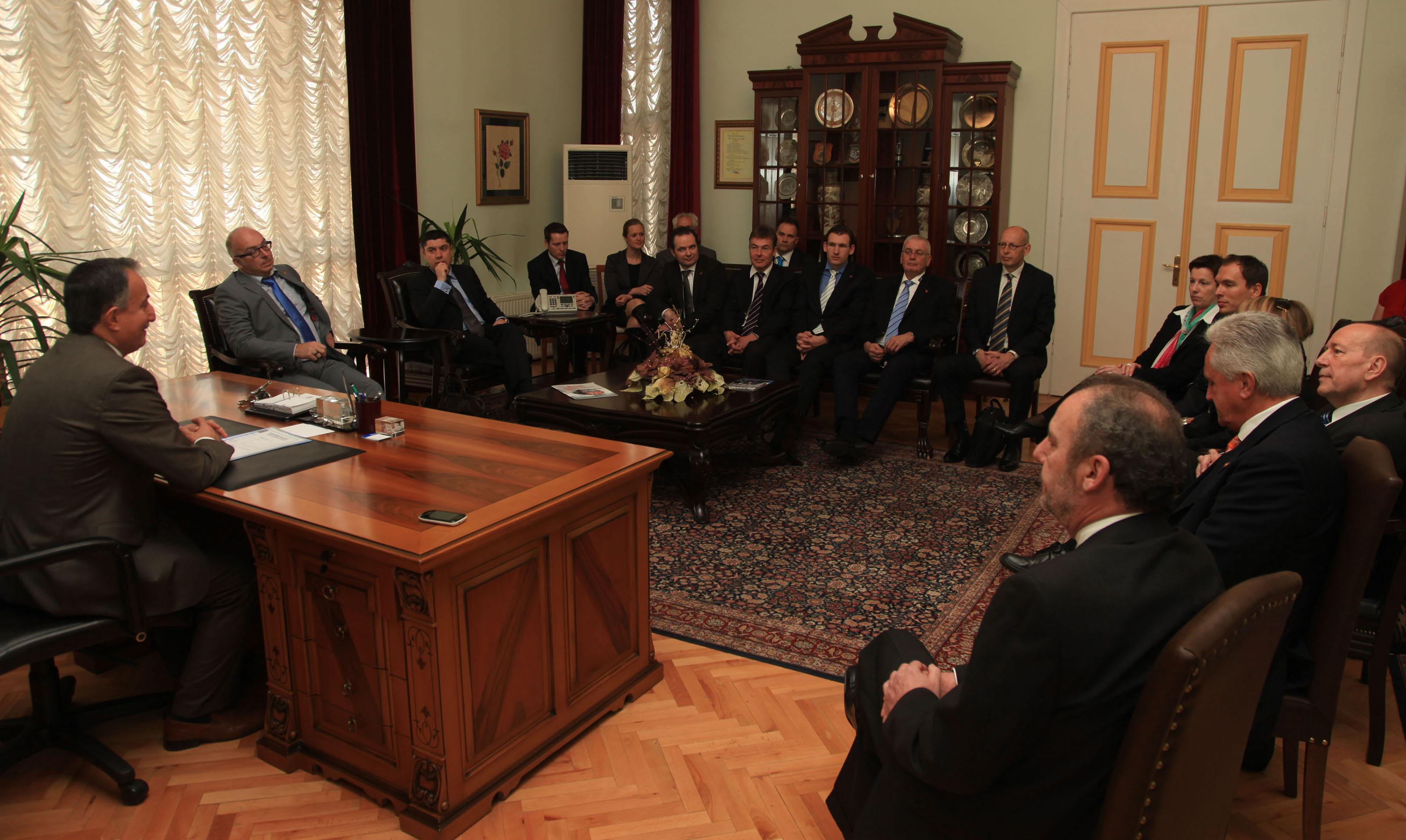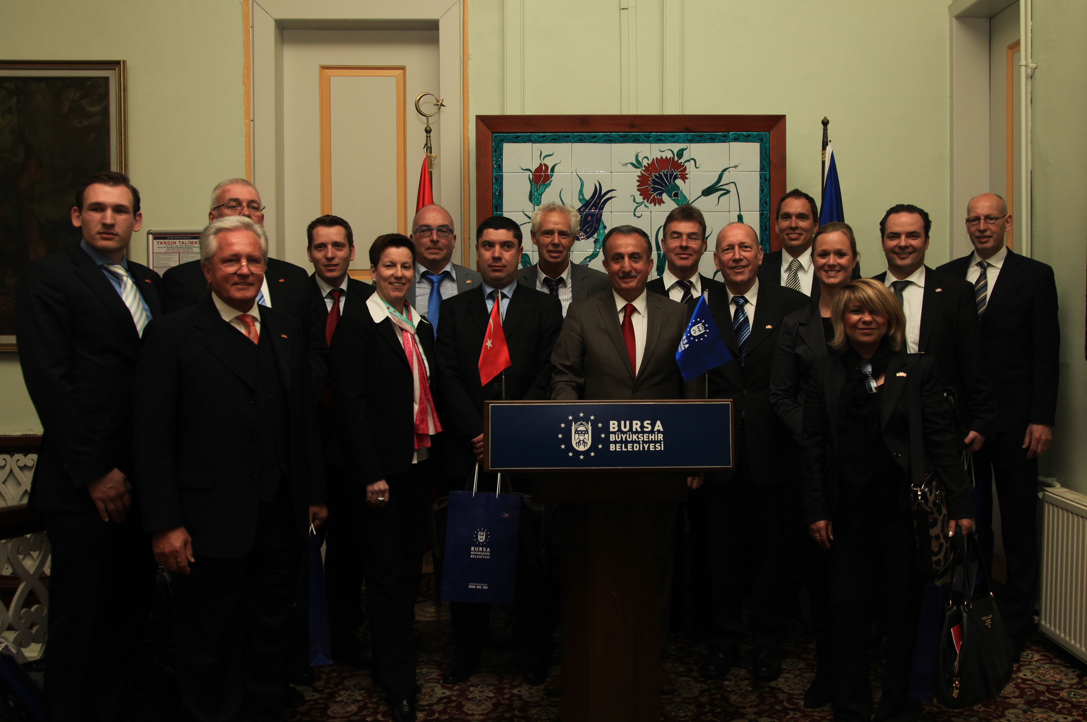 - BURSA BÜYÜKŞEHİR BELEDİYESİ BAŞKANVEKİLİ ABDULLAH KARADAĞ’I ZİYARET EDEN ALMANYA´NIN ORTA AŞAĞI REN BÖLGESİ TİCARET VE SANAYİ ODASI İLE HOLLANDA TİCARET VE SANAYİ ODASI´NDAN GELEN İŞADAMLARI, BURSA İLE İŞBİRLİĞİ İMKANLARINI ARAŞTIRIYOR.