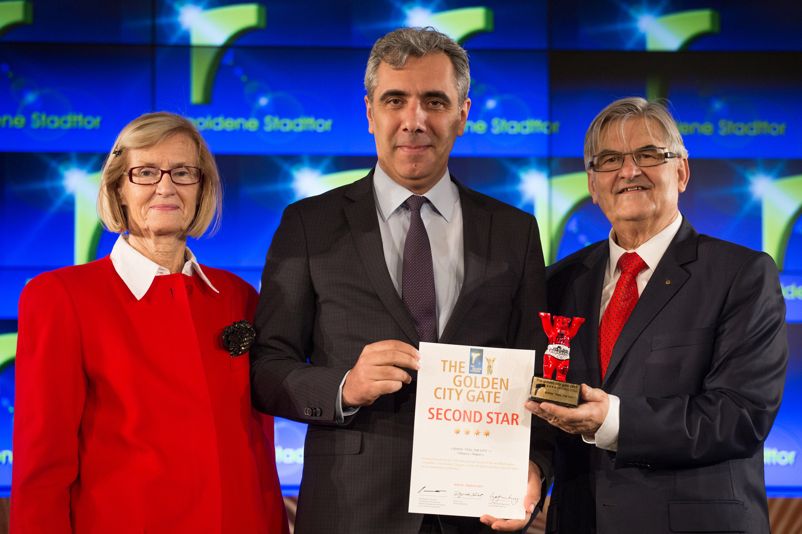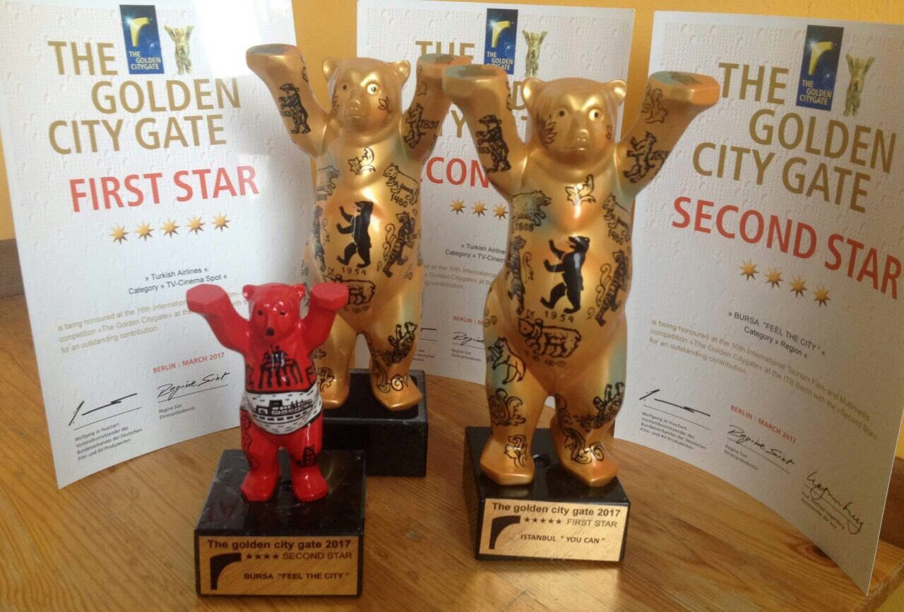 Bursa’nın ulusal ve uluslararası alanda tanıtımı hedefiyle Büyükşehir Belediyesi Kültür ve Turizm Dairesi Başkanlığı tarafından hazırlanan ‘Bursa, Feel The City - Bursa, Şehri Hisset’ adlı filme Almanya’dan ödül geldi. Bursa’nın turizmdeki payının arttırılmasına yönelik çalışmalar gerçekleştiren Büyükşehir Belediyesi Kültür ve Turizm Dairesi Başkanlığı, dünyanın en önemli fuar organizasyonlarından olan ITB BERLIN Uluslararası Turizm Fuarı’nın bir parçası olan ‘The Golden City Gate’ isimli turizm filmleri yarışmasında ‘Bursa, Feel The City’ adlı tanıtım filmi ile bölge kategorisinde ikincilik ödülüne layık görüldü.