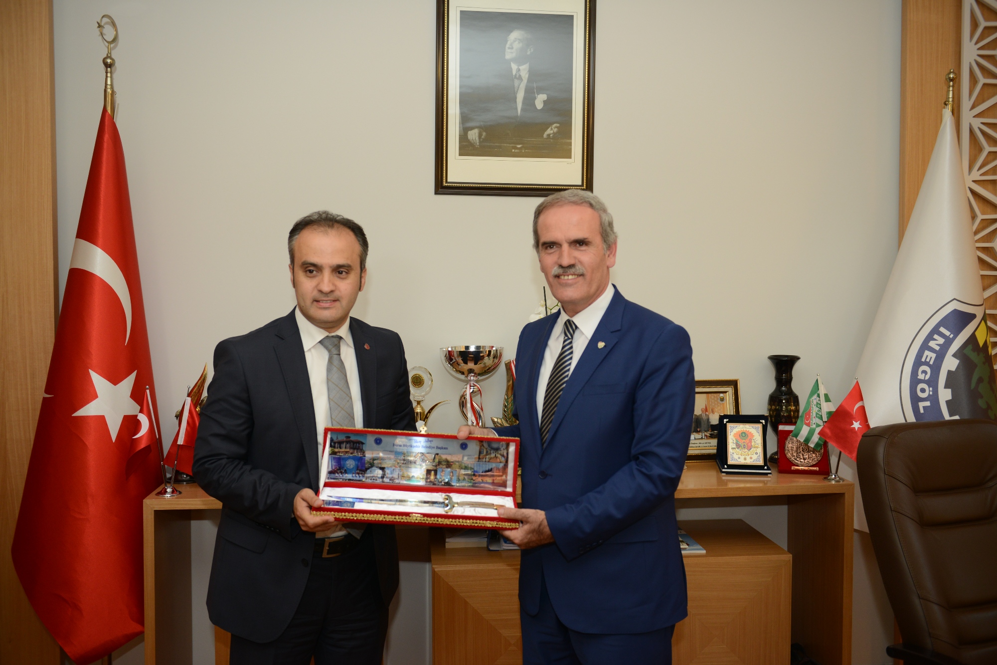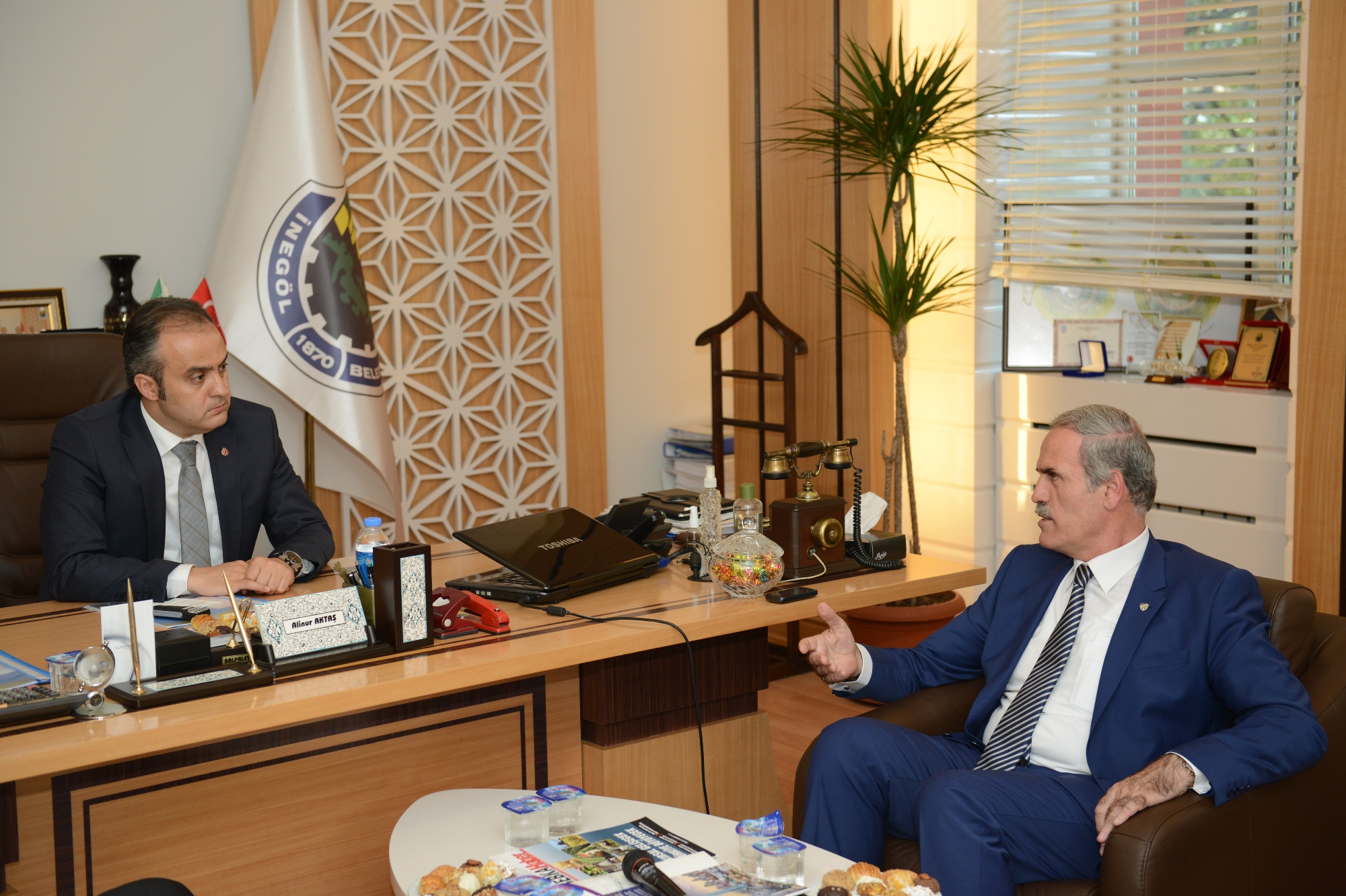 Başkan Altepe, daha sonra İnegöl Belediye Başkanı Alinur Aktaş’ın makamında ziyaret etti. Ziyaretin ardından her iki başkan da teknik ekipleriyle birlikte ilçede hayata geçirilecek projeleri değerlendirdi.