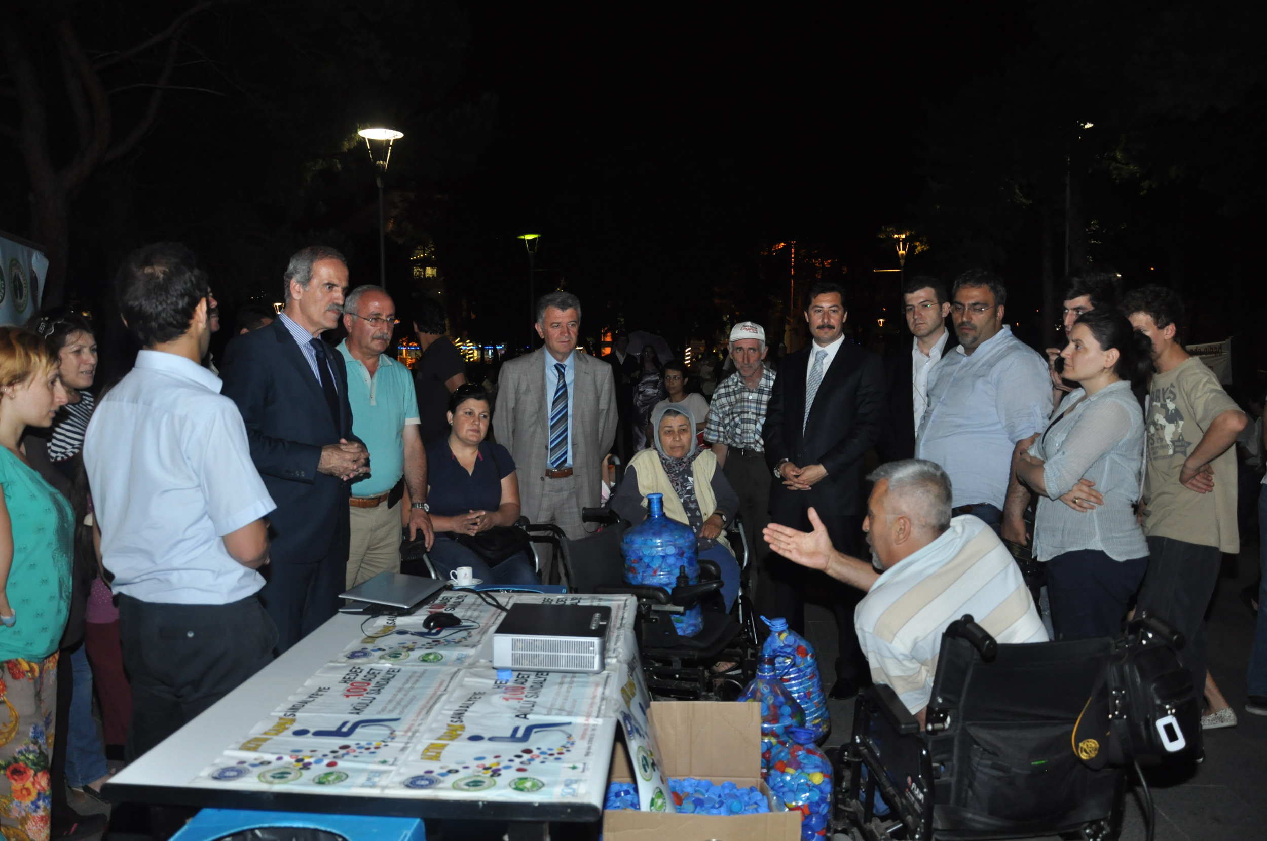 BURSA - Merinos Parkı´nda organize edilen Temaşa-i Ramazan programları kapsamında Bursa Kent Konseyi (BKK) Engelliler Meclisi tarafından açılan standı ziyaret eden Büyükşehir Belediye Başkanı Recep Altepe, BKK Başkanı Semih Pala´dan çalışmalar hakkında bilgi aldı.