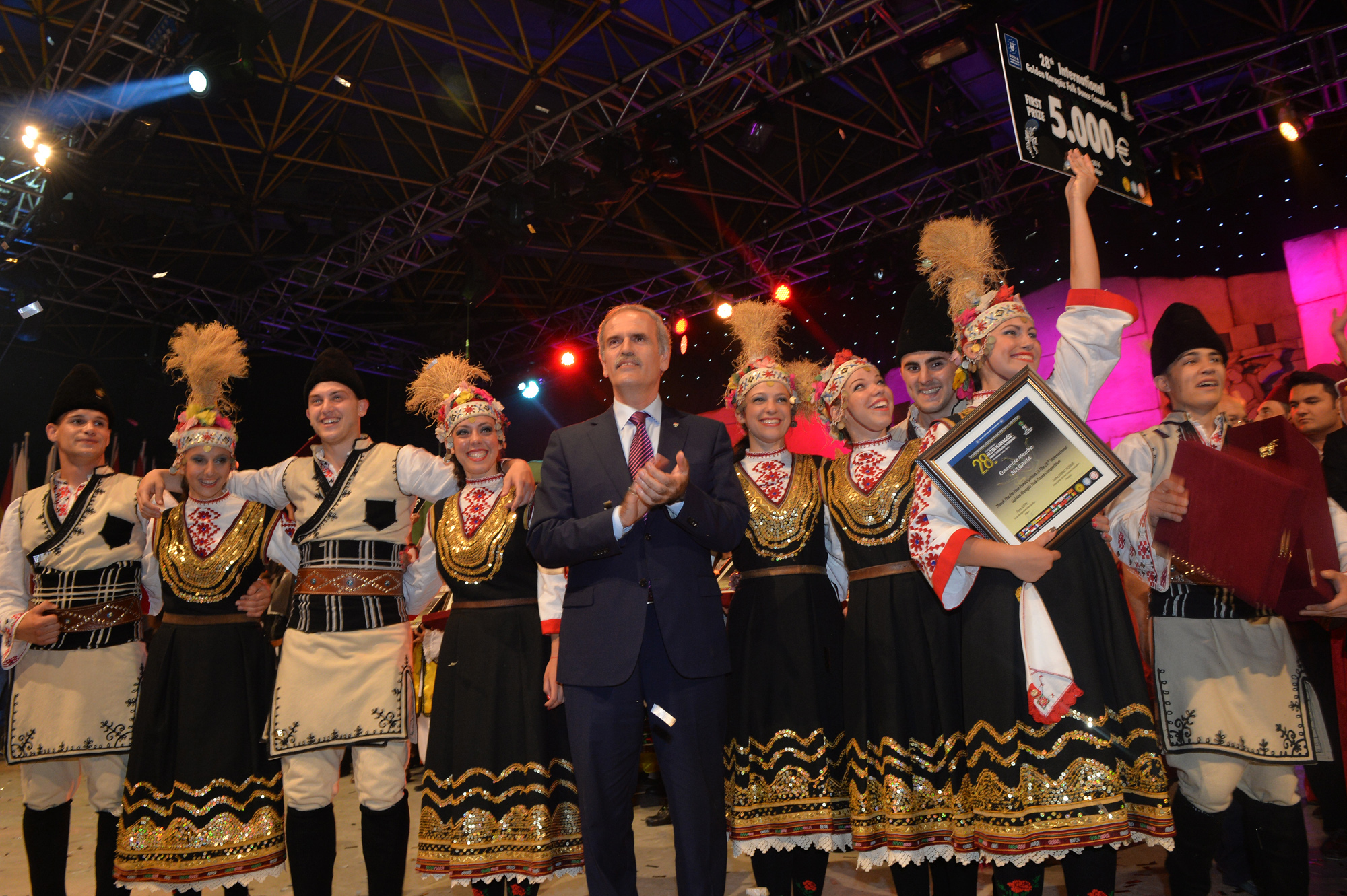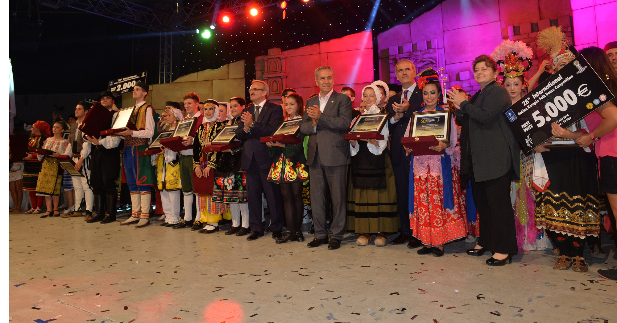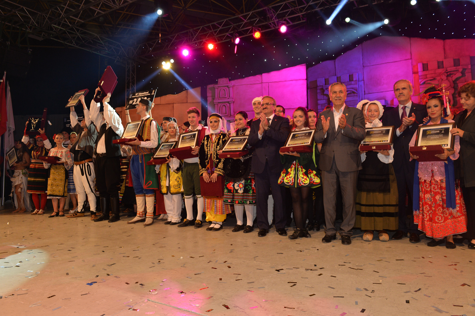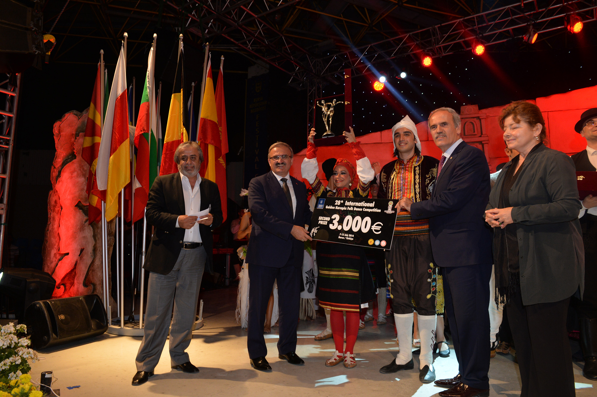 Bursa’ya 19 farklı ülkeden gelen halk dansları ekiplerini aynı sahnede buluşturan ‘28. Uluslararası Altın Karagöz Halk Dansları Yarışması’, tüm dünyaya dostluk, barış sevgi ve kardeşlik mesajları gönderdi. Finalde 5’er dakikalık gösterilerini sergileyen gruplardan Bulgaristan ekibi birinci ve Sırbistan ekibi ikinci olurken; üçüncülüğü de Macaristan ekibi kazandı. Birincilik ödülünü, Bulgaristan ekibine Başbakan Yardımcısı Bülent Arınç takdim etti. Yarışmanın birincisi olan Bulgaristan ekibi ‘Altın Karagöz’ ile 5 bin Euro para ödülü, 2. olan Sırbistan ekibi ‘Gümüş Karagöz’ ile 3 bin Euro para ödülü ve Macaristan ekibi de üçüncülük ödülü olan ‘Bronz Karagöz’ ile 2 bin Euro para ödülü almanın sevincini yaşadı. Yarışmada 2. olan Sırbistan ekibine ödülünü Bursa Valisi Münir Karaloğlu, üçüncü olan Macaristan ekibine de ödülünü Büyükşehir Belediye Başkanı Recep Altepe verdi.