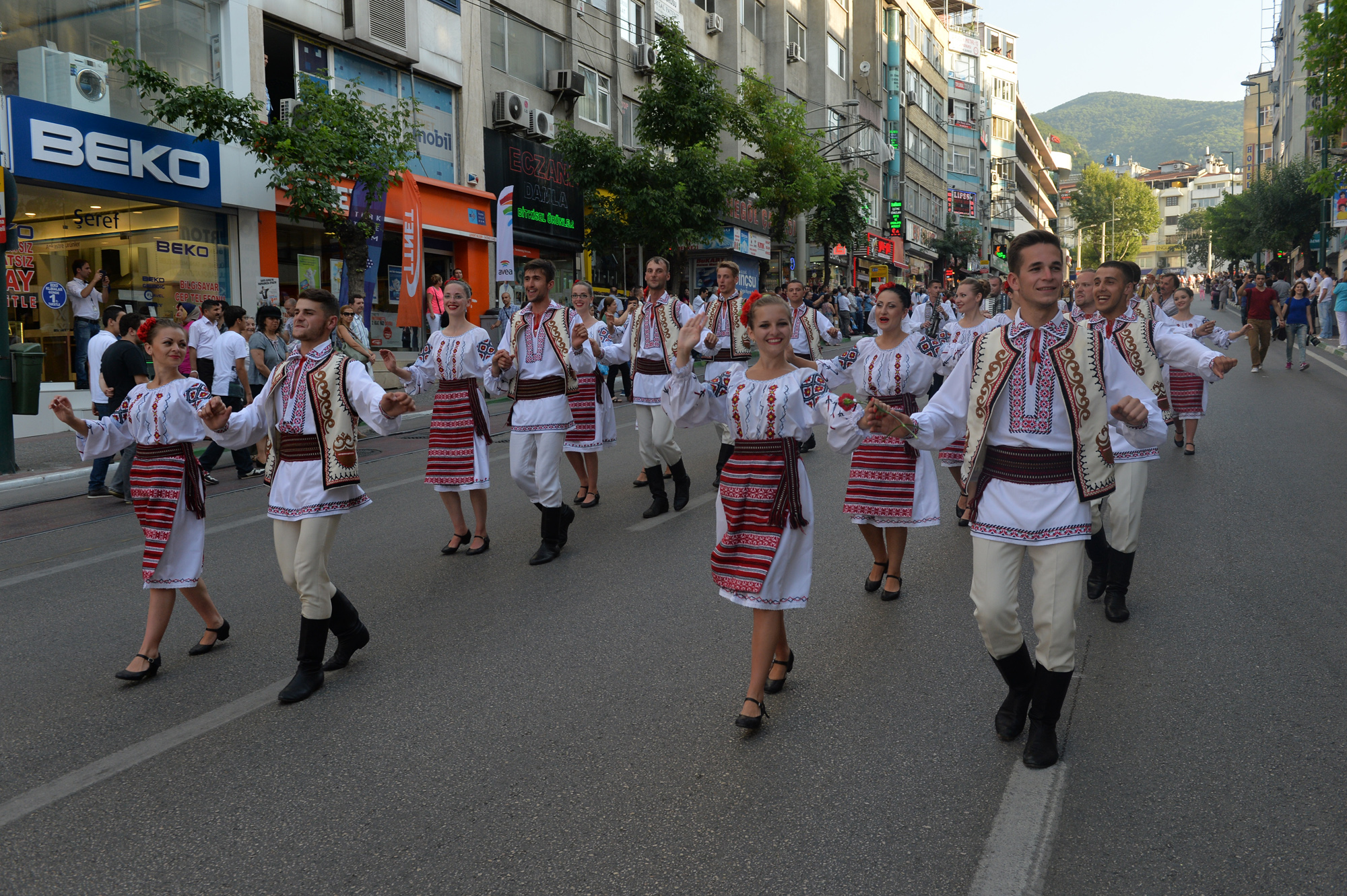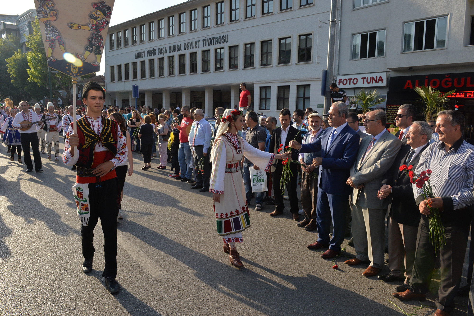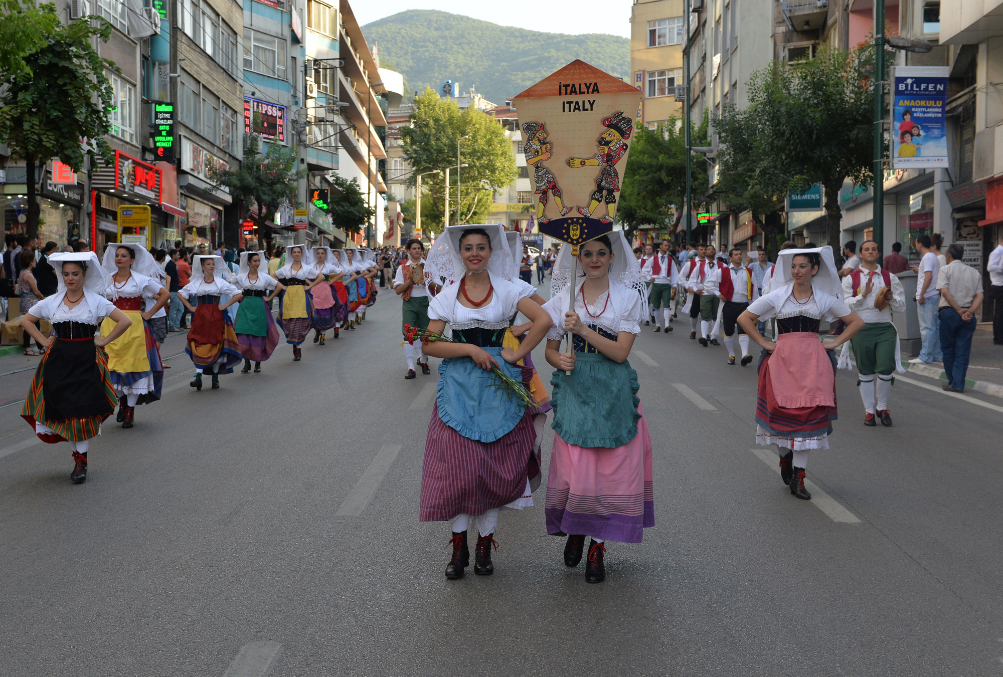 Başkan Altepe daha sonra Büyükşehir Belediyesi Kültür Sanat Danışmanı Ahmet Erdönmez ve Büyükşehir Belediyesi Genel Sekreteri Seyfettin Avşar ile birlikte güvercin uçurarak, halk dansları yarışmasının da startını verdi. Vatandaşlara karanfil dağıtan Başkan Altepe, halk dansları ekiplerinin kortej gösterilerini de keyifle izledi. Heykel’den Cumhuriyet Caddesi’ne geçen halk dansları ekipleri, Altıparmak Caddesi’nden Kültürpark’a kadar yürüdü. Vatandaşların büyük ilgi gösterdiği dansçılar, konfetiler altında yürürken, yöresel danslarından örnekler de sergiledi. Türkiye’nin yanı sıra ‘28. Altın Karagöz Halk Dansları Yarışması’na katılan Arnavutluk, Azerbaycan, Belçika, Bosna Hersek, Bulgaristan, Çin, Endonezya, Fransa, İrlanda, İspanya, İtalya, KKTC, Karadağ, Kırgızistan, Özbekistan, Kazakistan, Macaristan, Makedonya, Moldova, Panama, Sırbistan ve Şili’den gelen ekipler, yarışma boyunca kentin farklı noktalarında yöresel danslarını sahneleyecek.
