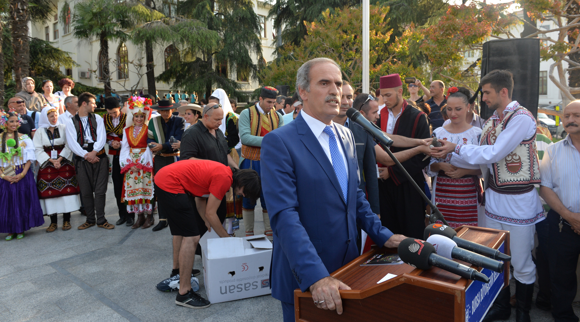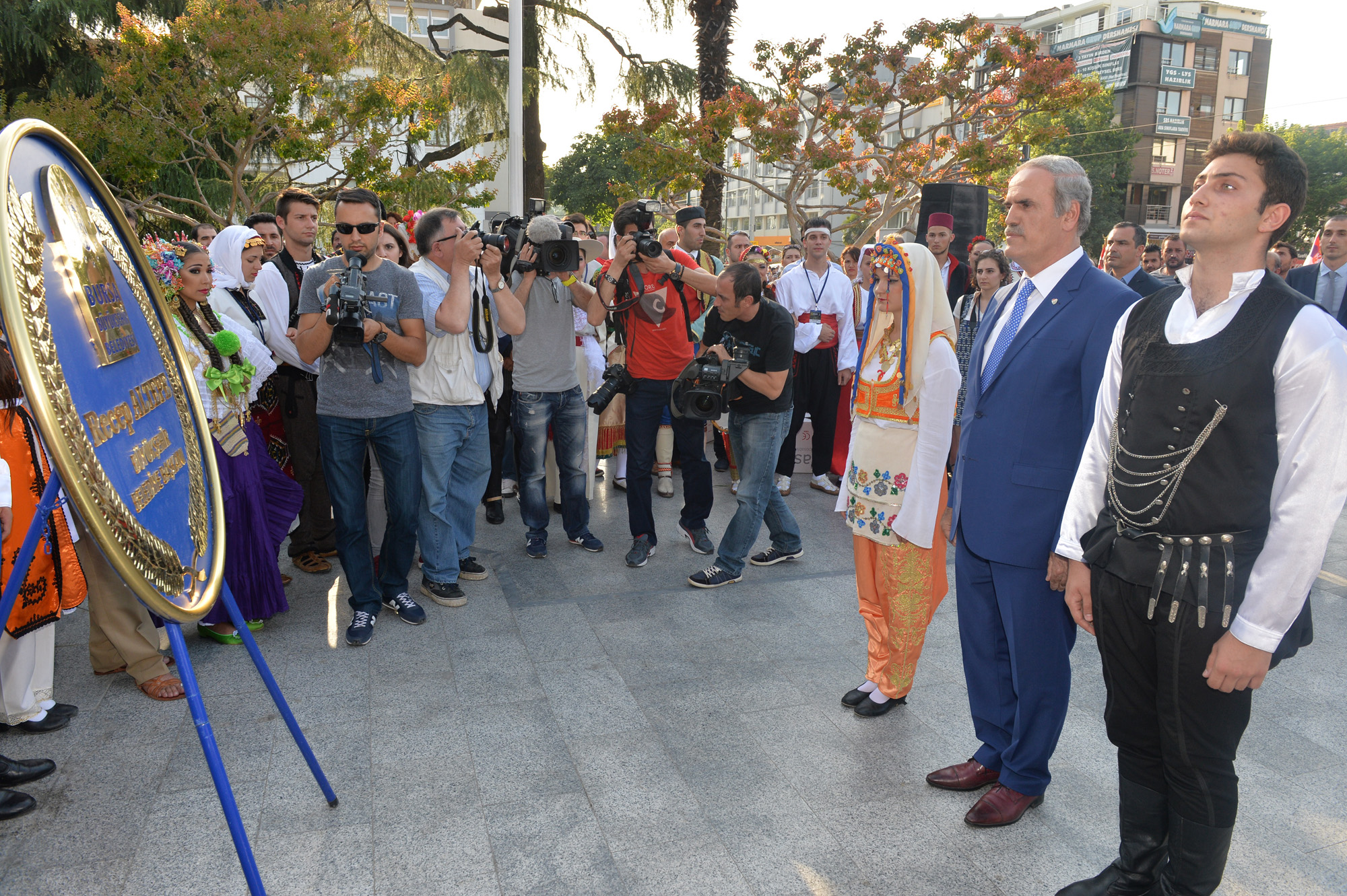 Bursa’da 6 gün boyunca eğlenceli anların yaşanacağı kentte, barış ve dostluk rüzgarları estirecek olan ‘28. Uluslararası Bursa Altın Karagöz Halk Dansları Yarışması’, bu yıl 23 farklı ülkeden gelen halk dansları ekiplerini ağırlıyor. Dansçılar, Heykel Atatürk Anıtı önündeki törende, güvercin uçurarak Bursa’dan tüm dünyaya barış, birlik ve beraberlik mesajları gönderdi. Törende, Bursa Mehter Takımı ile Büyükşehir Belediyesi Bandosu konser verirken, kılıç kalkan ekibinin gösterileri de ilgiyle izlendi.