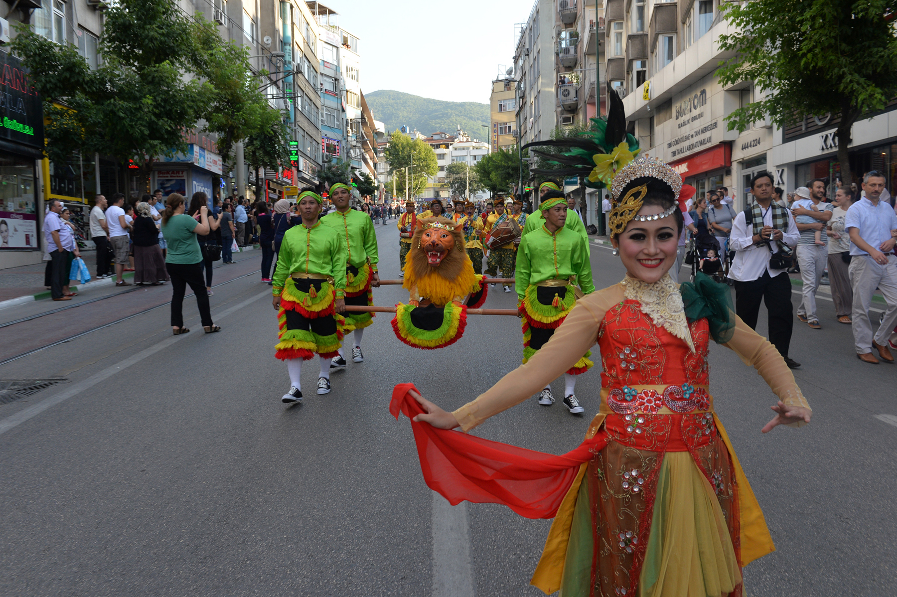 BURSA – Bursa Büyükşehir Belediyesi tarafından bu yıl 28. kez gerçekleştirilen ‘Uluslararası Altın Karagöz Halk Dansları Yarışması’na 23 ülkeden katılan yaklaşık 650 dansçı ve müzisyen, kortejde rengarenk kostümleriyle görsel bir şölene imzasını attı.