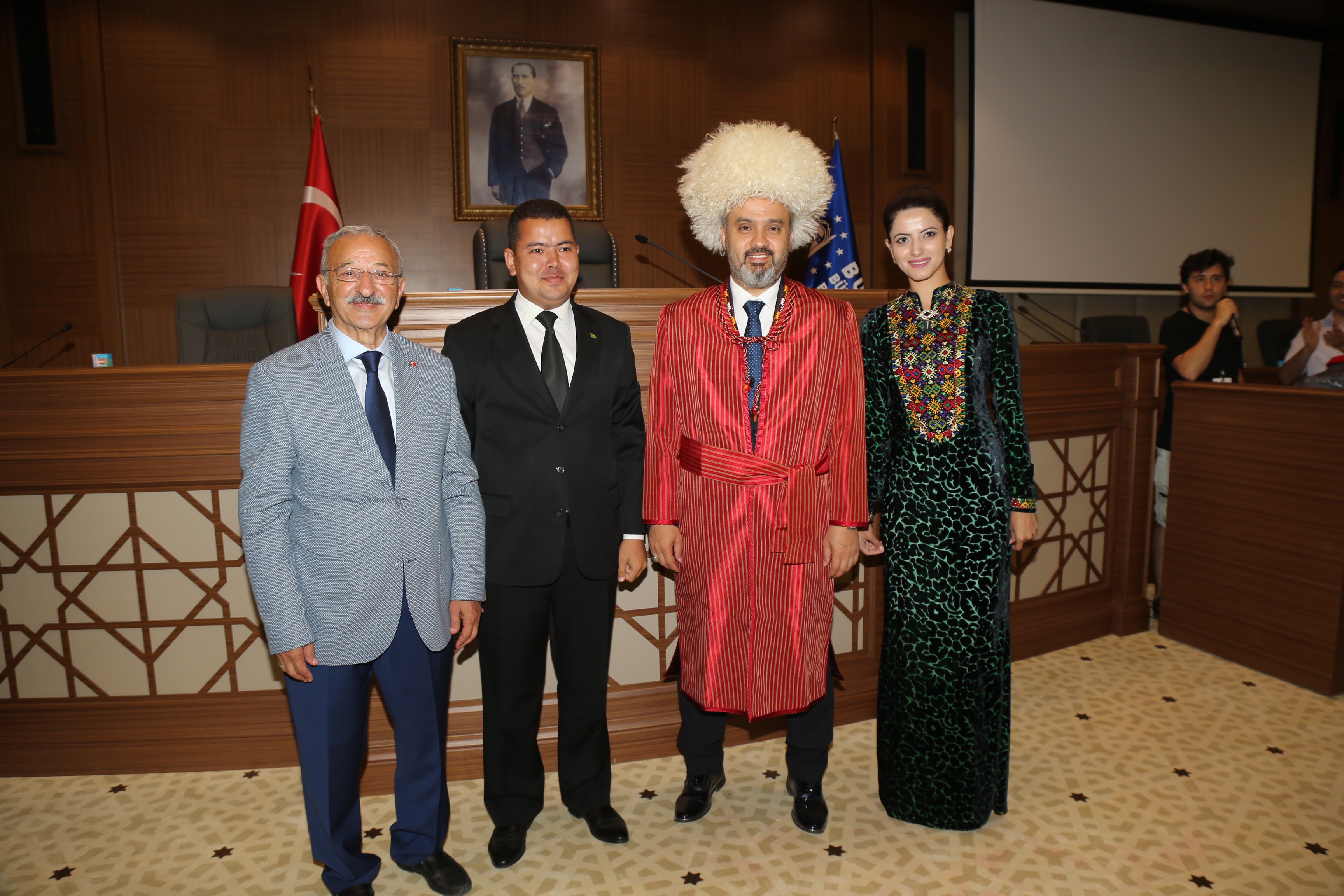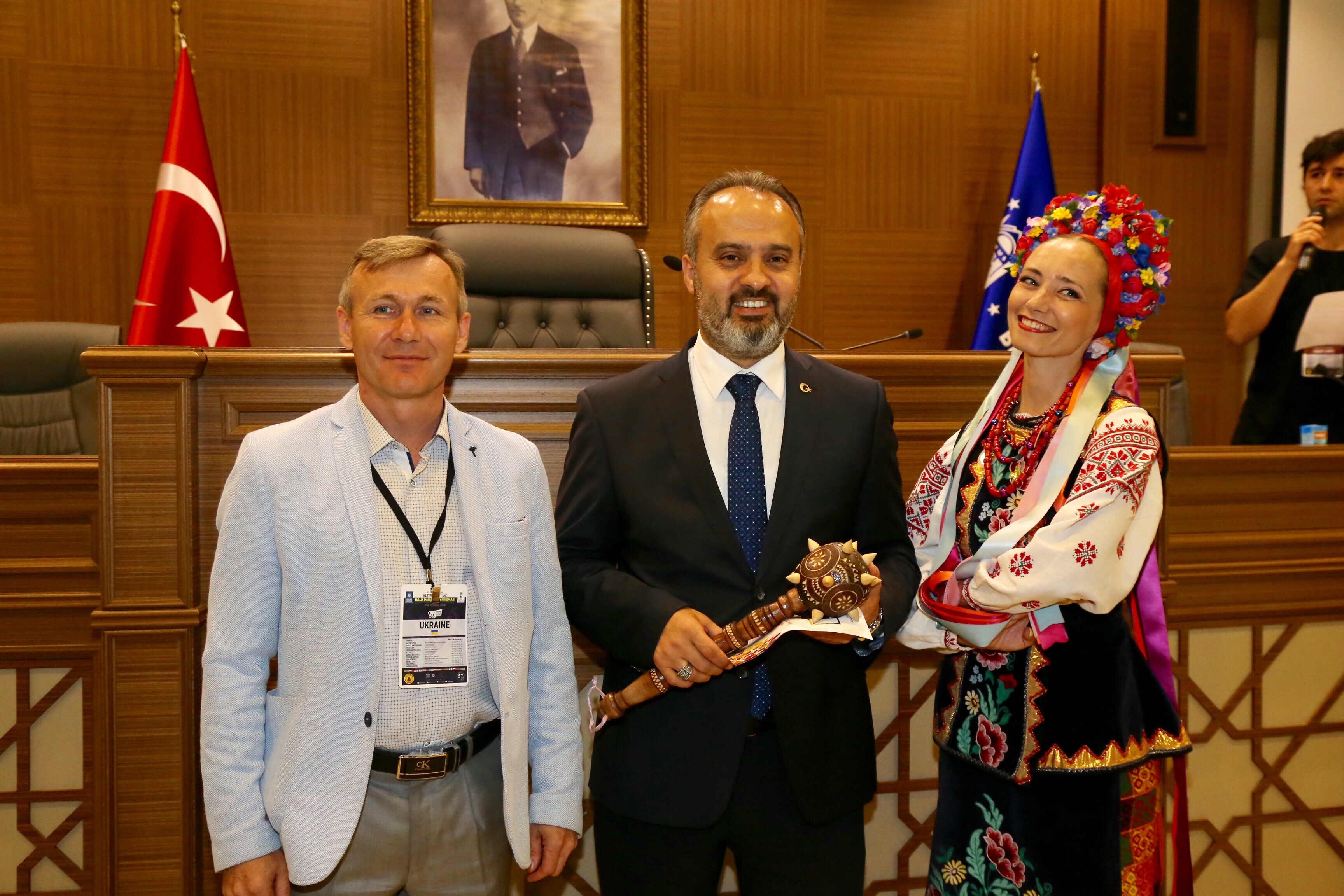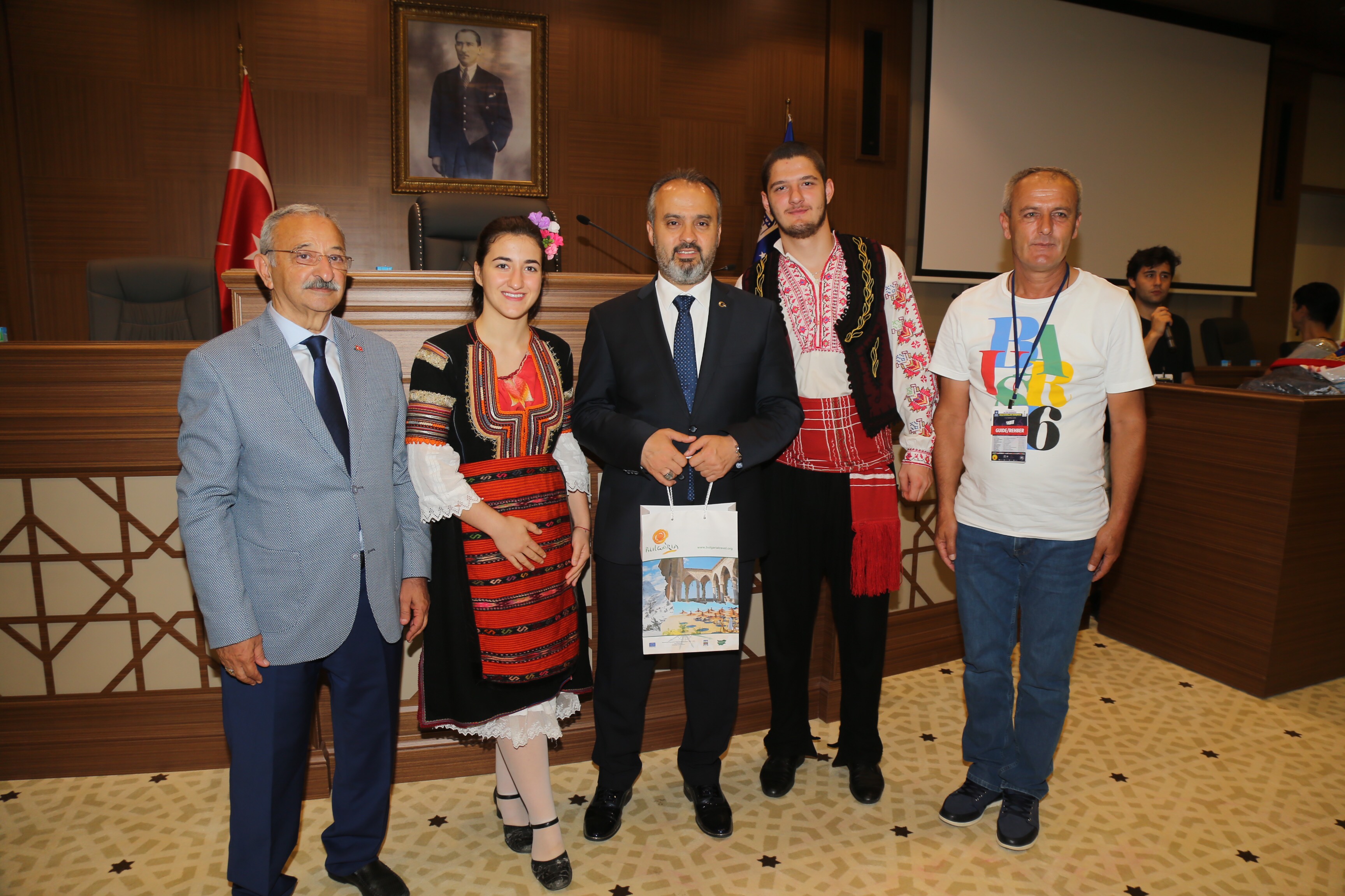 Büyükşehir Belediyesi adına Bursa Kültür Sanat ve Turizm Vakfı (BKSTV) tarafından düzenlenen ‘32. Uluslararası Altın Karagöz Halk Dansları Yarışması’na katılan dansçılar, final öncesinde, Bursa Büyükşehir Belediye Başkanı Alinur Aktaş’ı ziyaret etti. Başkan Aktaş, Büyükşehir Belediyesi Meclis Salonu’nda bir araya geldiği dansçılarla sohbet etti ve Bursa’yı tanıttı.