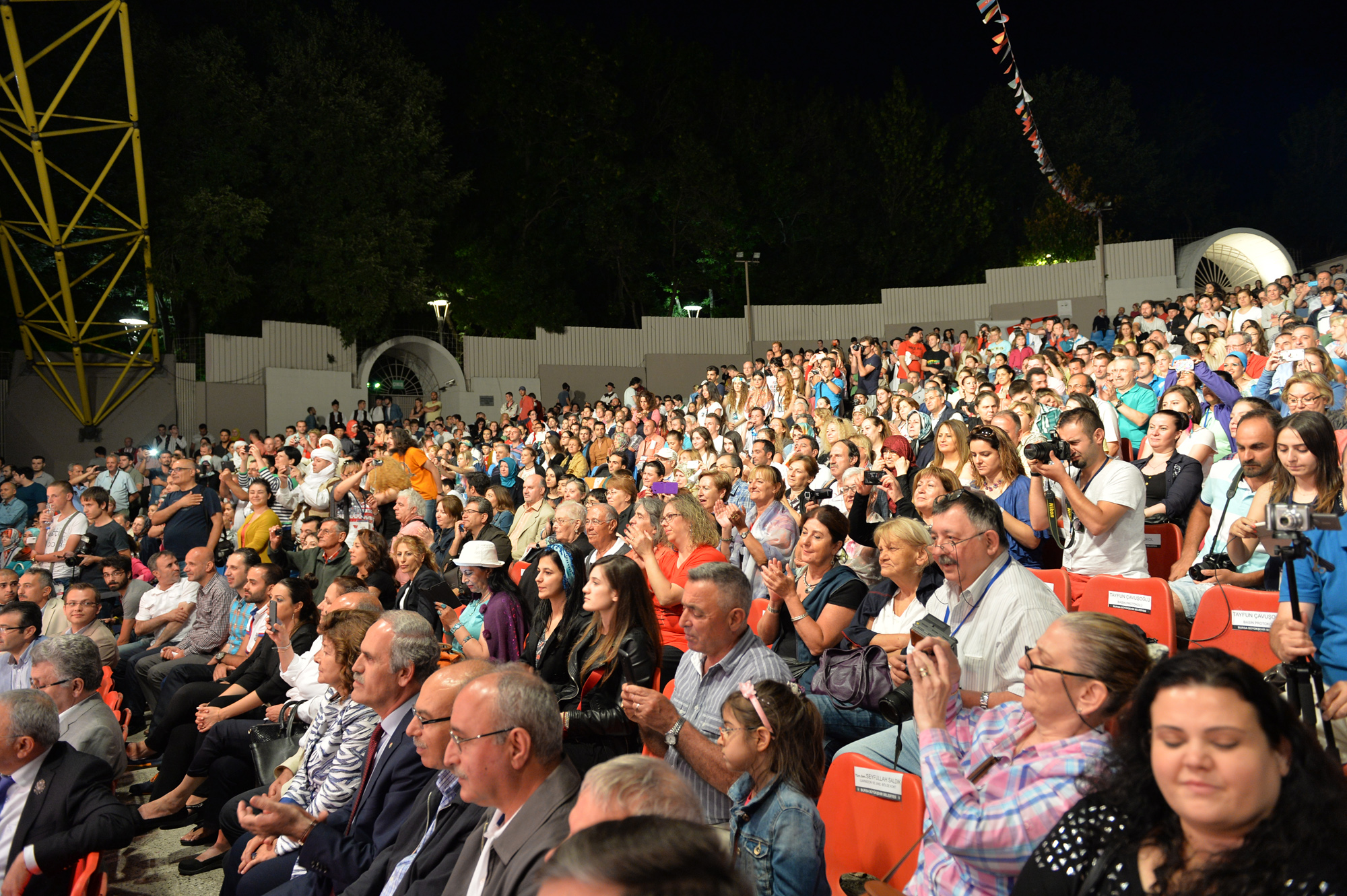 Protokol üyeleri ve vatandaşlar, tüm halk dansları ekiplerinin sahne performanslarını yoğun ilgiyle izledi.