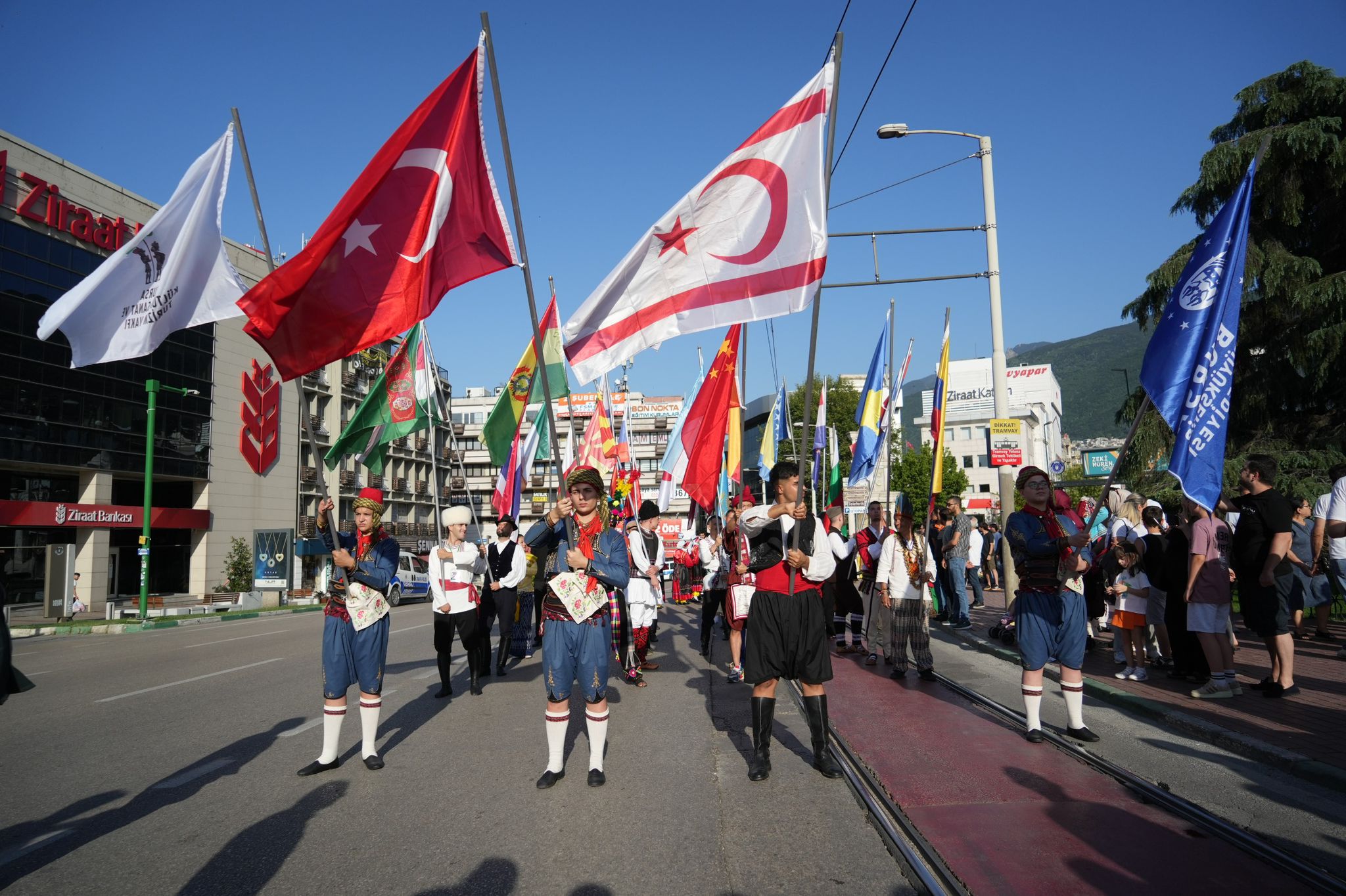 Büyükşehir Belediyesi Genel Sekreter Yardımcısı Mehmet Yıldız, burada yaptığı konuşmasında 36. Altın Karagöz Halk Dansları Yarışması’nın geleneksel kültürel değerleri çağdaş normlarda yeniden gündeme getiren, farklı ulusları tatlı bir rekabetle kaynaştıran, dünyanın geleneksel kültürel değerlerini Bursa’da buluşturan, ülkemizin alanındaki tek yarışması olduğunu söyledi. Barışı, kardeşliği ve bir arada olmayı sanatın ve dansın evrensel diliyle kutladıklarını belirten Mehmet Yıldız, “Altın Karagöz, yalnızca bir yarışma değil, aynı zamanda kültürlerin buluştuğu, dostluğun pekiştiği bir etkinliktir. Dansın adımlarında, müziğin notalarında, farklı kültürlerin, dillerin ve geleneklerin buluştuğunu görüyoruz. Burada her bir adım, geçmişin mirasıyla geleceğe uzanan bir köprüdür. Yarışmaya katılan ekiplerimiz, 17 ilçemizde gösteri yapacak ve festival coşkusu tüm Bursa’yı saracak. Bugün, dünya halklarının kardeşlik bağlarını güçlendiren bu önemli etkinliğin kortej yürüyüşünü gerçekleştirirken, bizlere bu güzel anları yaşatan tüm sanatçılarımıza, emeği geçen herkese teşekkür ediyorum. Sanatın, dansın ve kültürün birleştirici gücüne olan inancımızla, birlikte daha güzel yarınlara yürüyeceğimizin mesajını buradan tüm dünyaya haykırıyoruz. Barışı, kardeşliği ve dayanışmayı sanatın evrensel diliyle tüm dünyaya haykırmaya devam edeceğiz. Hep birlikte, daha güçlü, daha birleştirici bir gelecek inşa edeceğiz” dedi.