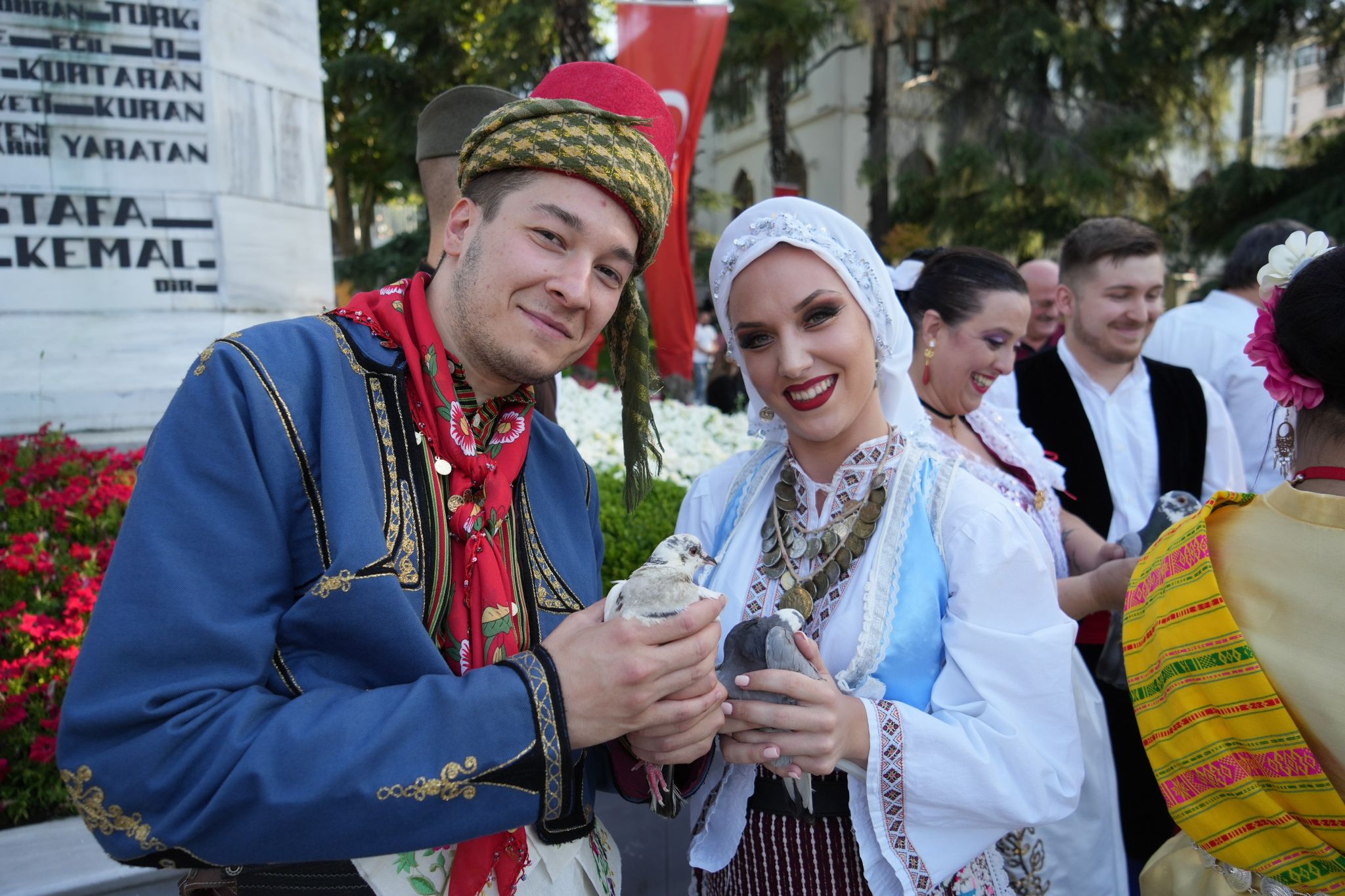Konuşmaların ardından Genel Sekreter Yardımcısı Mehmet Yıldız ve beraberindekiler tarafından gökyüzüne güvercin uçurulup dünyaya barış mesajı verildi. Atatürk Heykeli’nden başlayan kortej yürüyüşü renkli görüntülere sahne olurken, Bursalılar da misafir dansçılara büyük ilgi gösterdi. Kortej yürüyüşünün ardından program, Kültürpark Açıkhava Tiyatrosu’nda devam etti. Dans gösterisiyle başlayan programda, 23 farklı ülkeden gelen tüm dansçılar sahneye çağrılarak Bursalıları selamladı.