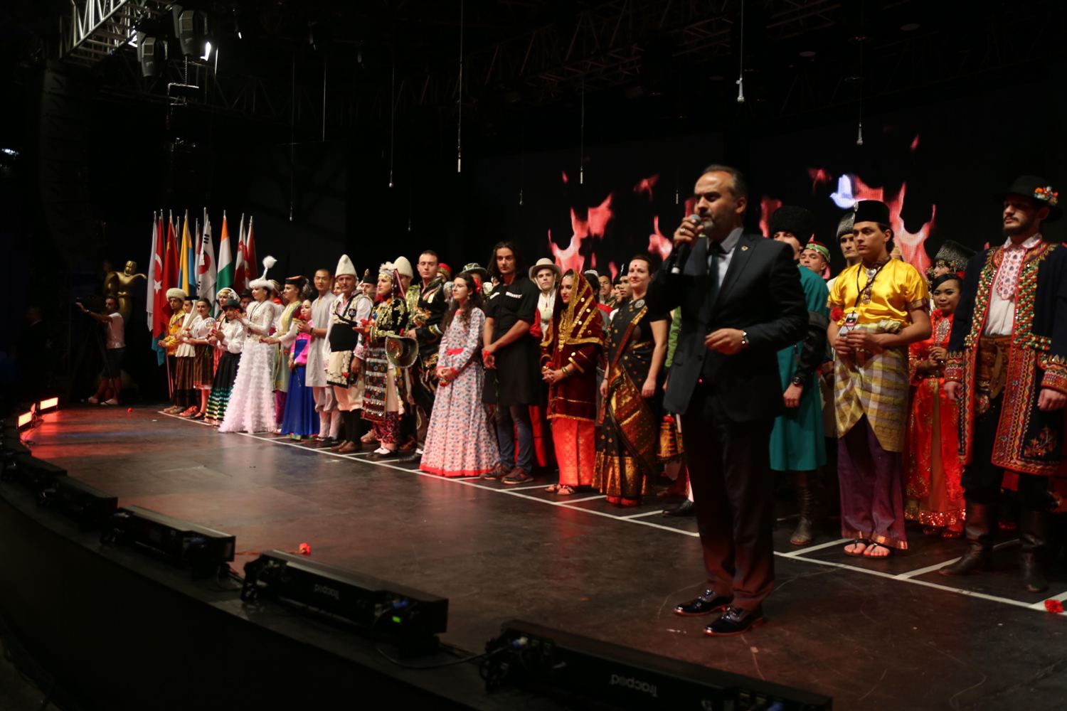 BURSA - ‘32. Uluslararası Altın Karagöz Halk Dansları Yarışması’ farklı kültürlerin harmanladığı Bursa’da coşkulu anlara sahne olurken, etkinlikten tüm dünyaya kardeşlik ve dostluk mesajları gönderildi.