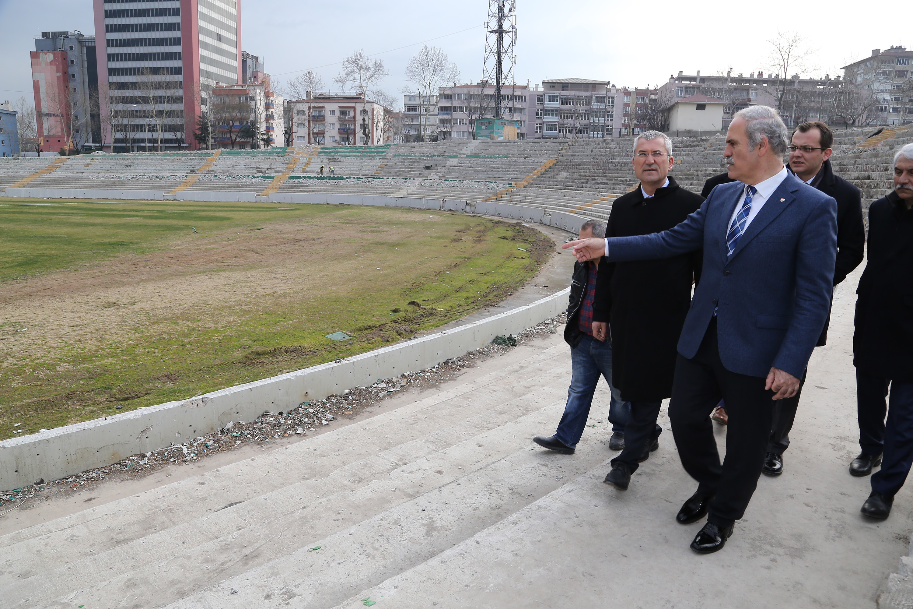 - ESKİ STADYUMUN BULUNDUĞU ALANIN KAPALI TRİBÜN VE ZEMİN ALTI TRİBÜNLER KORUNARAK KENTİN EN ÖNEMLİ MEYDANLARINDAN BİRİ OLACAĞINI KAYDEDEN BAŞKAN ALTEPE, KISA SÜREDE TAMAMLANACAK ÇALIŞMALARLA BİRLİKTE ALANIN MİTİNGLERE, GÖSTERİ VE ETKİNLİKLERE AÇILACAĞINI SÖYLEDİ.