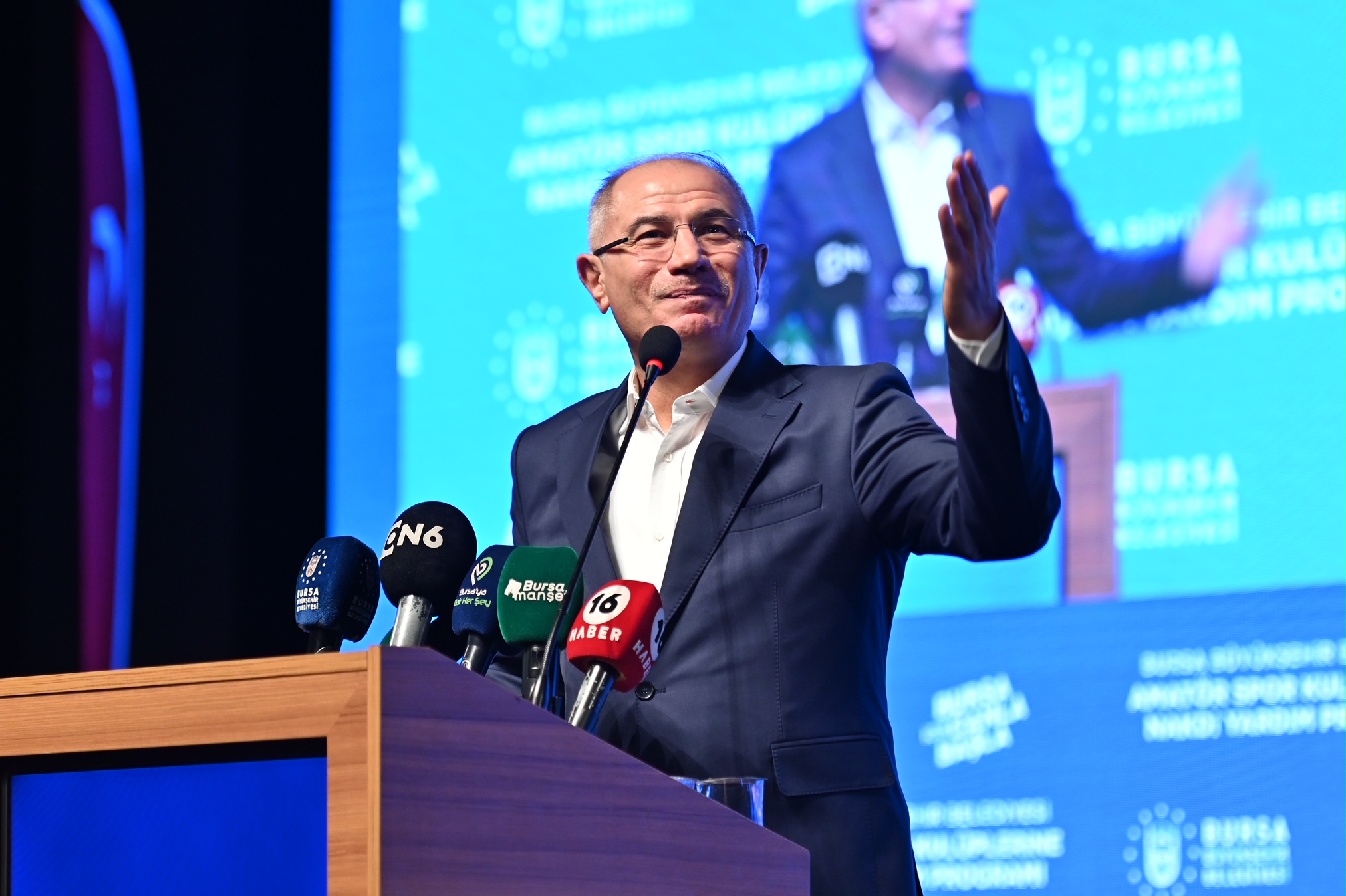 Bursa’nın sporda da marka kent olması için Büyükşehir Belediyesi olarak her türlü yatırımı yaptıklarını belirten Büyükşehir Belediye Başkanı Alinur Aktaş, bunun yanında amatör spor kulüplerini de her zaman desteklediklerini kaydetti. Spora yaptıkları destek ve yatırımların başarı olarak döneceğine inandığını ifade eden Başkan Aktaş, “Bütün yaptıklarımız gençlerimiz için, sporcularımız için. Gençlerimizden sadece şunu istiyoruz. Sizler ahlaklı, vatanına bağlı, annesini, babasını, atasını seven, sayan, toplumla barışık insanlar olun. Bursa’mıza dereceler gelsin, hangi branşta olduğu önemli değil. Bursa'nın olimpiyat derecesi var. Olimpiyat dereceli bir şehiriz. Hangi kulübe mensup olursak olalım, bizim bir tane özelimiz var o da Bursaspor'umuz. Engelli branşlar da dahil 42 branşta 520 kulübümüze seneye de inşallah desteklerimizi devam ettireceğiz. Hiç kimsenin hakkını yemeden, başarınıza göre, liglerinize göre 4,5 milyon lira para hesaplarınızda. Hiçbirinizi ayırmadık. Deprem bölgesinden gelen sporcu kardeşlerimizin de burada kamp yapmasını sağladık” diye konuştu.