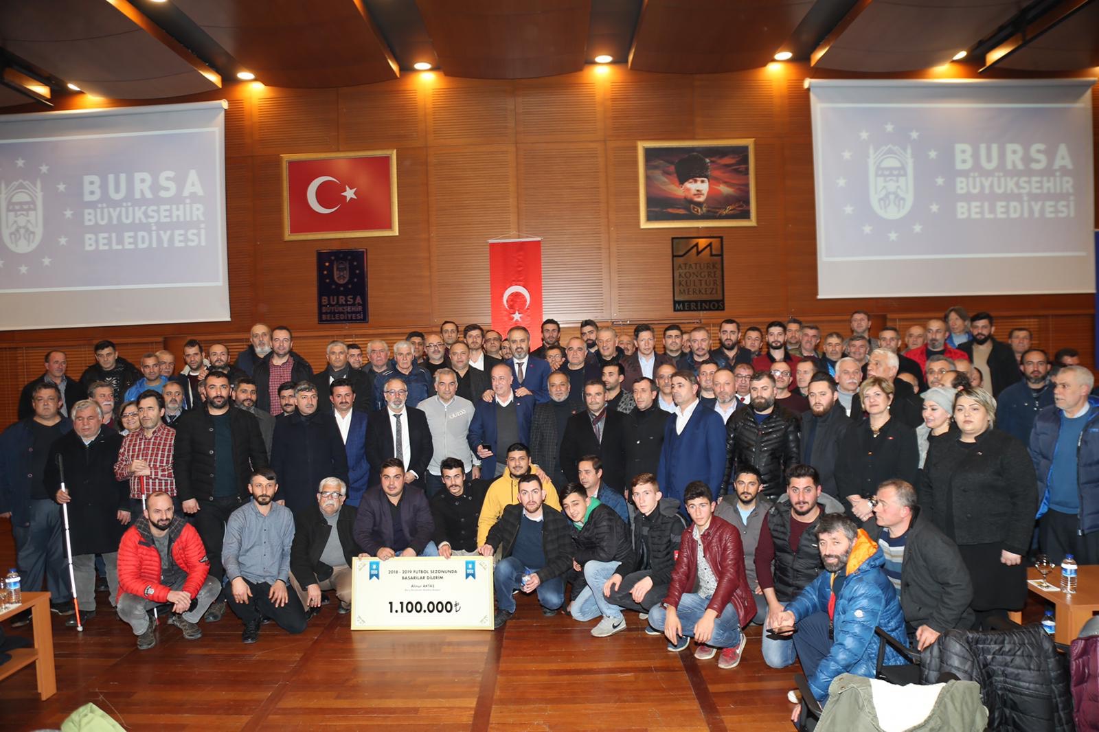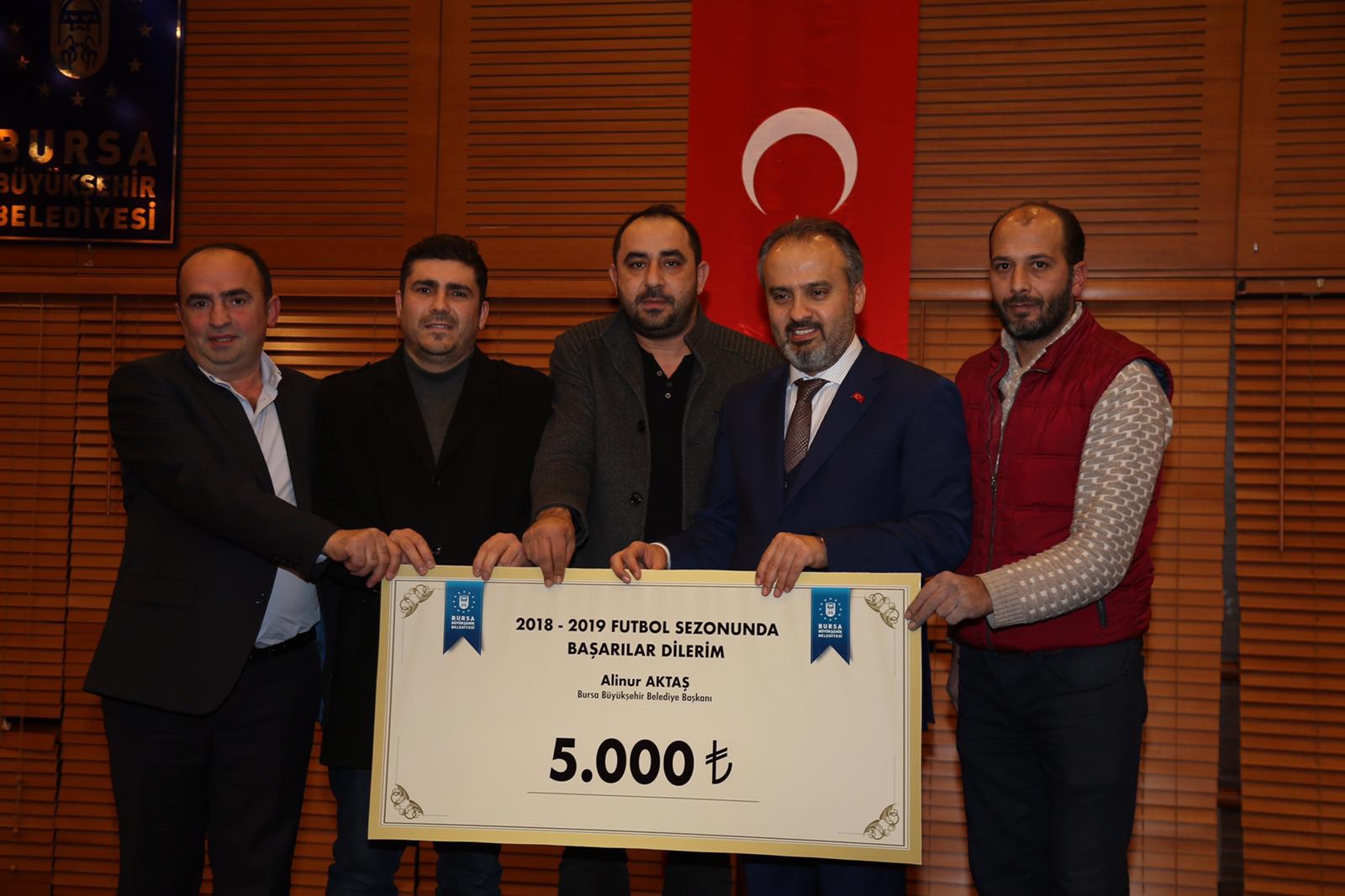 Bursa’da ulaşımdan çevreye, altyapıdan tarihi mirasa kadar her alanda kenti geleceğe taşıyacak projeleri hayata geçiren Büyükşehir Belediyesi, farklı mahallelerde ‘sporun tabana yayılmasında önemli görevler üstlenen’ amatör futbol kulüplerini desteklemeye devam ediyor. Amatör kulüplere saha kazandırılması ve malzeme desteği gibi konularda başrolü üstlenen Büyükşehir Belediyesi, son olarak 2. Amatör Küme’de mücadele eden 67 takım ile Kanalboyu Nilüferspor Bayan Futbol Takımı’na 5’er bin TL, diğer takımlara da 4’er bin TL nakdi yardımda bulundu. Amatör kulüplere verilen destekle ilgili olarak Merinos Atatürk Kongre Kültür Merkezi’nde (Merinos AKKM) düzenlenen törene, Büyükşehir Belediye Başkanı Alinur Aktaş da katıldı.