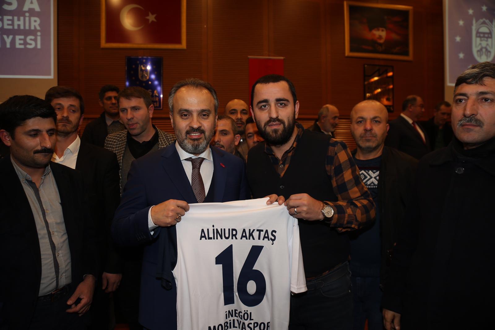 Büyükşehir Belediye Başkanı Alinur Aktaş, törende yaptığı konuşmada, Bursa’da sporu yaygınlaştırmak ve 7’den 70’e herkesin spor aktiviteleriyle ilgilenmesini sağlamak için yoğun emek sarf ettiklerini söyledi. Tesis sayılarını artırma çalışmalarının yanında mevcut tesislerin Türk sporunun gelişimine katkı sağlayacak şekilde işlevsellik kazandırılmasına gayret ettiklerini belirten Başkan Aktaş, “Örnek verecek olursak, okullarda hizmete aldığımız salonlarda sporu hayat felsefesi haline getirmek amacıyla çocuklarımızın erken yaşta sporla buluşmalarını sağlıyoruz. Yaz-kış spor okullarıyla yavrularımızı farklı branşlara yönlendiriyoruz. Böylece çocuklarımız boş zamanlarını değerlendirirken, aynı zamanda alternatif etkinliklerle tanışma fırsatını da yakalamış oluyor” dedi. Büyükşehir Belediyespor bünyesinde, Büyükşehir marifetiyle Bursa’ya kazandırılan kompleks, tesis ve spor salonlarında gençleri nitelikli mekanlarda spor yapma imkanına kavuşturduklarını söyleyen Başkan Aktaş, “Takımlarımızın ulusal ve uluslararası başarıları, sporu tabana yayma ve altyapıyı güçlendirme çalışmalarımızda doğru hamleler yaptığımızın işaretidir” diye konuştu. Sadece belirli spor dallarıyla ilgilenenlere değil ata sporları da dahil olmak üzere tüm dallarda faaliyet gösteren kulüpler ile sporculara da destek çıktıklarını ifade eden Başkan Aktaş, “Örneğin Keles Kocayayla’da Türk Dünyası Ata Sporları Şenliği’ni gerçekleştirdik. Hüdavendigar Kent Parkı’nda 50’ye yakın kurum ve kuruluşumuzun katılım ve desteği ile doğa sporları ve doğa turizmi günlerini düzenledik. Atatürk Stadyumu meydanında yine bir ata sporumuz olan yağlı güreş organizasyonuna imza attık. Hem amatör hem de profesyonel spor ve sporcuya verdiğimiz destekle Bursa’nın sporda da güçlü şehir haline gelmesine katkıda bulunuyoruz” şeklinde konuştu.