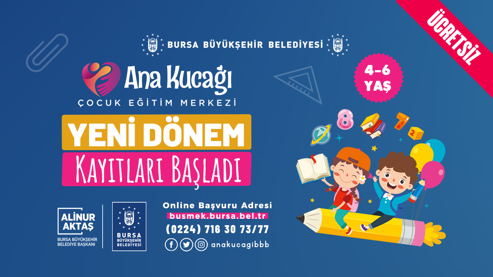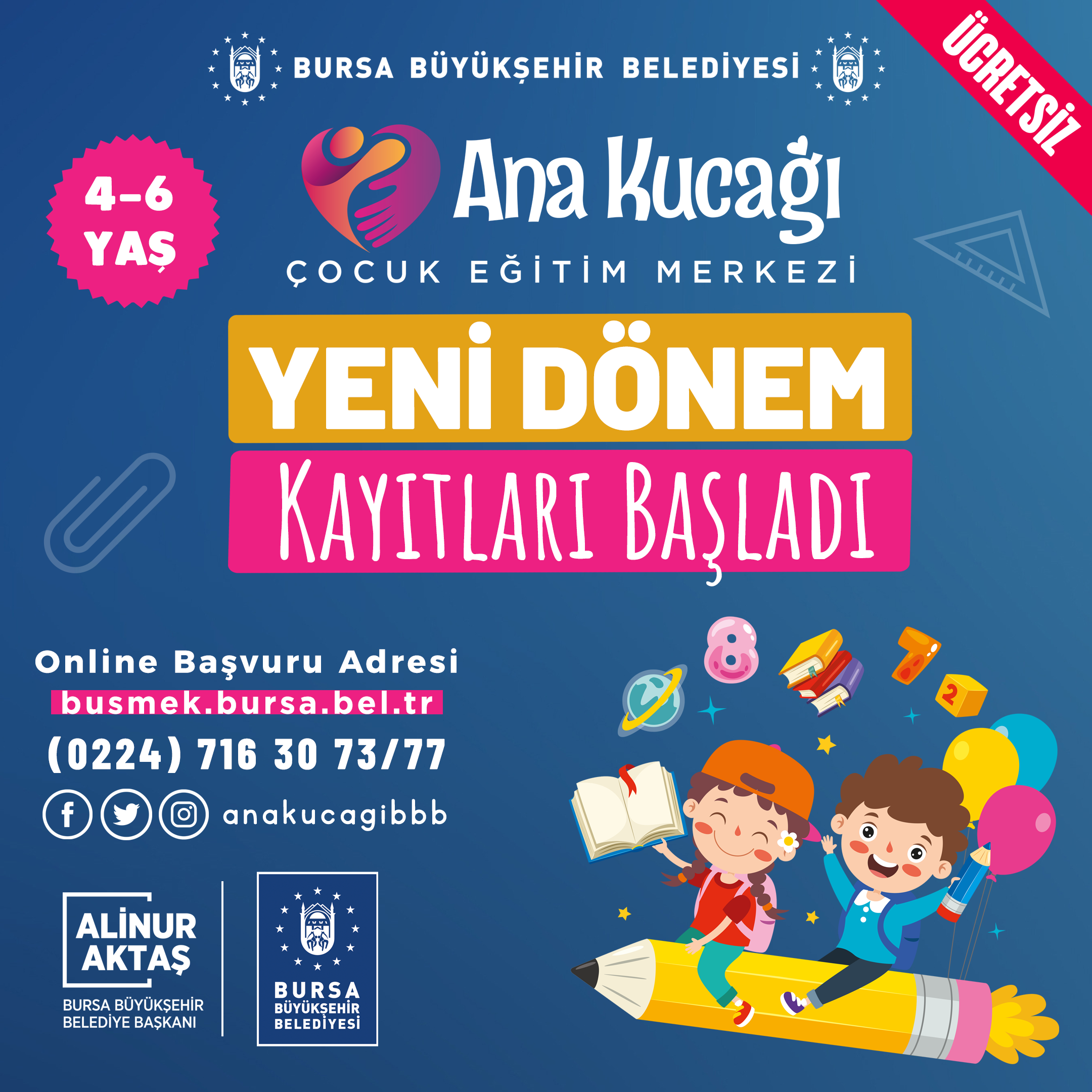 BURSA – Büyükşehir Belediyesi’nin en önemli sosyal sorumluluk projelerinden biri olan Ana Kucağı’nda 2022-2023 yeni dönem kayıtları başladı. Okul öncesi eğitim hizmeti alamayan çocuklara kaliteli ve ücretsiz eğitim imkanı sağlayan Ana Kucağı çocuk eğitim merkezleri, Bursa’yı sararak daha fazla çocuğa ulaşıyor.