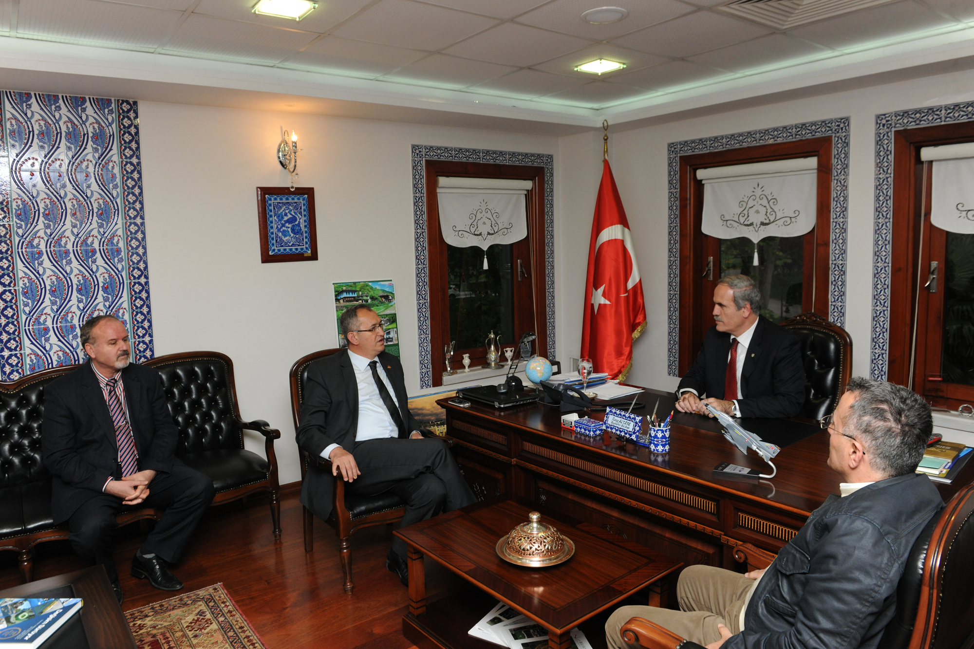 Büyükşehir Belediyesi’nin ev sahipliğinde 19 Nisan 2013 Cuma günü başlayacak ve 3 gün sürecek Anadolu Medya Buluşması’nı düzenleyen Türkiye Gazeteciler Federasyonu Genel Başkanı Atilla Sertel, Çağdaş Gazeteciler Derneği Bursa Şube Başkanı Yüksel Baysal ve Anadolu Spor Gazetecileri Derneği Başkanı İbrahim Erdoğan, Büyükşehir Belediye Başkanı Recep Altepe’yi ziyaret etti. Konuklarını Gönül Dostları Sofrası Sosyal Tesisleri’nde ağırlayan Başkan Altepe, Türkiye’nin her köşesinden 170’in üzerinde gazeteci ve meslek örgütünün katılacağı önemli bir toplantıya ev sahipliği yapmanın mutluluğunu yaşadıklarını söyledi. Anadolu medyasının kentlerin en önemli dinamikleri olduğunu ifade eden Başkan Altepe, “Medya kentlere değer katan en önemli unsur. Bursa’da bilgi alışverişi ve tecrübe paylaşımının yapılacağı toplantının mesleki açıdan yeni ufuklar açmasını temenni ediyorum. Toplantıyı aynı zamanda kentimizin tanıtımı için de çok önemsiyorum. Çünkü tarih başkenti olan Bursa’nın görülecek binlerce noktası var. Gelen gazetecilerin kentimizi tanımaları için önemli bir fırsat” dedi.