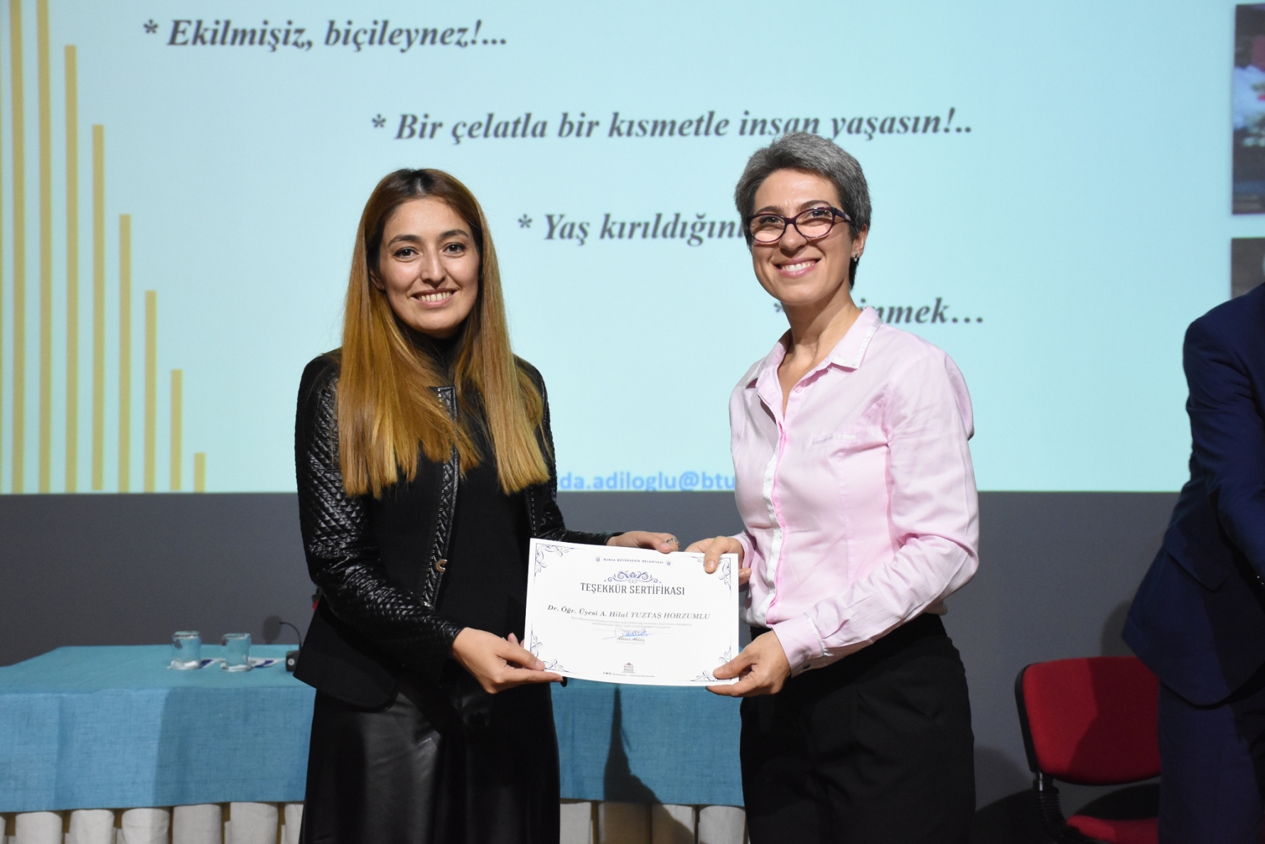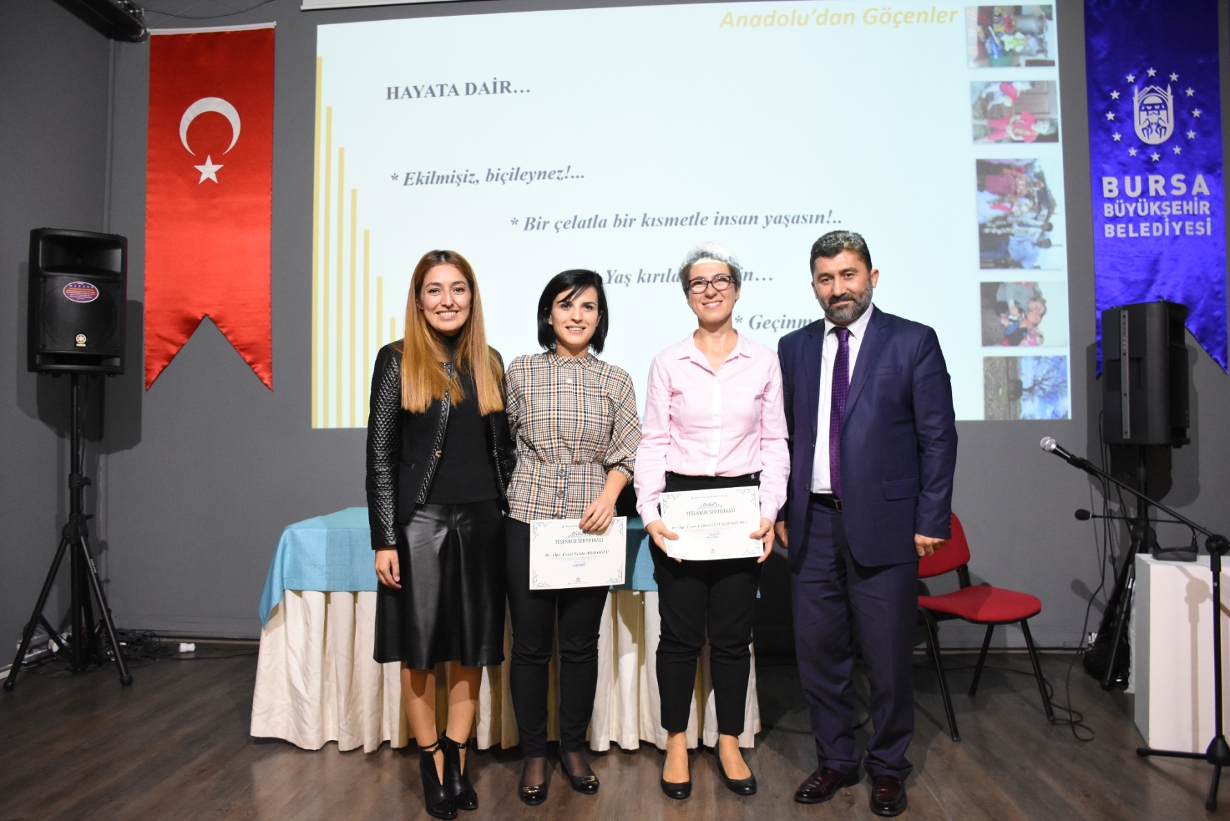 Konferansın ardından Bursa Büyükşehir Belediyesi Başkanvekili Zehra Sönmez ile Bursa Teknik Üniversitesi Rektörü Prof Dr. Arif Karademir, Yörüklere yönelik kapsamlı bir çalışma gerçekleştiren akademisyenlere, birer teşekkür belgesi verdi. Orkestra Şube Müdürlüğü Türk Halk Müziği Sanatçısı Emel Örgün’ün Yörük türkülerinden oluşan mini konseri ile sona eren konferansın finalinde Dr. Selda Adiloğlu ve Dr. A. Hilal Tuztaş Horzumlu’nun alan çalışmalarında objektiflerine yansıyan fotoğraflardan oluşan “Yörükler-Anadolu’da Kalanlar ve Anadolu’dan Göçenler” sergisi izlenime açıldı. Bursa Göç Tarihi Müzesi’ndeki fotoğraf sergisi, 15 Kasım 2018’e kadar görülebilecek.
